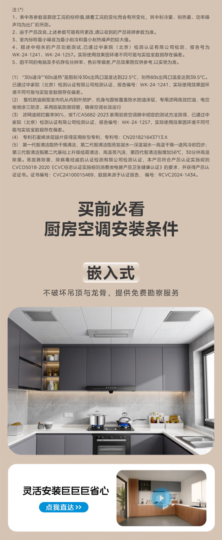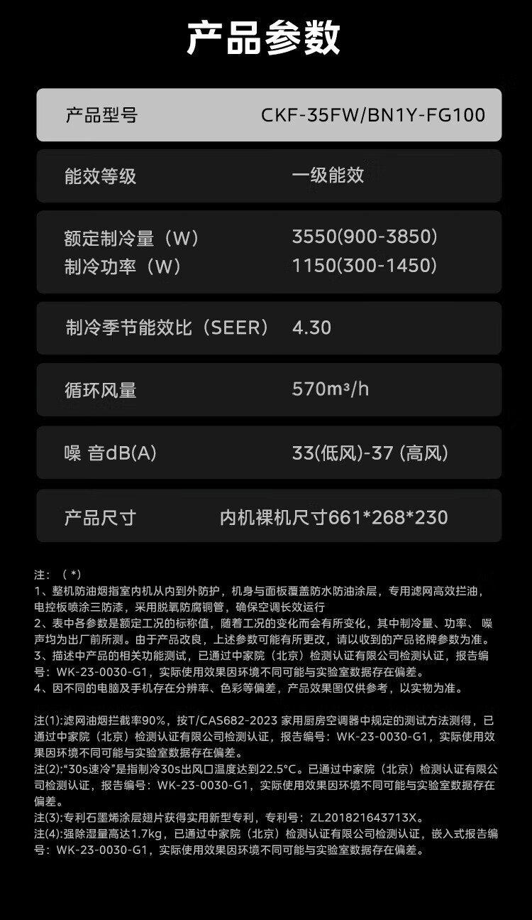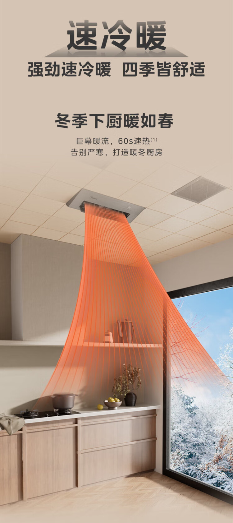 Midea (Midea) Large 1.5 HP Kitchen Air Conditioner Small Cooling Square Embedded Frequency Converter Level One Energy Efficiency Energy Saving Special Kitchen Air Conditioner Household Integrated Ceiling Refrigeration Kitchen Air Conditioner Large 1.5 HP Kitchen Air Conditioner Without External Unit