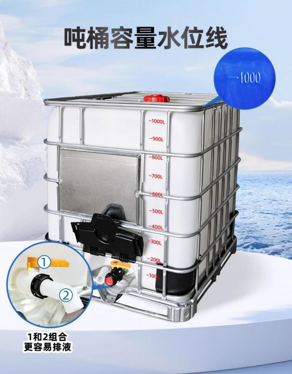 No free shipping, new thickened plastic square barrel, 1000L 1 ton ibc container barrel, 500 liter chemical barrel, 1000L white ton barrel (cleaned)
