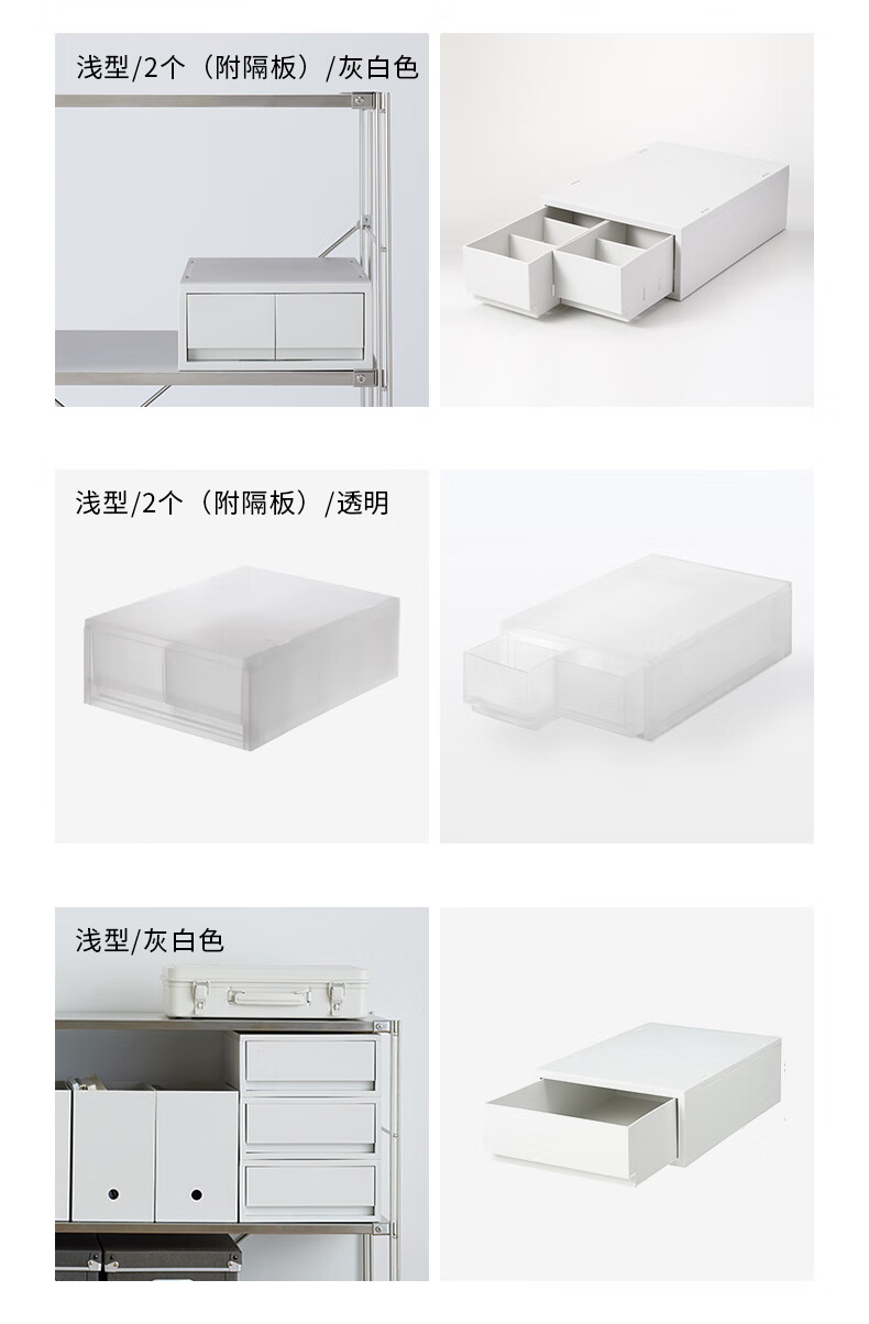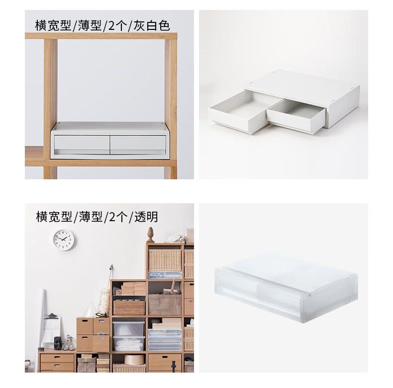 MUJI polypropylene storage box drawer type storage box storage box can be combined wide/thin/off-white 3S 37*26*9cm