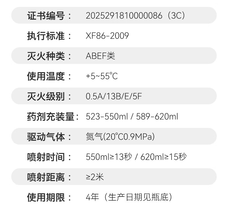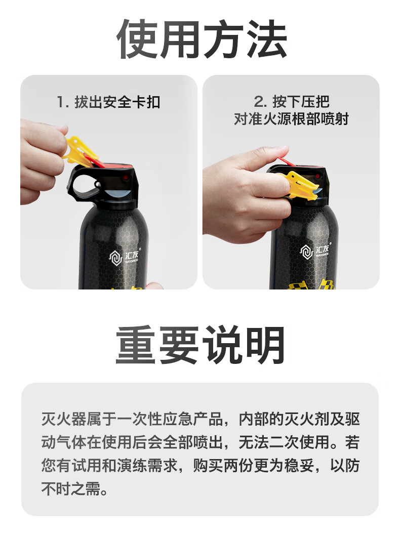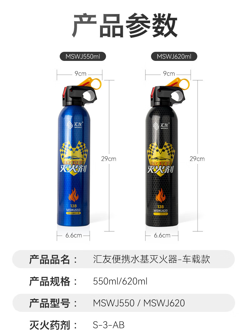 Huiyou water-based fire extinguisher car-mounted foam aluminum valve fire equipment 3c certification 550ml water-based high-efficiency anti-reignition vehicle-mounted