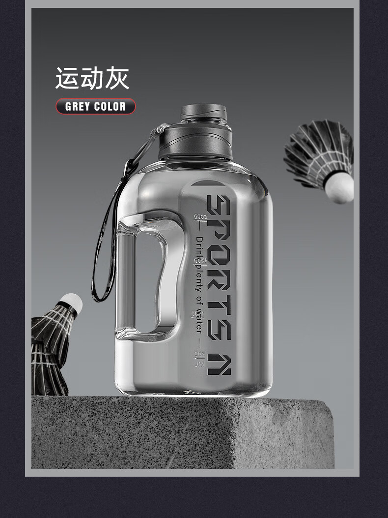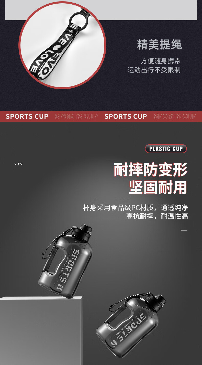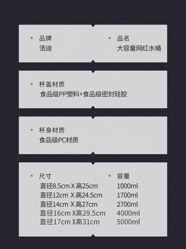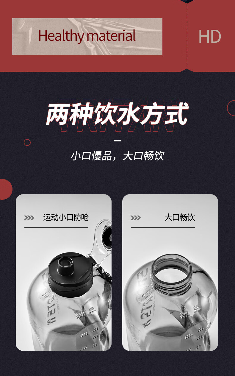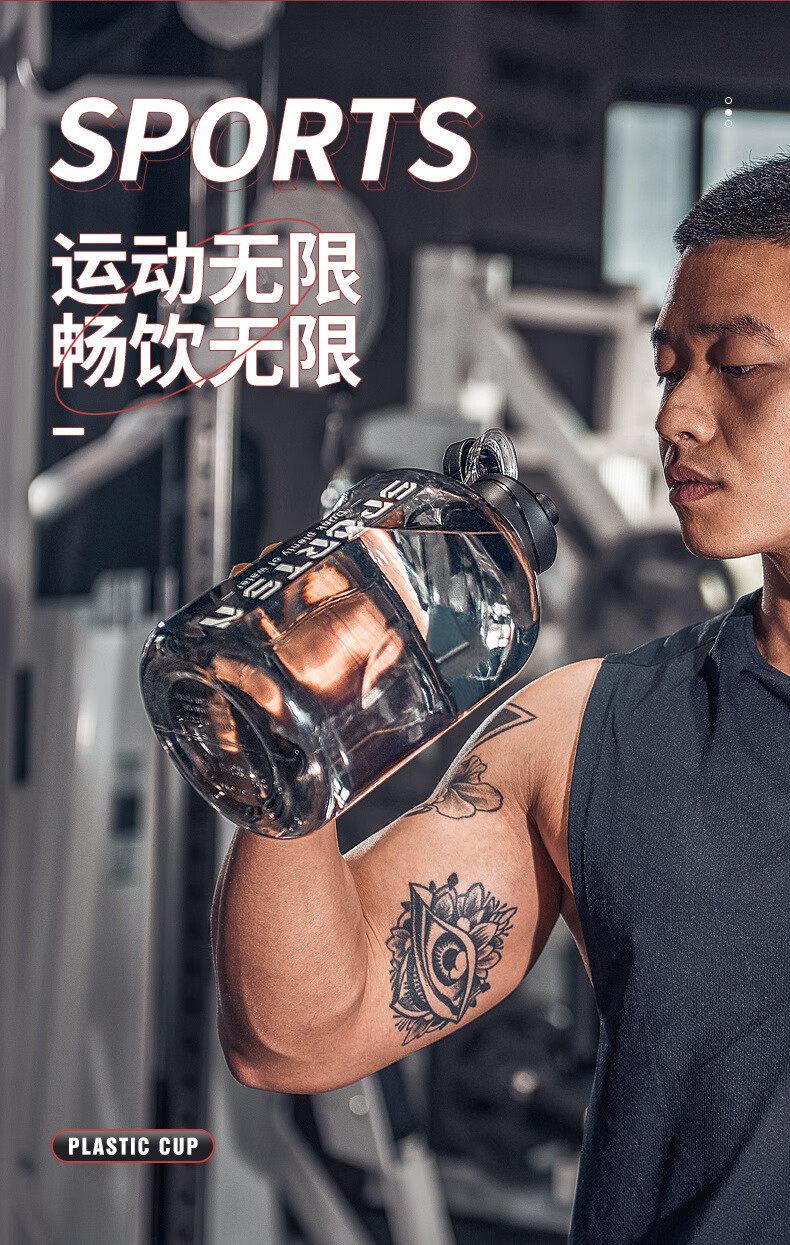 Heenoor 5 liter water cup super large capacity boys' ton bucket ton extra large kettle construction site sports daily bucket plastic upgrade anti-scald black - material - 5000ml - free suction