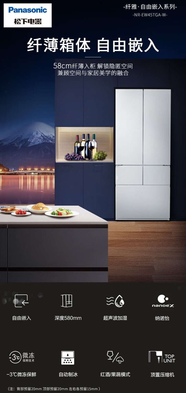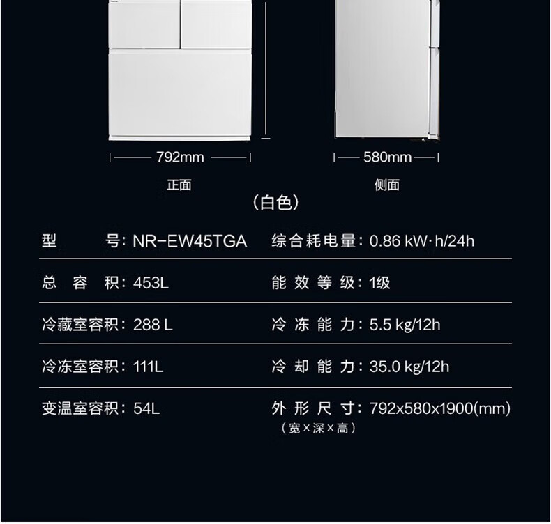 Panasonic Refrigerator 453L 58CM Depth Slim Embedded Inverter Air-cooled Multi-Door Refrigerator Automatic Ice Making Level 1