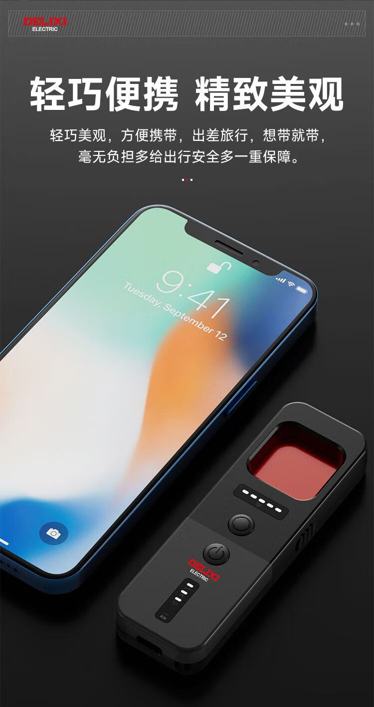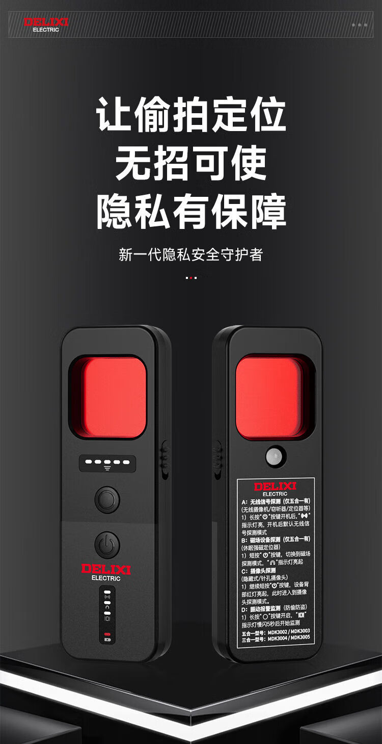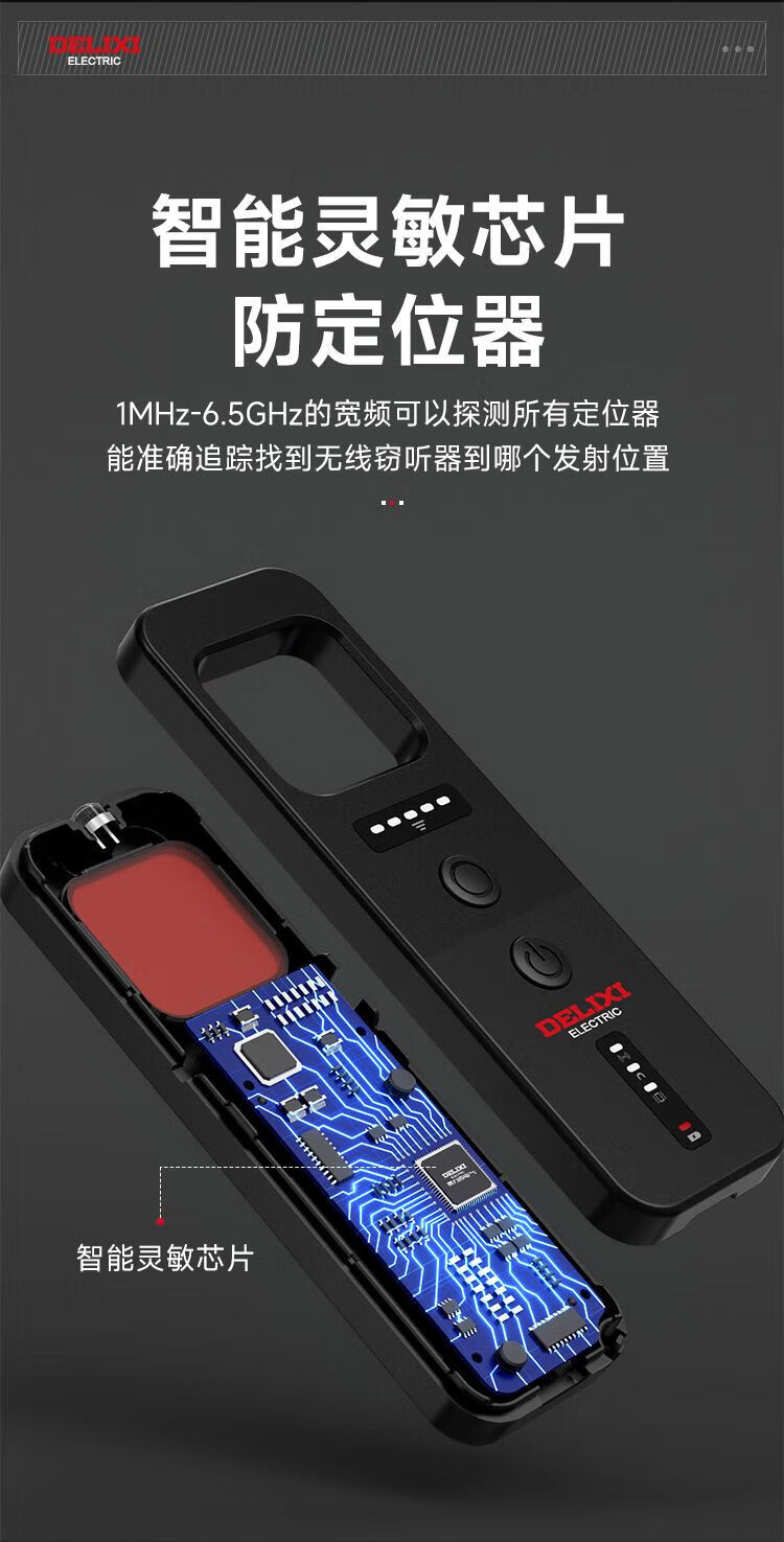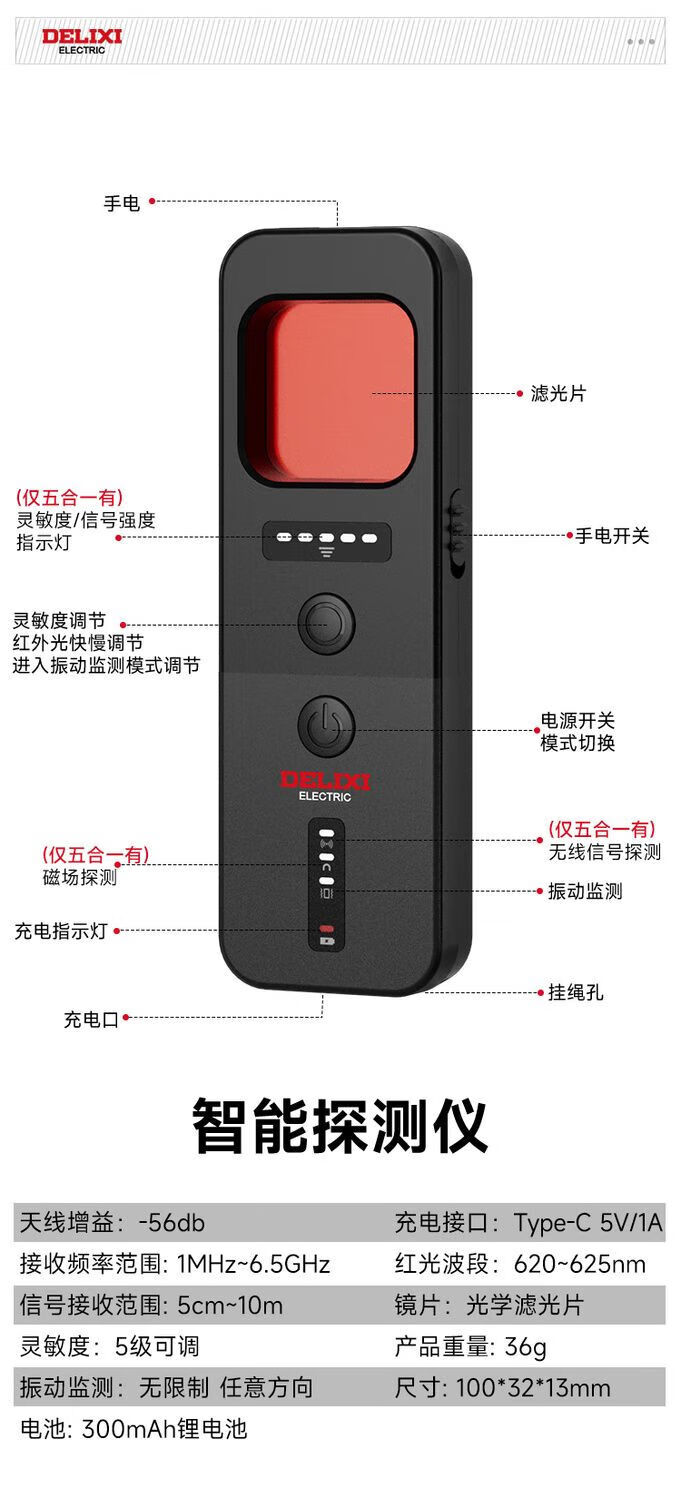 DELIXI Wireless Signal Detector Anti-Peeping Camera Detector Intelligent Infrared GPS Signal Anti-Eavesdropping Five-in-One Extreme Night Black Anti-Peeping, Anti-Eavesdropping, Anti-Positioning