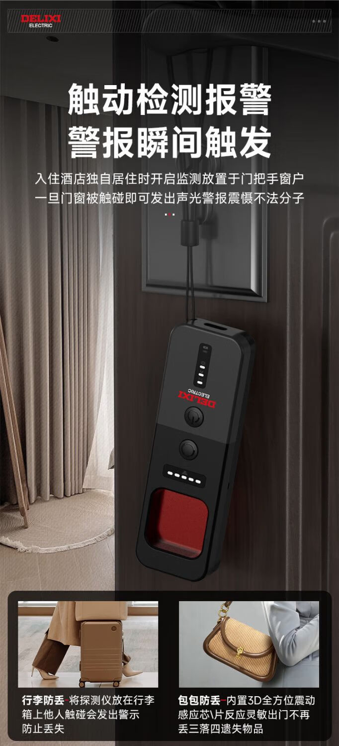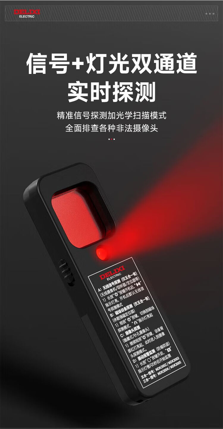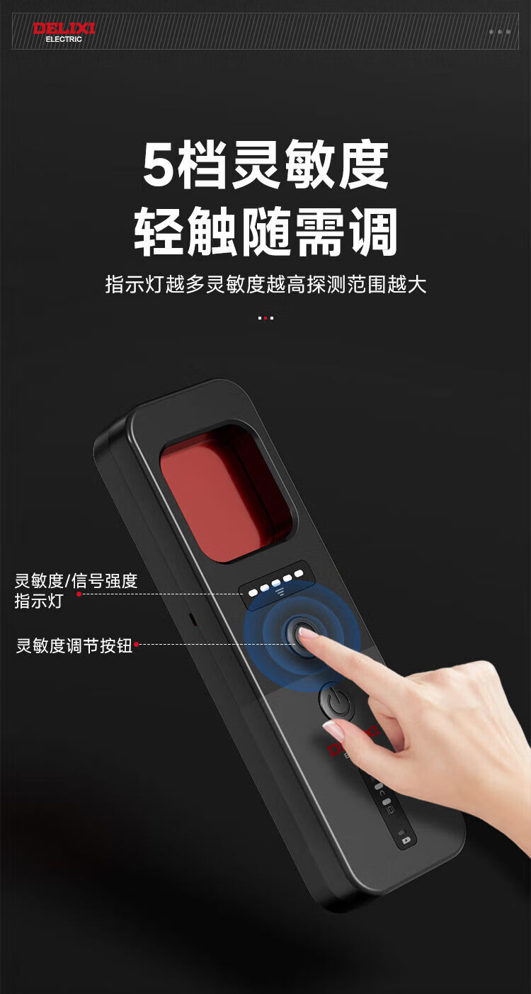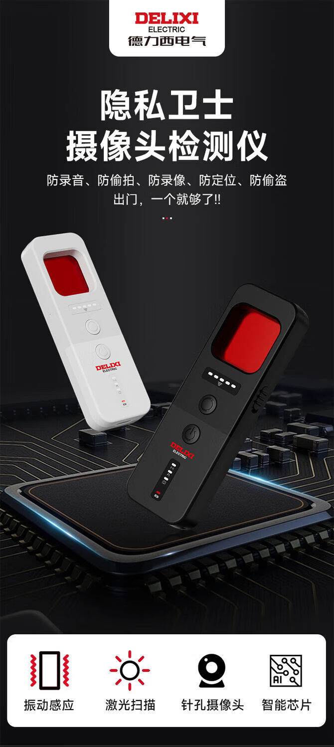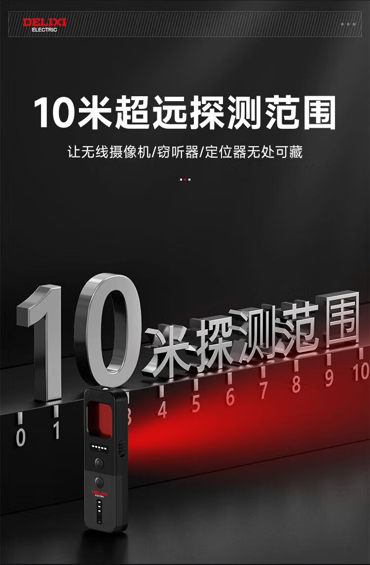 DELIXI Wireless Signal Detector Anti-Peeping Camera Detector Intelligent Infrared GPS Signal Anti-Eavesdropping Five-in-One Extreme Night Black Anti-Peeping, Anti-Eavesdropping, Anti-Positioning
