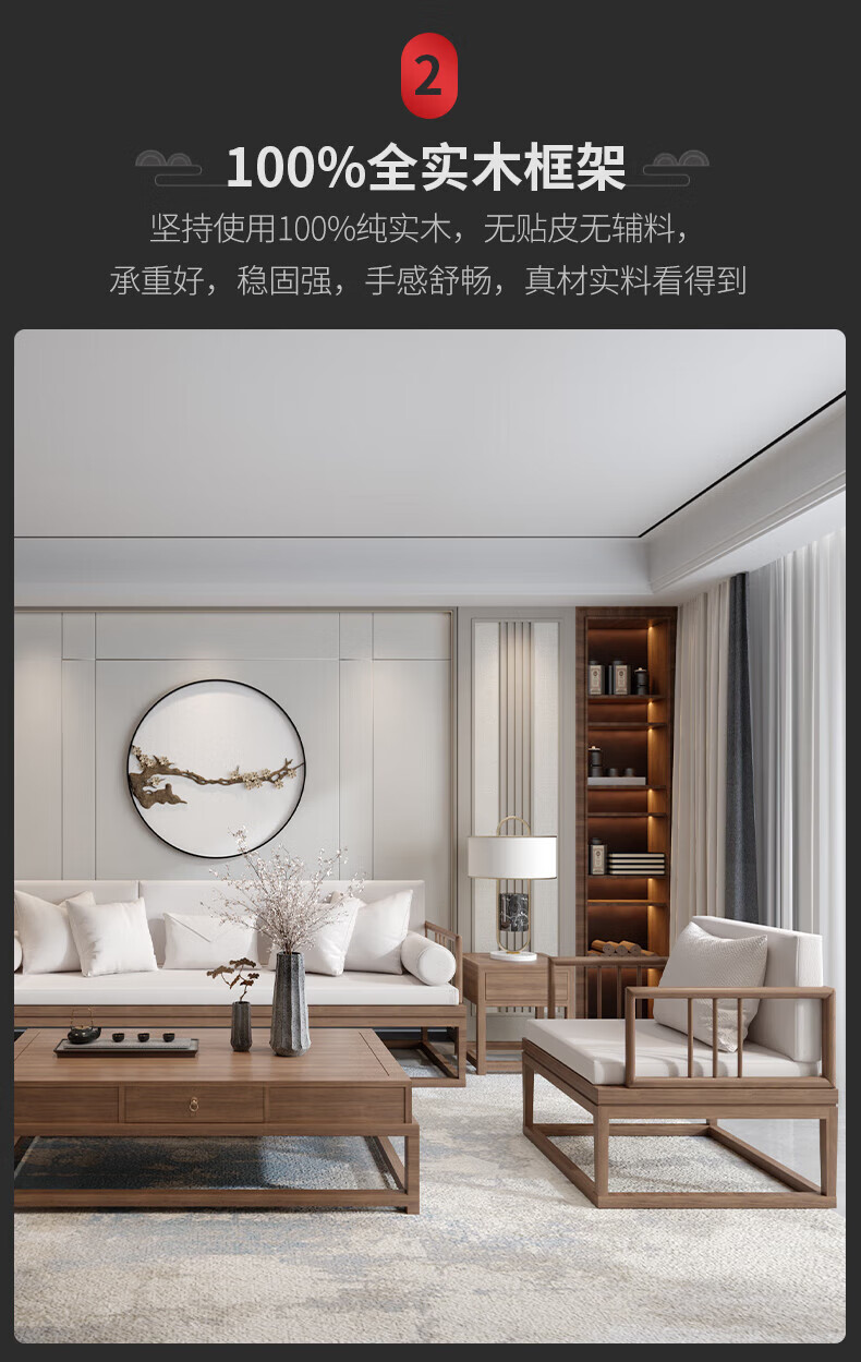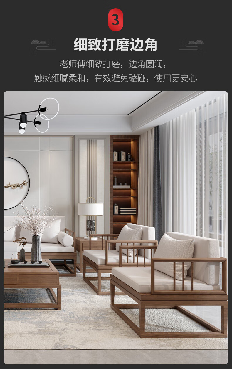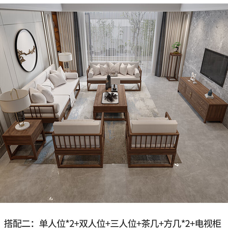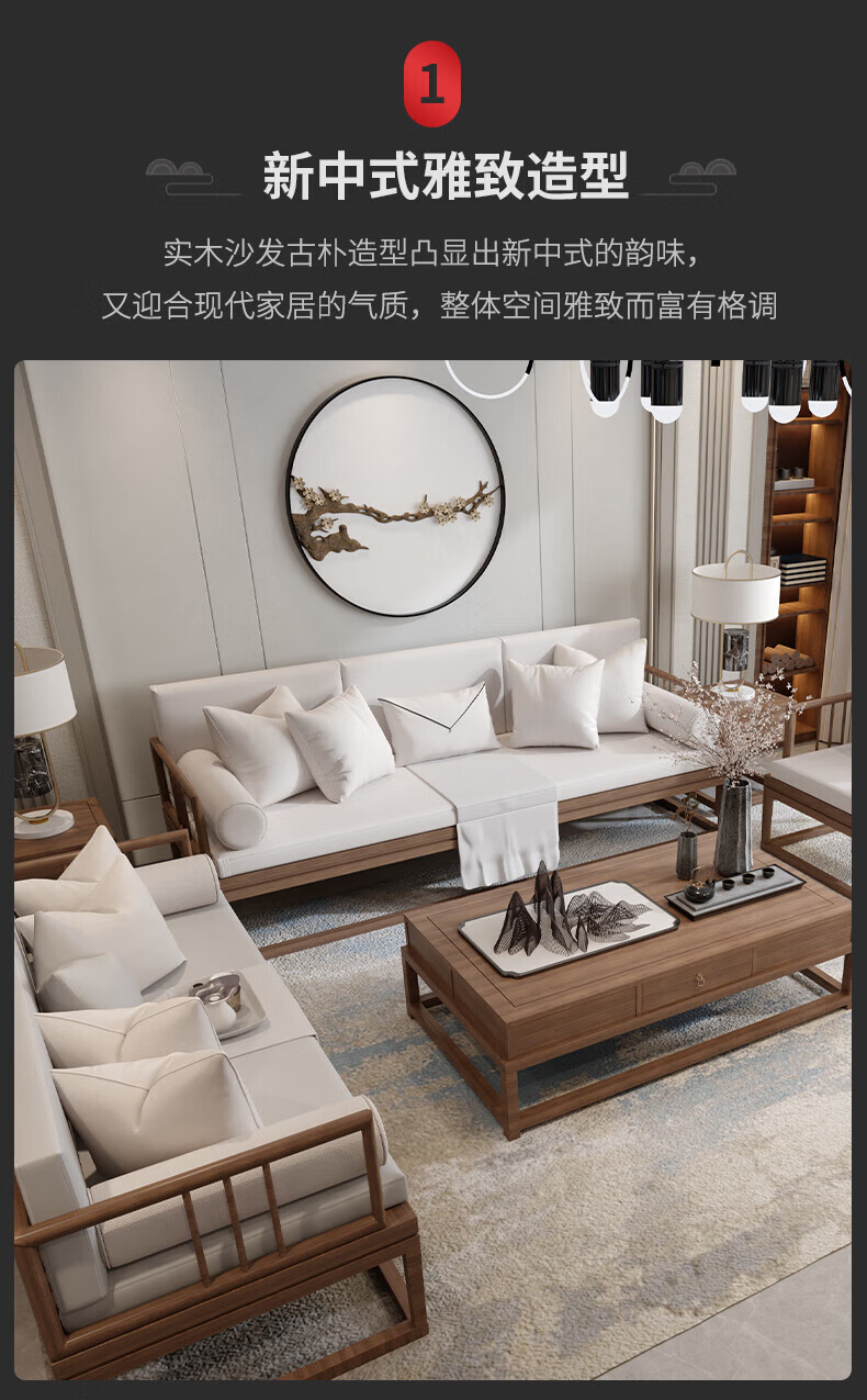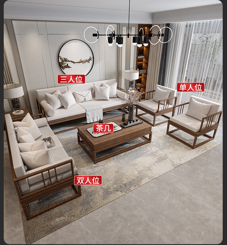 Jigi Song Dynasty aesthetic all solid wood sofa living room lobby villa Zen light luxury new Chinese style modular furniture whole house set single seat*2+double seat+three person seat+coffee table