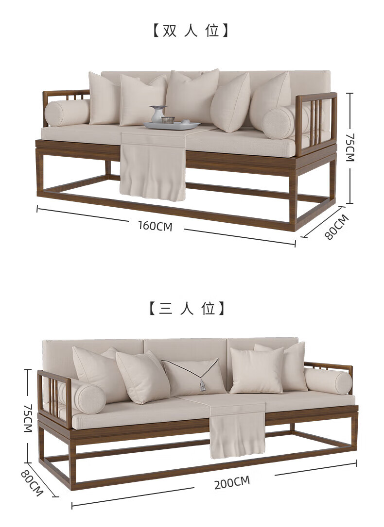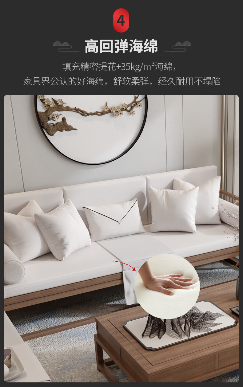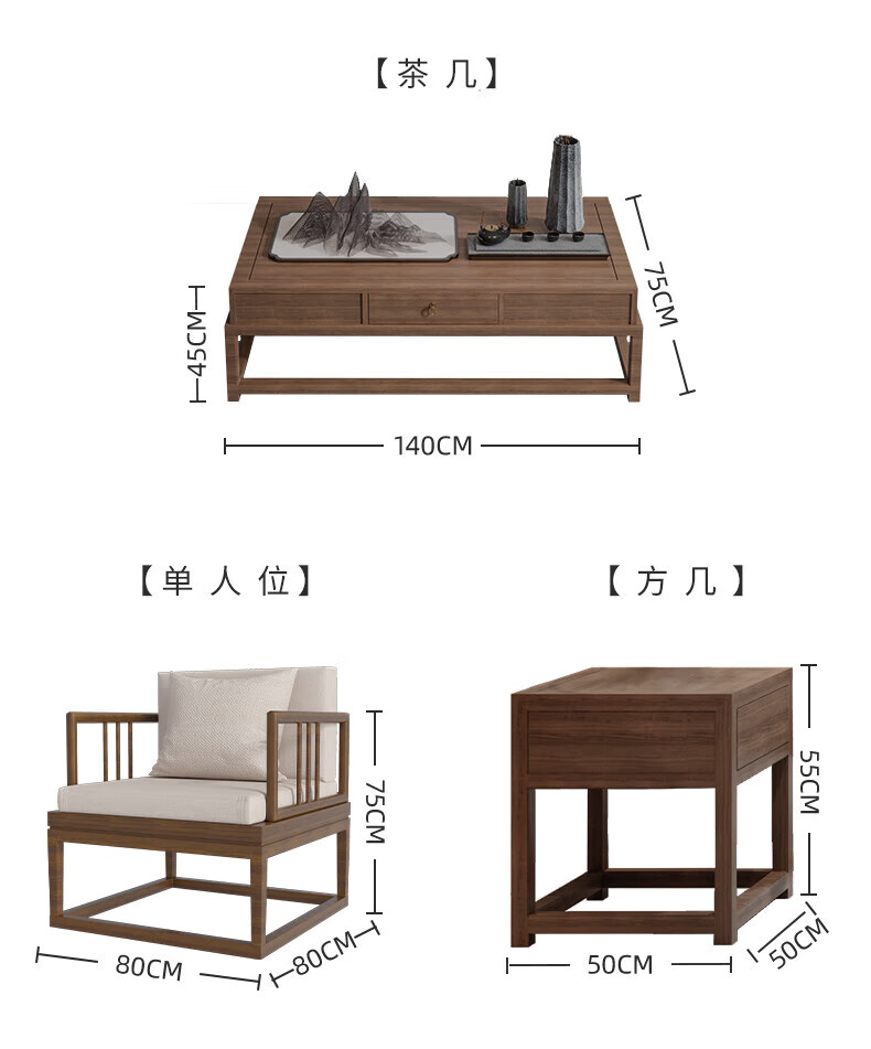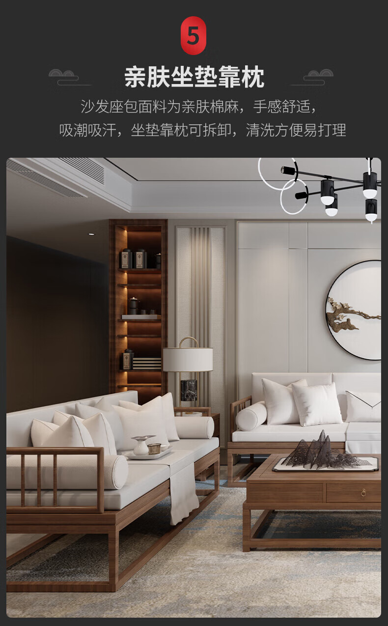 Jigi Song Dynasty aesthetic all solid wood sofa living room lobby villa Zen light luxury new Chinese style modular furniture whole house set single seat*2+double seat+three person seat+coffee table