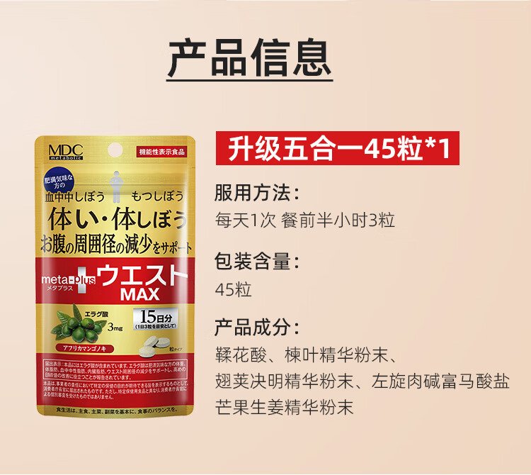 MDC upgraded version of Small Waist Essence MAX 5-in-1 Black Ginger Essence L-Carnitine Malt Extract Enzyme Abdominal Burning 5-in-1 45 capsules*1 bag (15 days)