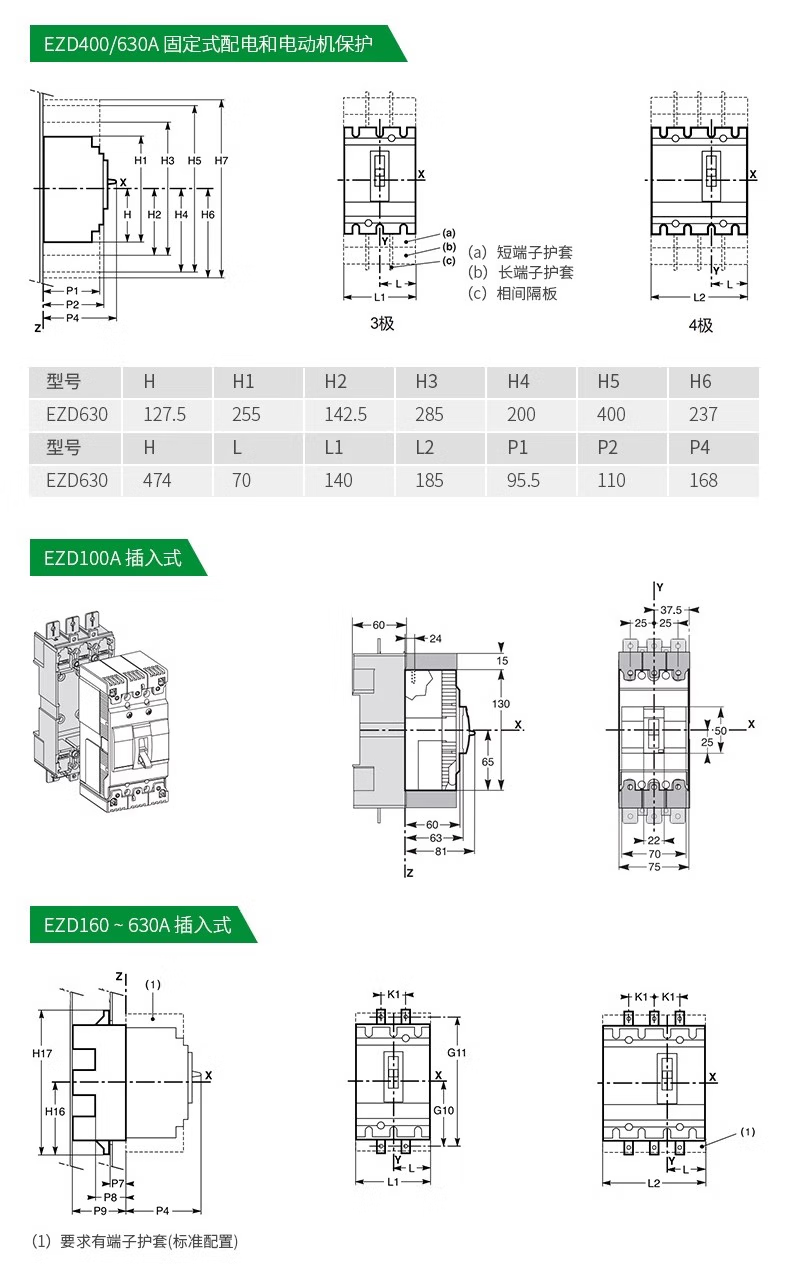 Schneider EZD molded case circuit breaker E/M/S100A160A200A400A500A630A air switch 3P EZD630E/3P 500A