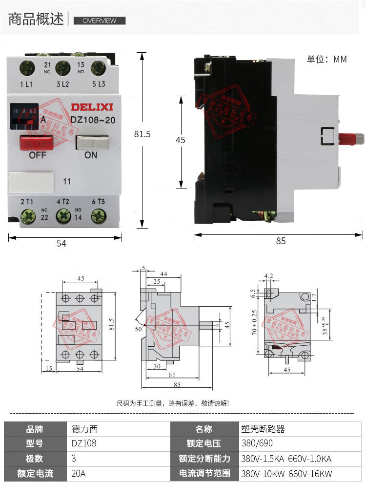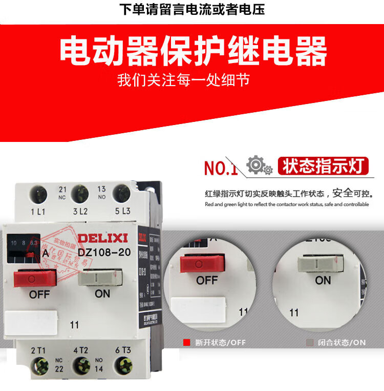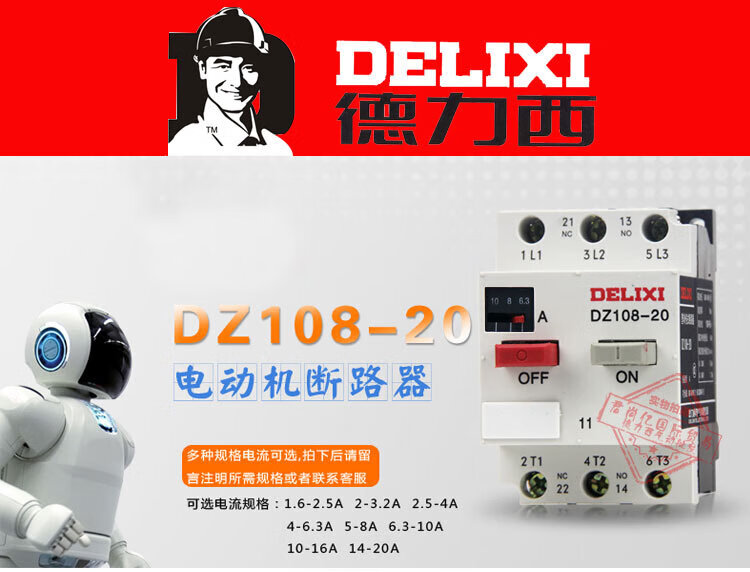 Delixi-20/11 1 2.5 4 6.3 8 10 12.5A Motor protector circuit breaker CDP6-32 1-1.6A