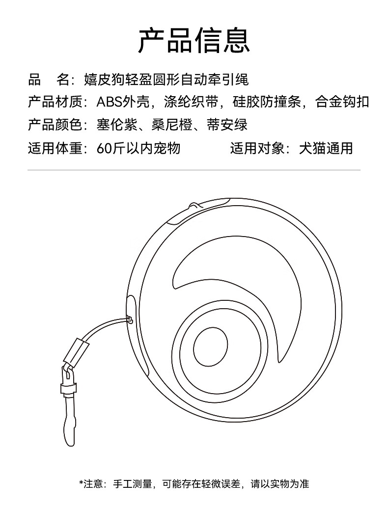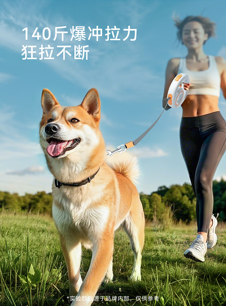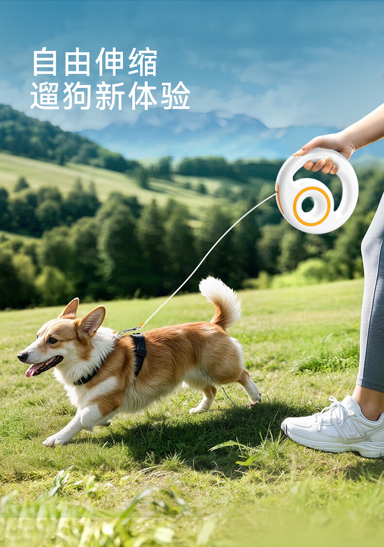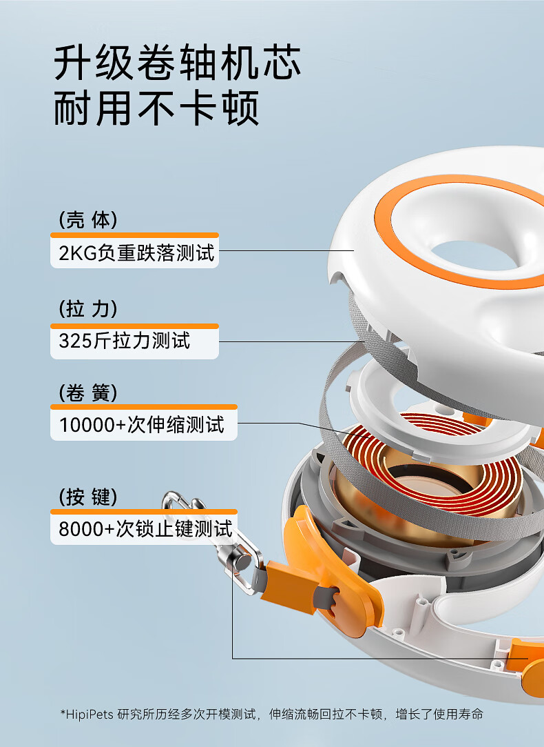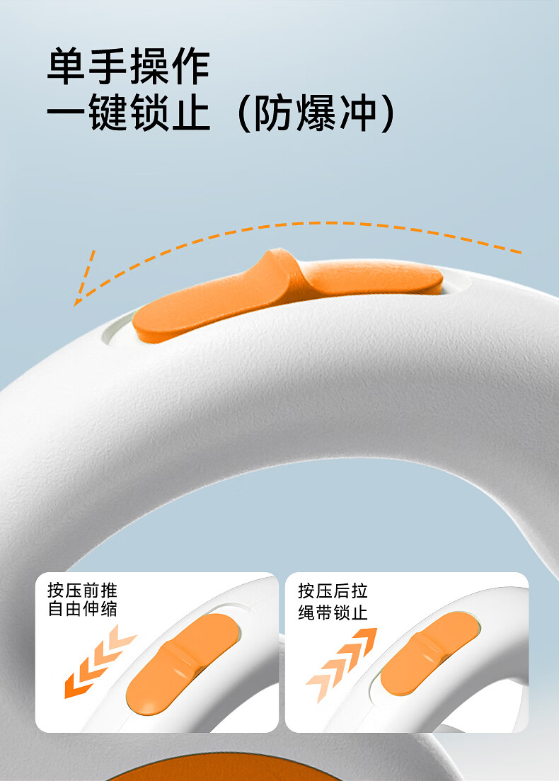 Hippie dog (hipidog) dog leash, light, round, automatic pet leash, explosion-proof, one-button braking, retractable dog leash when going out, Sonny Orange, 2.5 meters telescopic and controllable