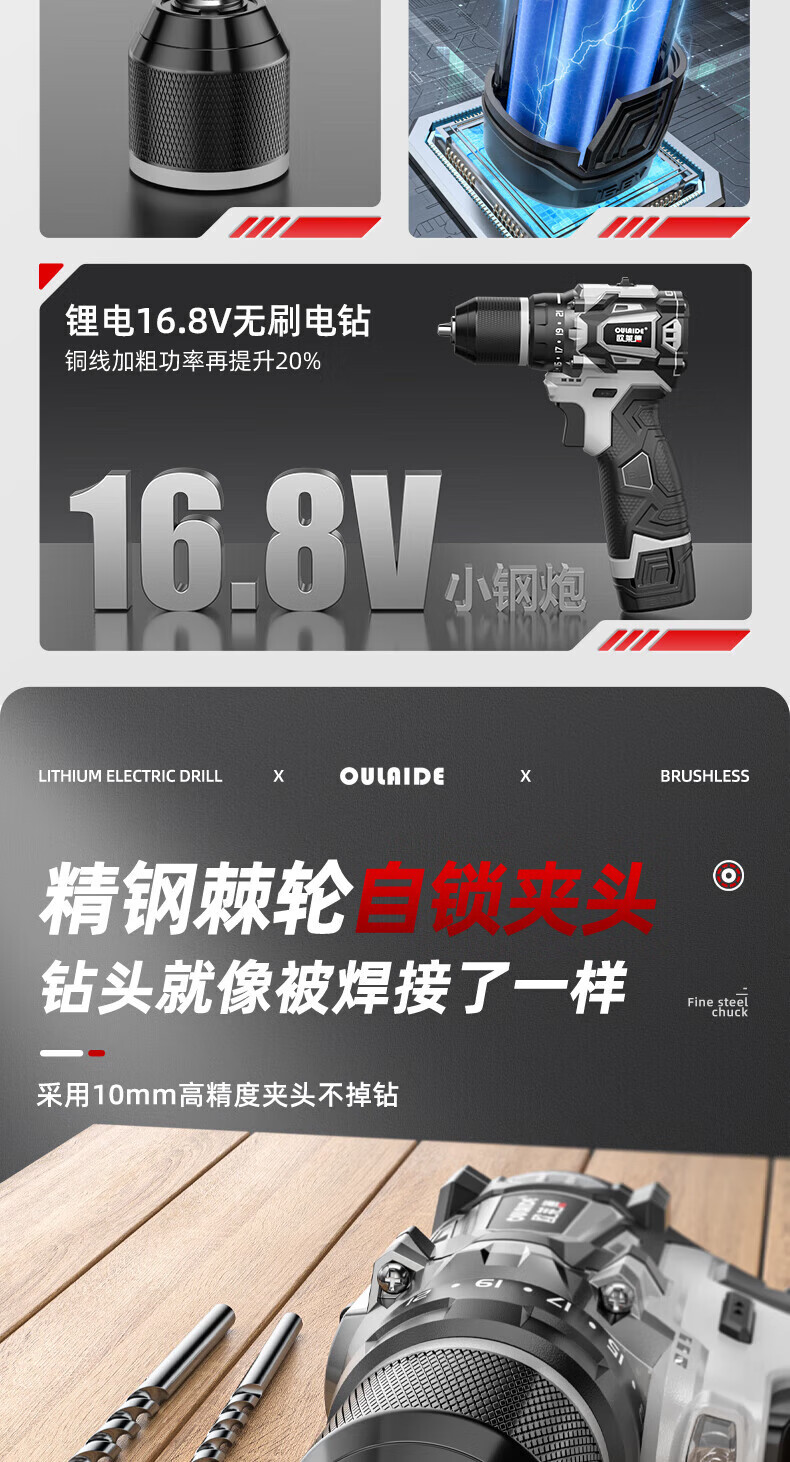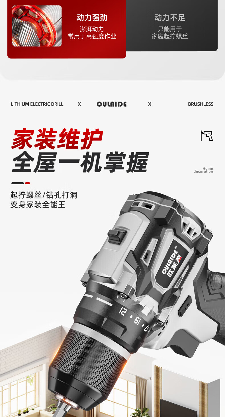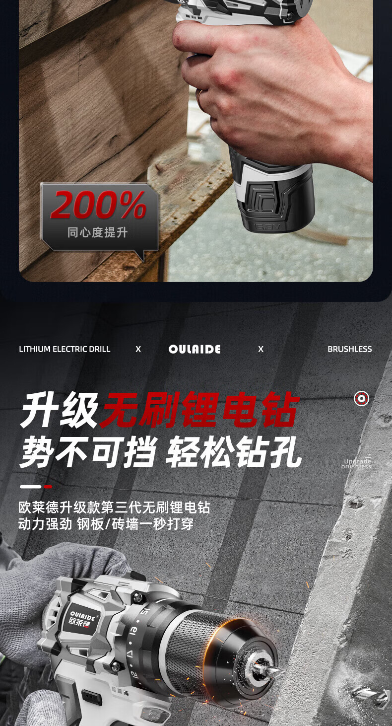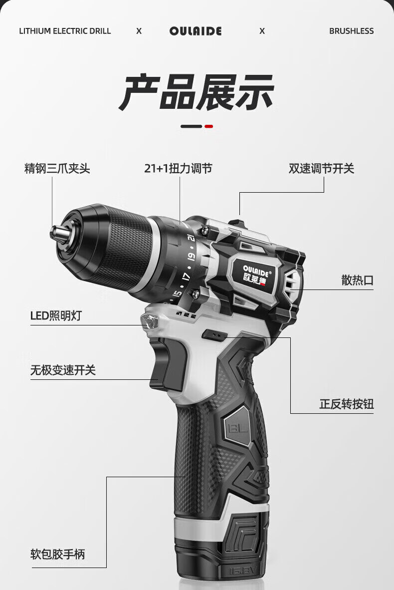 OLED brushless electric drill hand drill small steel cannon high-power rechargeable lithium electric drill electric screwdriver machine can knock the ceiling brushless steel cannon second wear version