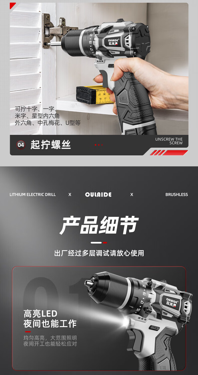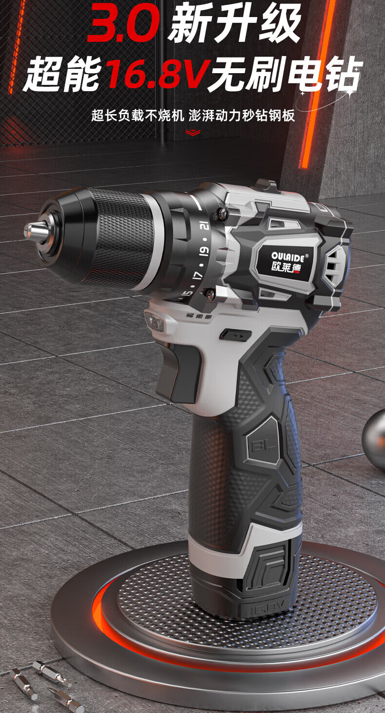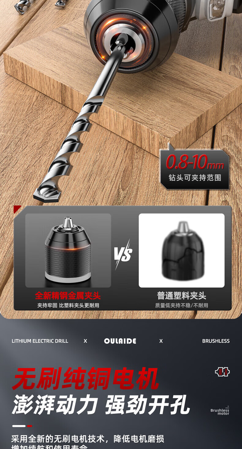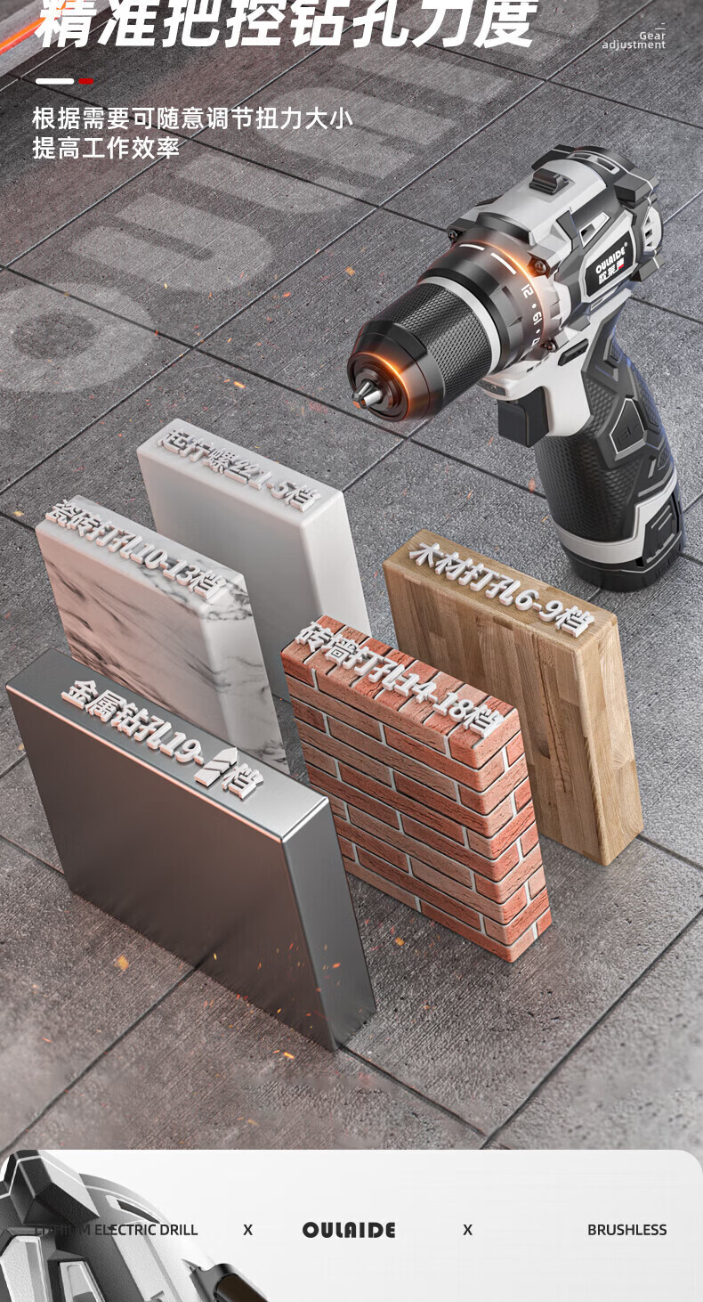 OLED brushless electric drill hand drill small steel cannon high-power rechargeable lithium electric drill electric screwdriver machine can knock the ceiling brushless steel cannon second wear version