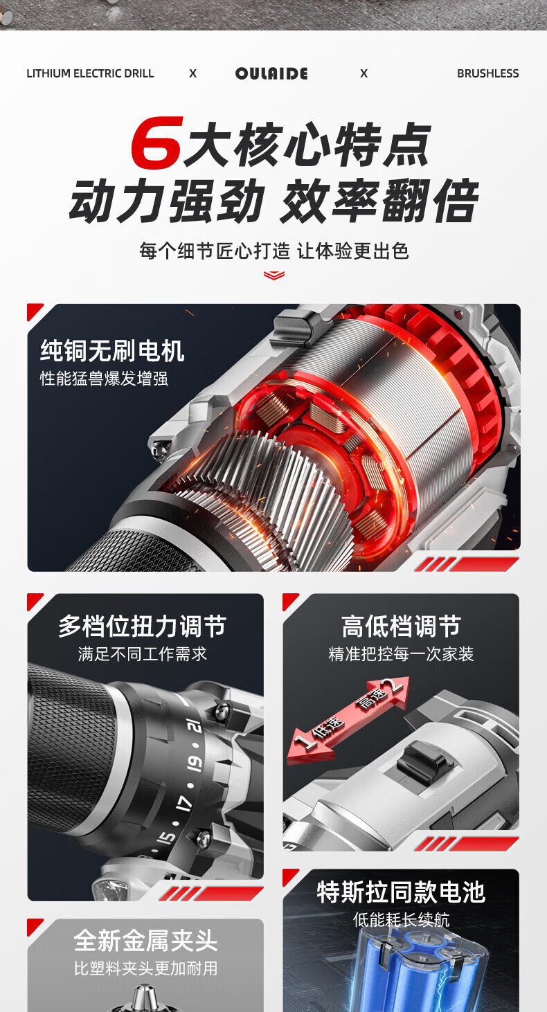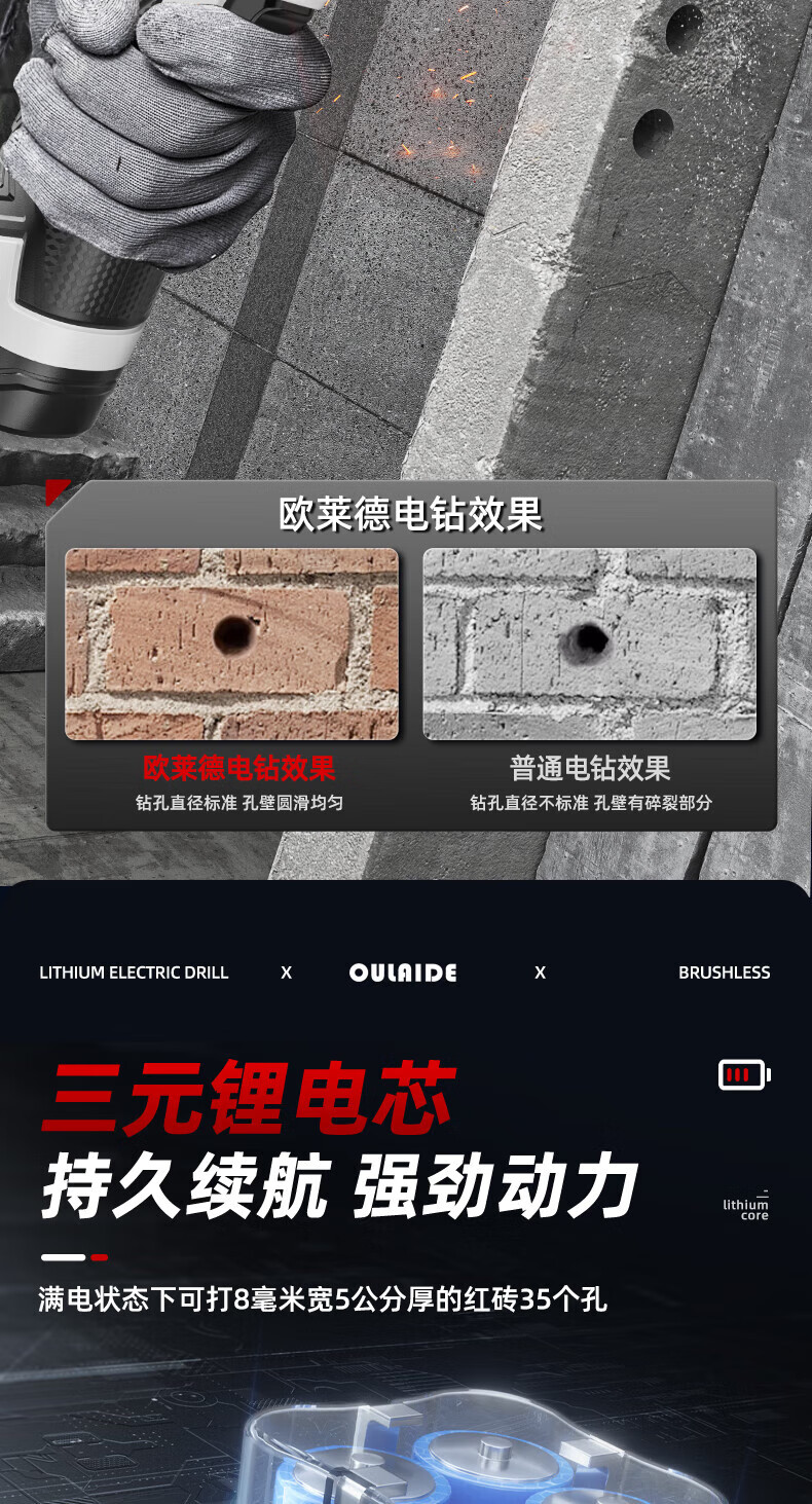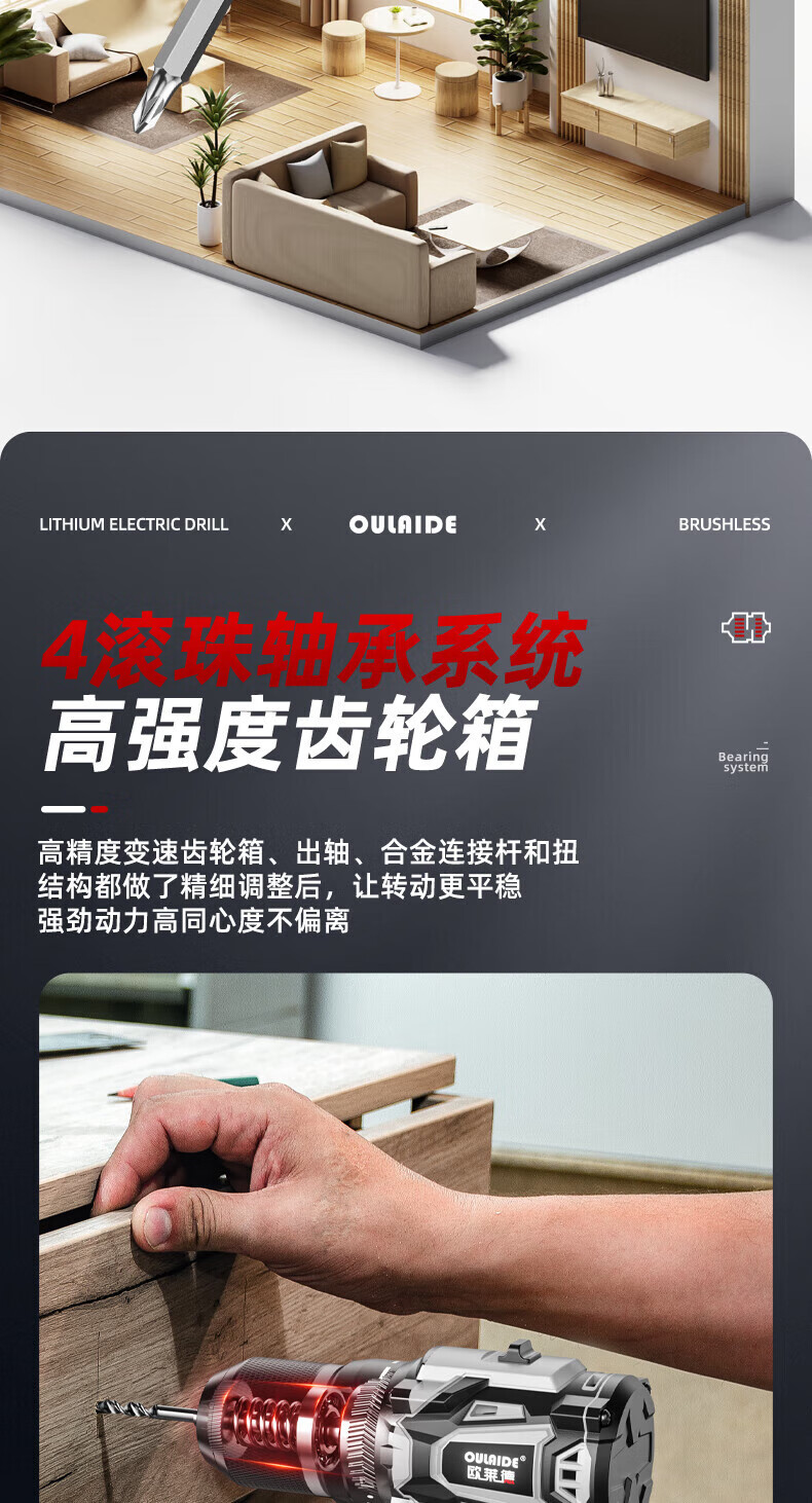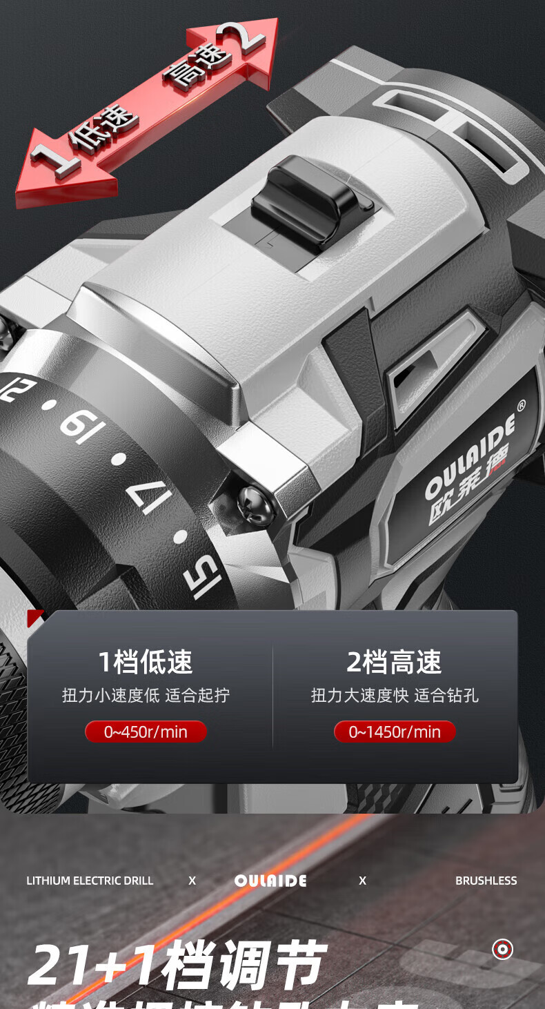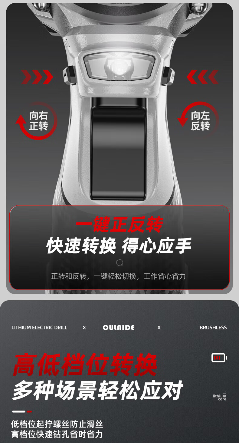 OLED brushless electric drill hand drill small steel cannon high-power rechargeable lithium electric drill electric screwdriver machine can knock the ceiling brushless steel cannon second wear version