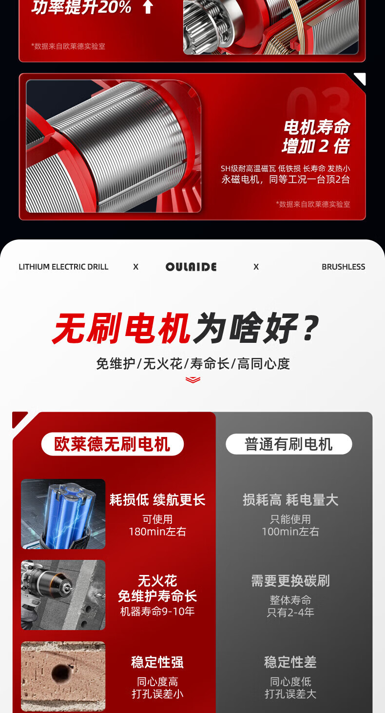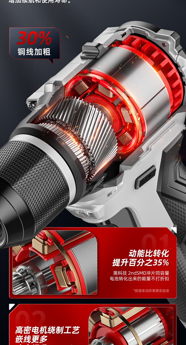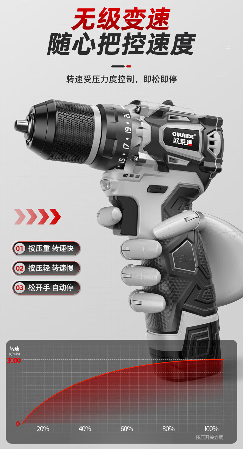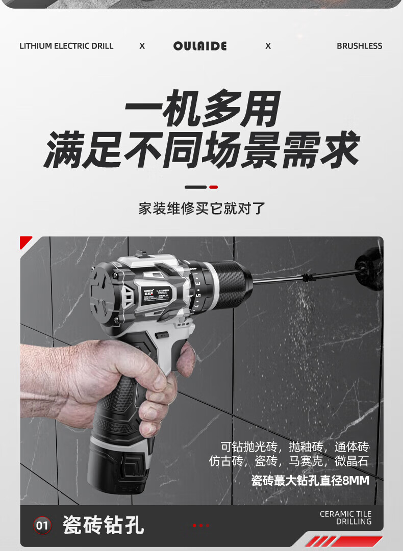 OLED brushless electric drill hand drill small steel cannon high-power rechargeable lithium electric drill electric screwdriver machine can knock the ceiling brushless steel cannon second wear version
