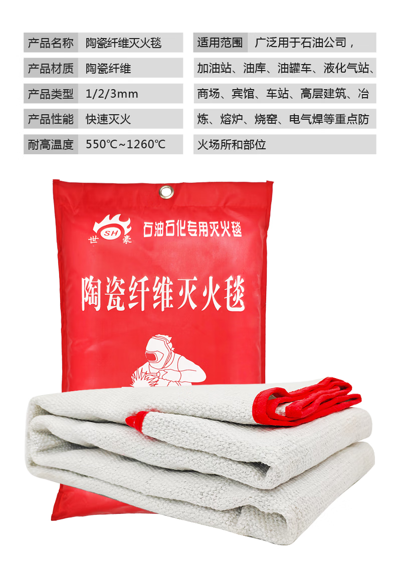 Fire extinguishing blanket ceramic fiber asbestos quilt silicone fire blanket petroleum and petrochemical factory gas station welding fire certification ceramic kitchen/gas station/factory 1 meter * 1 meter