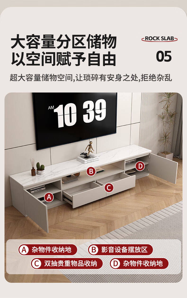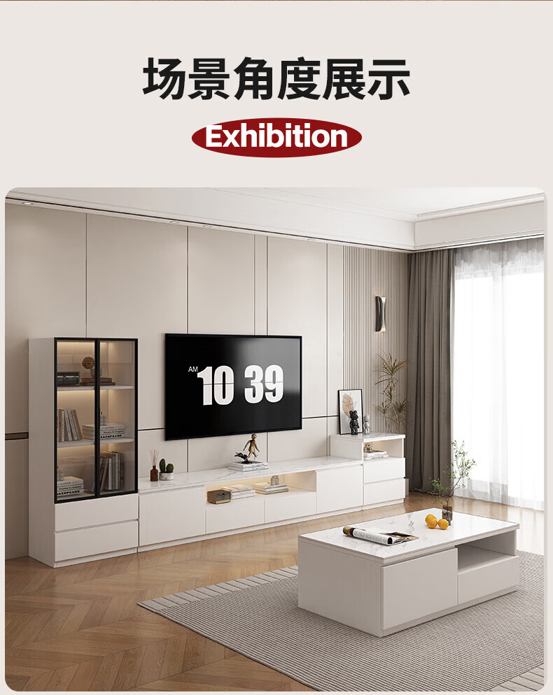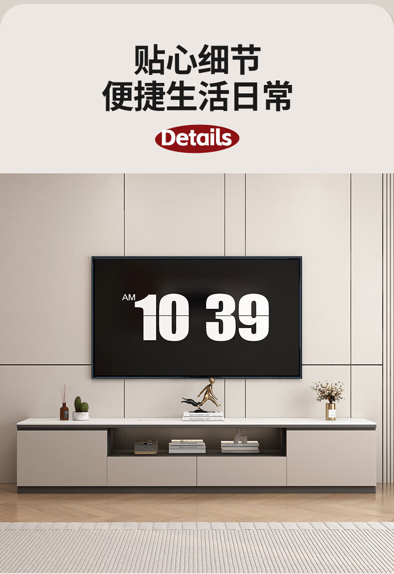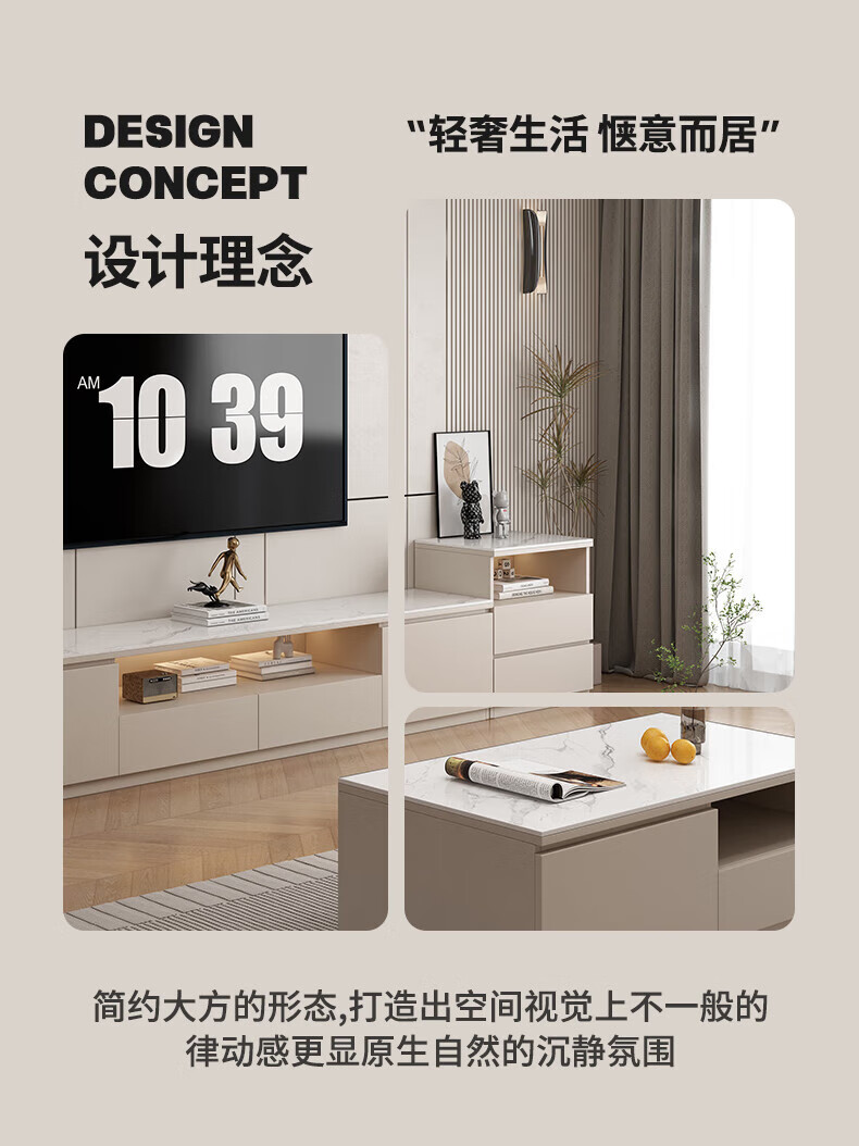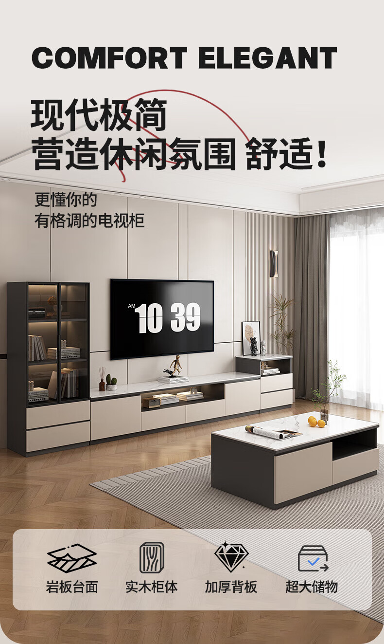 Flower porridge includes installation solid wood TV cabinet floor-standing living room home storage integrated coffee table combination TV cabinet 1.8m double door double drawer TV cabinet (Coffee Gray)