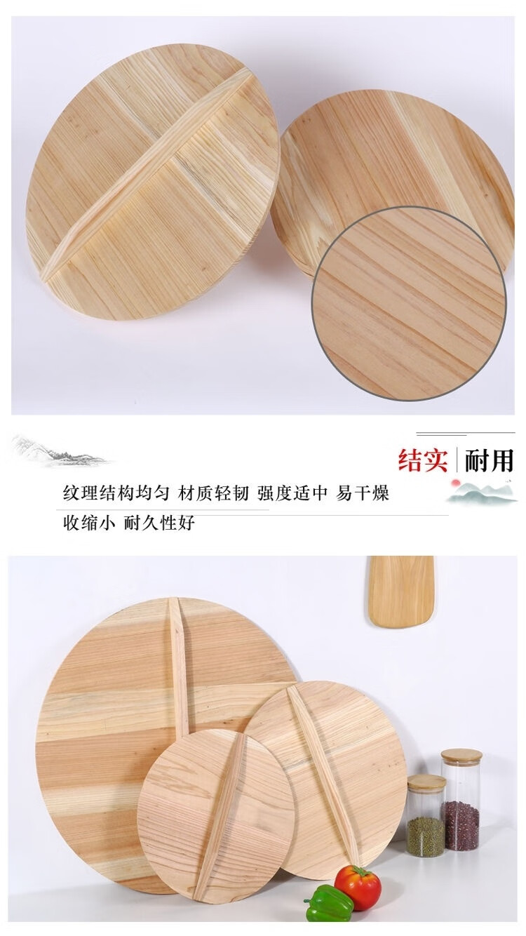 Zisha. Household old-fashioned fir pot lid, wok lid, wooden large pot lid, solid wood pot lid, water tank lid, universal lid, resistant fir log diameter color 31 cm