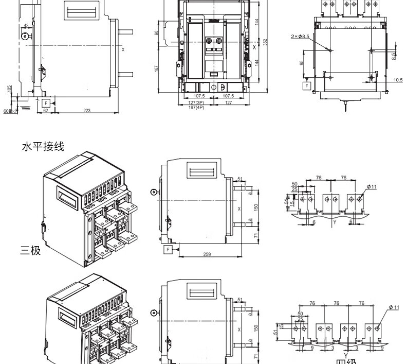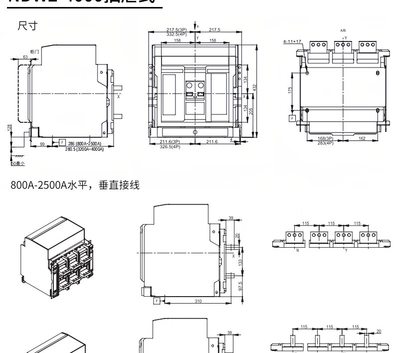 Liangxin Shanghai style frame circuit breaker-3200-2000A1600A1250A1000A 400A fixed horizontal x 3P+N x NDW2-1600