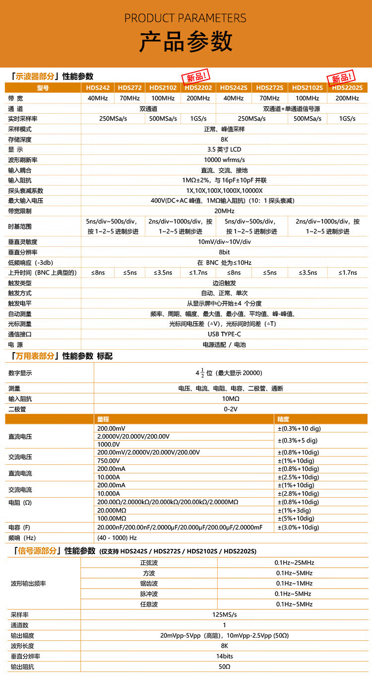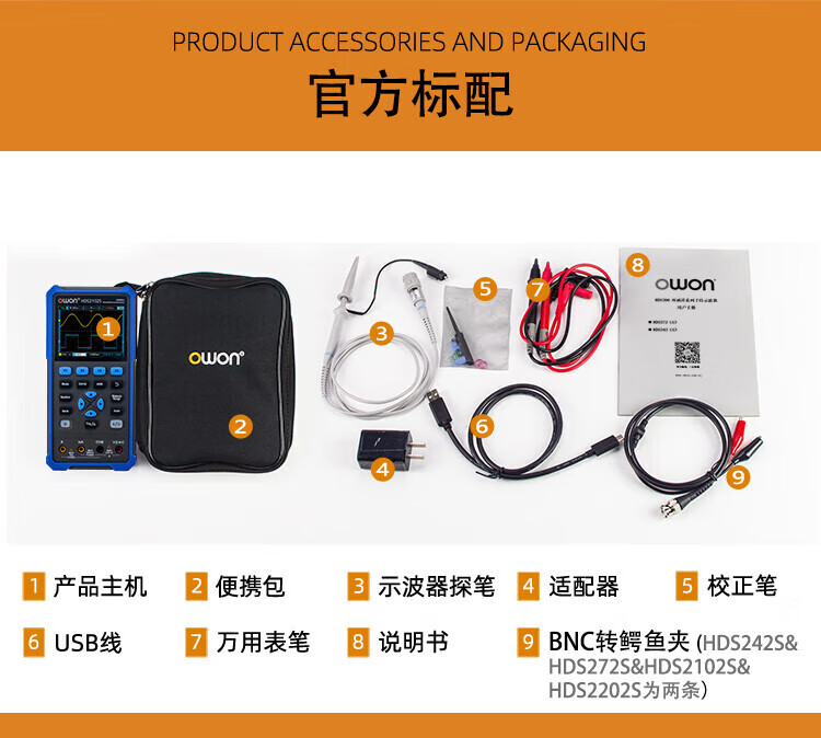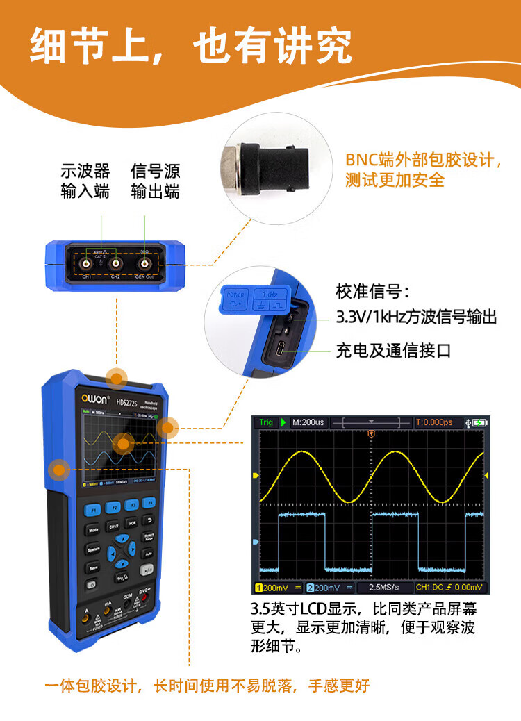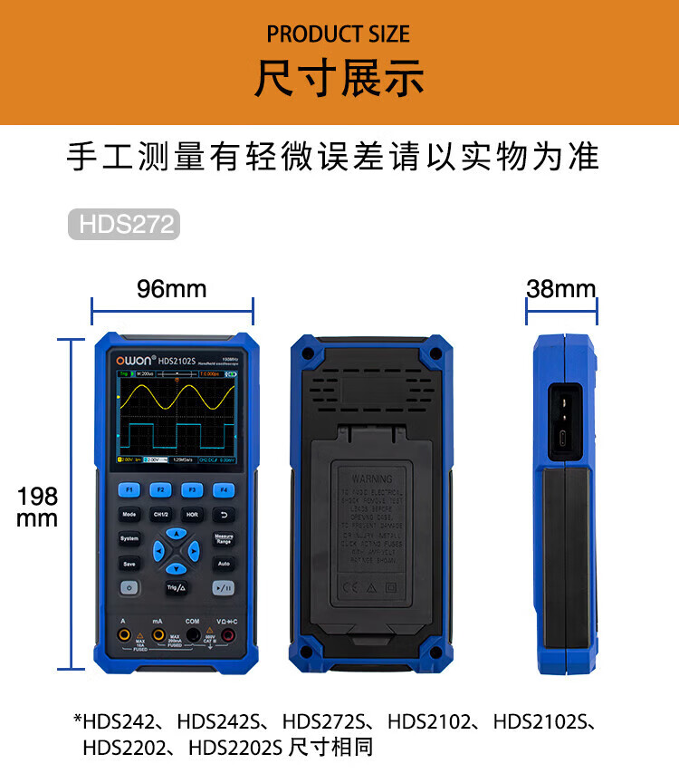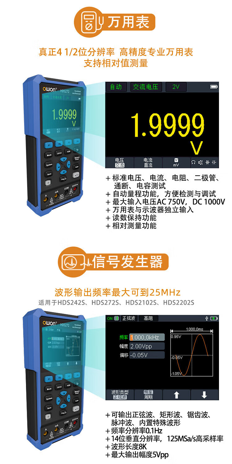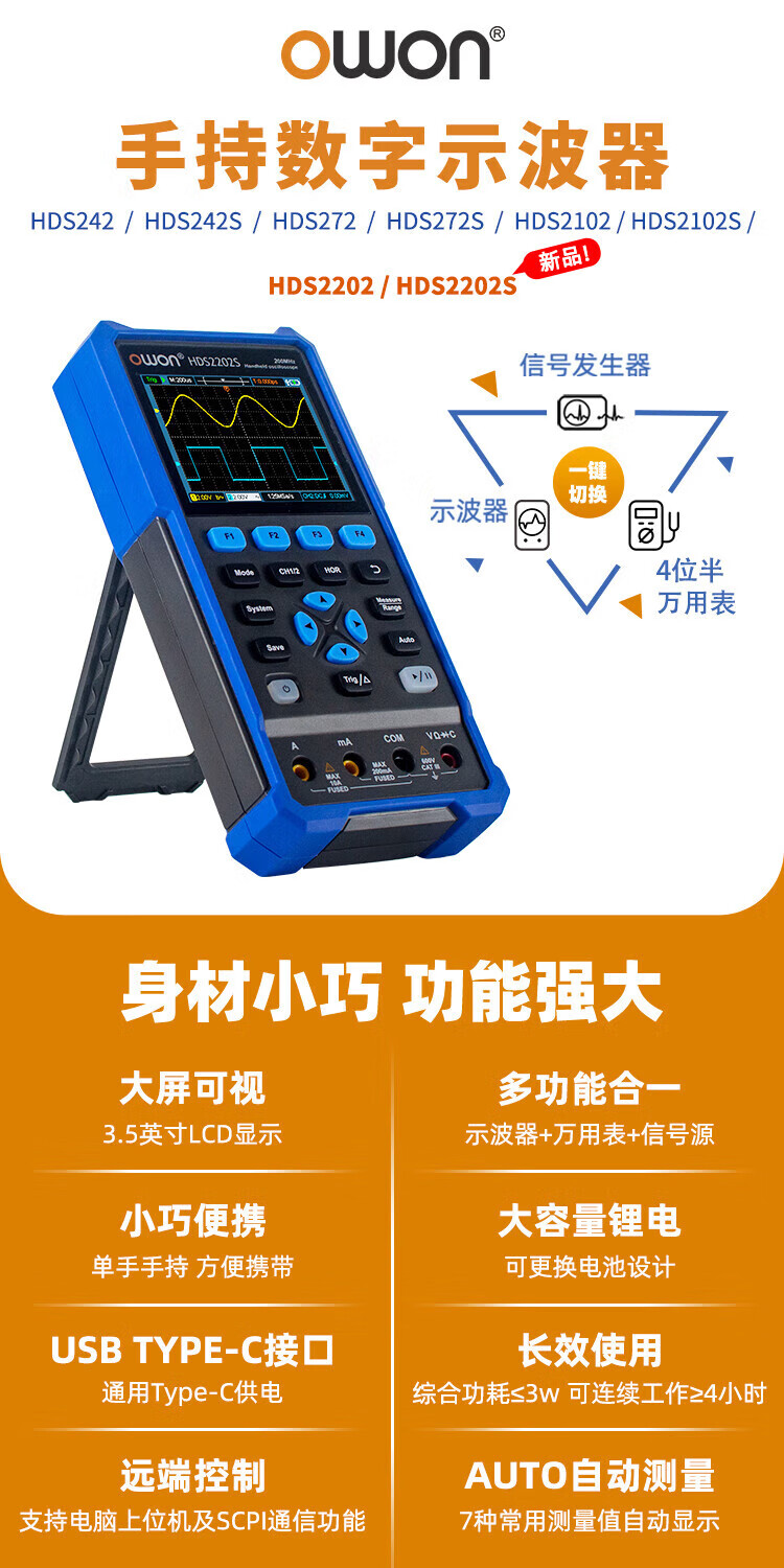 Owon Lilliput handheld digital oscilloscope single/dual channel 40~200MHz bandwidth with multimeter signal source function HDS272 (dual channel 70M)