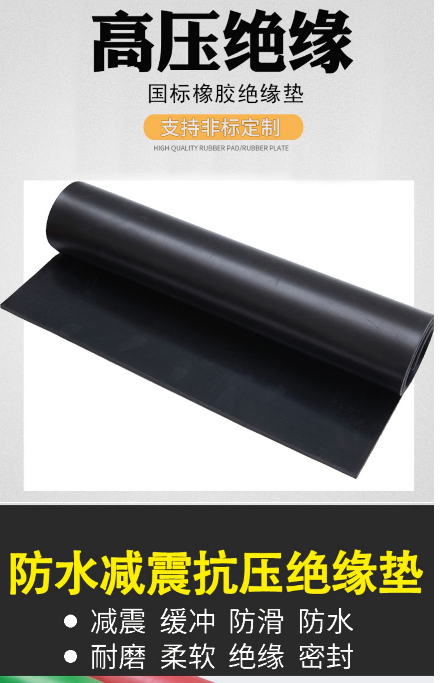 Insulating rubber mat, rubber mat, rubber board floor mat, power distribution room, non-slip, shock-absorbing rubber mat, 1m*1m*8mm black