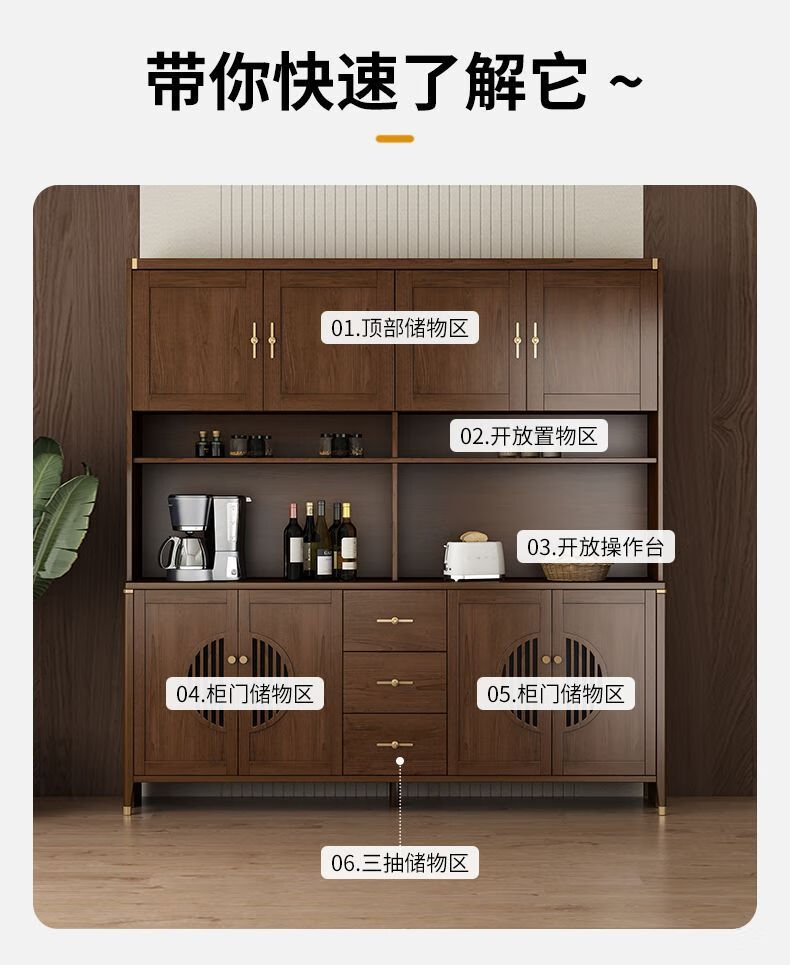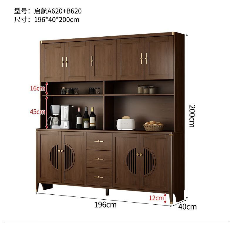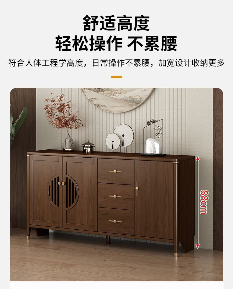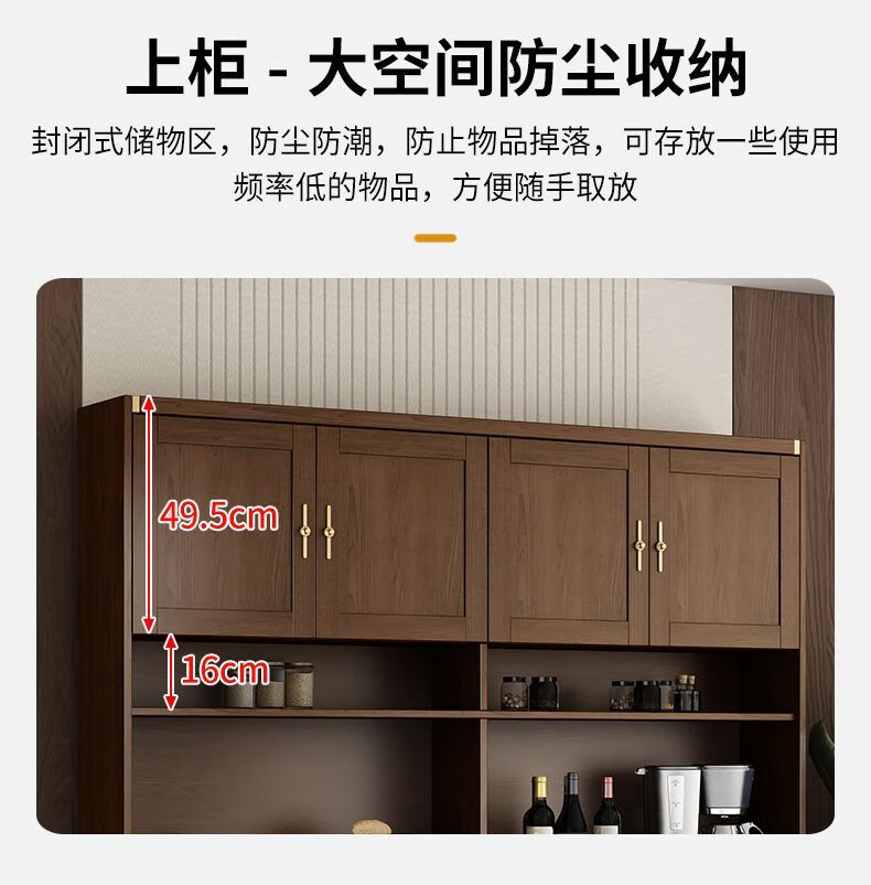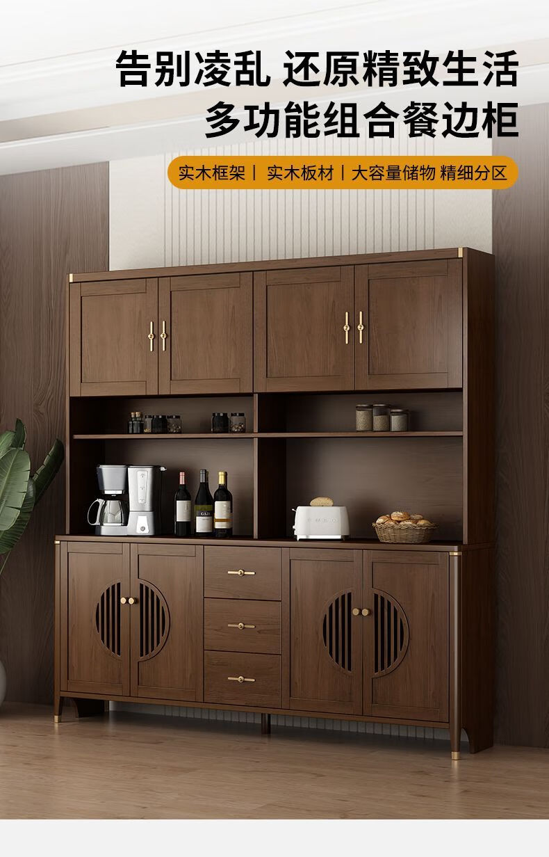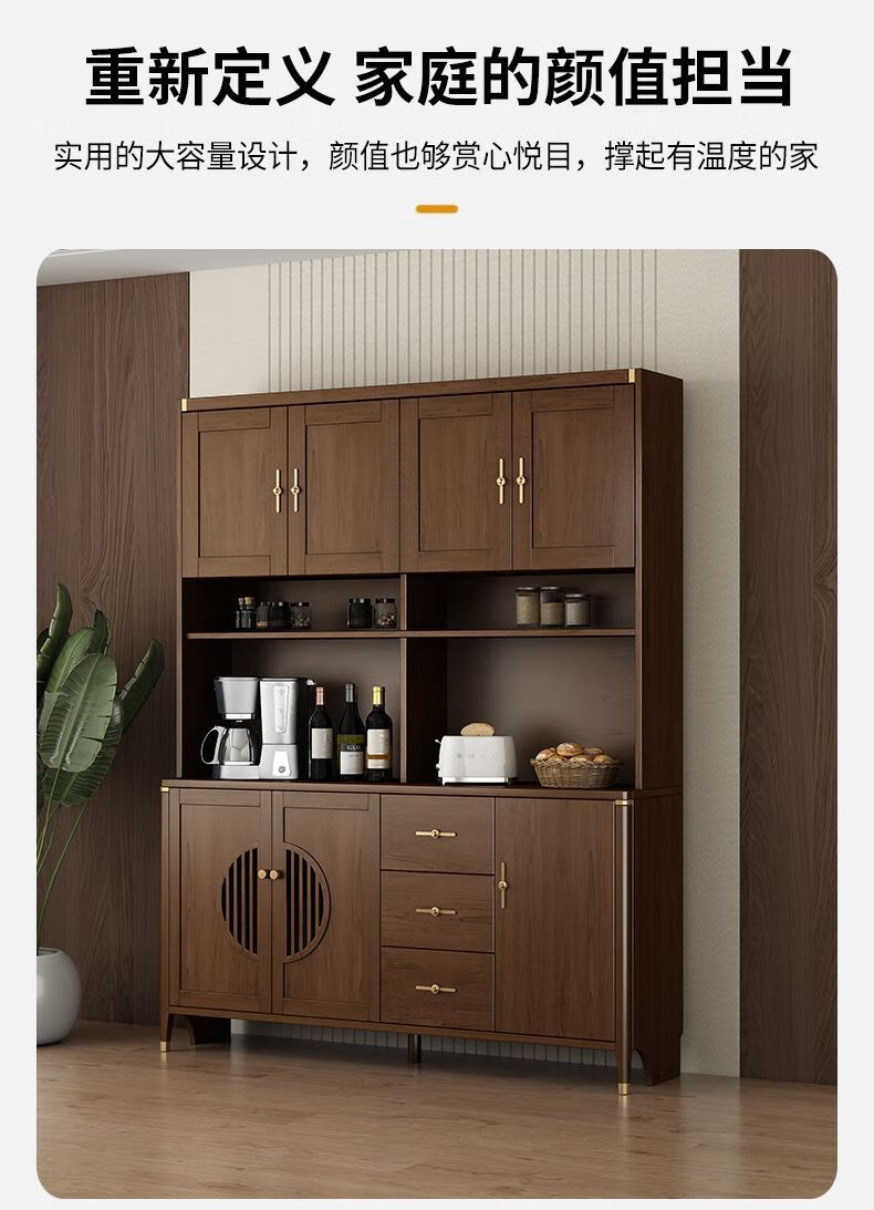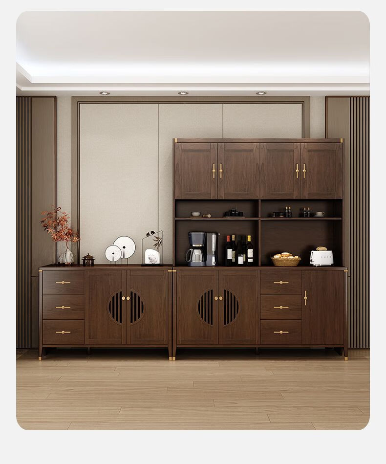 Juwanjia wood solid wood sideboard integrated wall cabinet new Chinese style wine cabinet living room storage cabinet tea cabinet kitchen storage cupboard walnut color multi-function cabinet 105*40*200cm