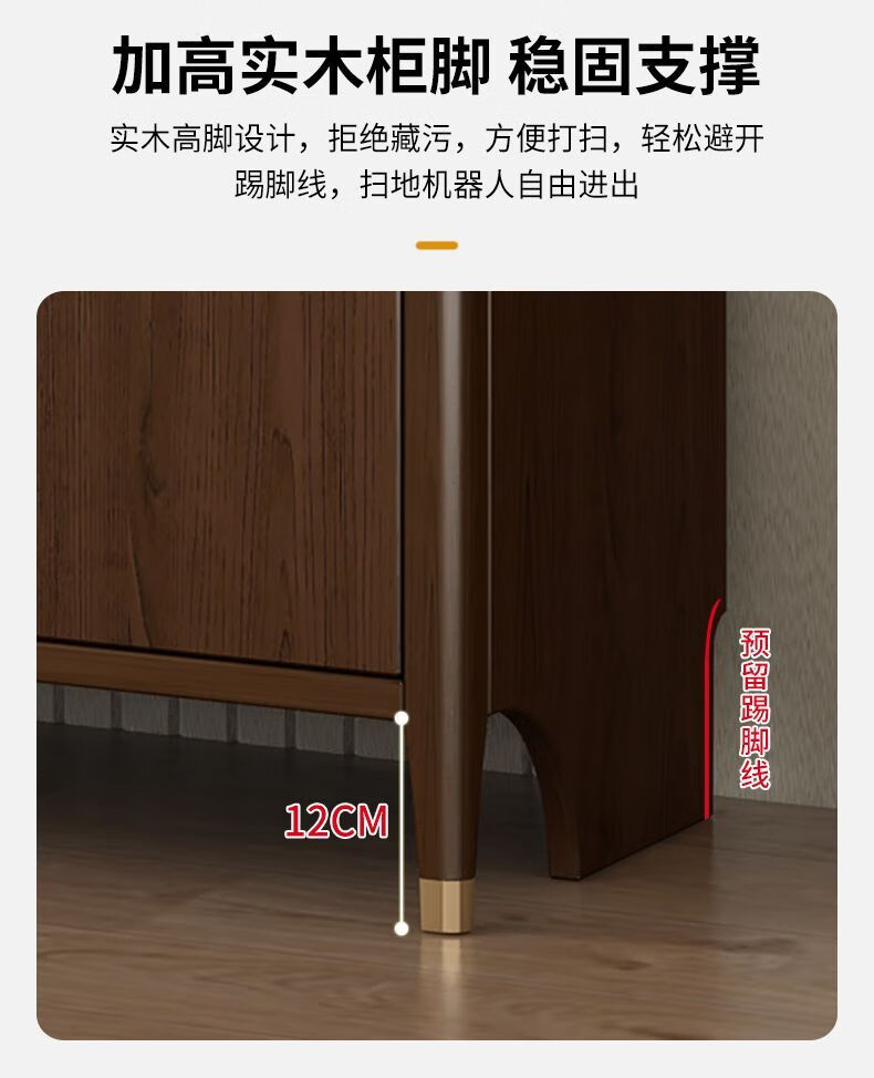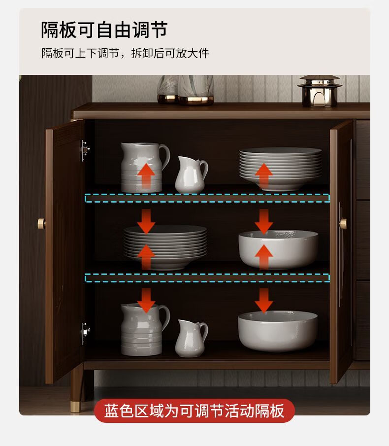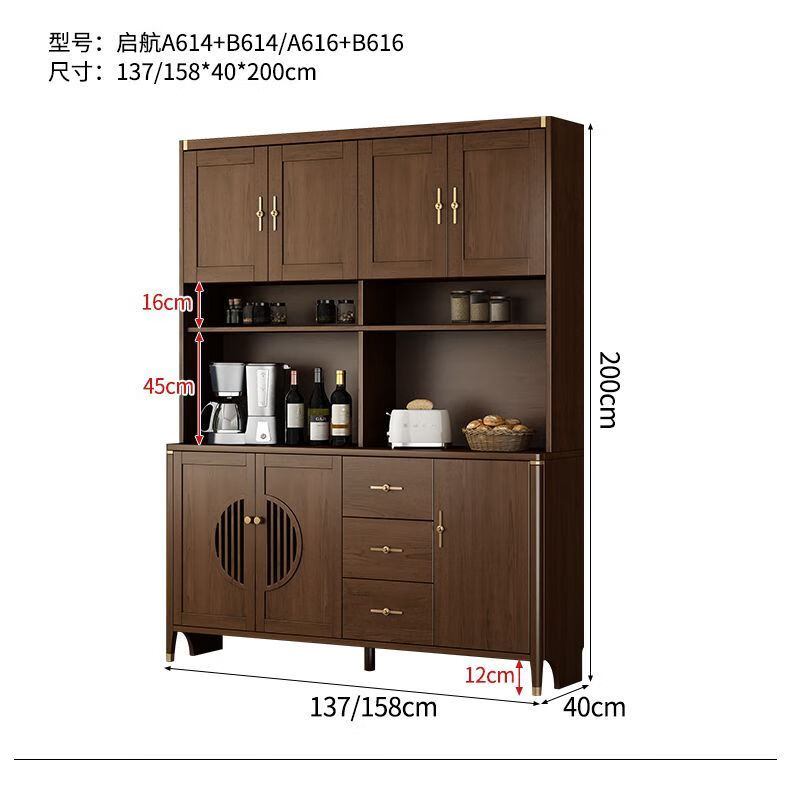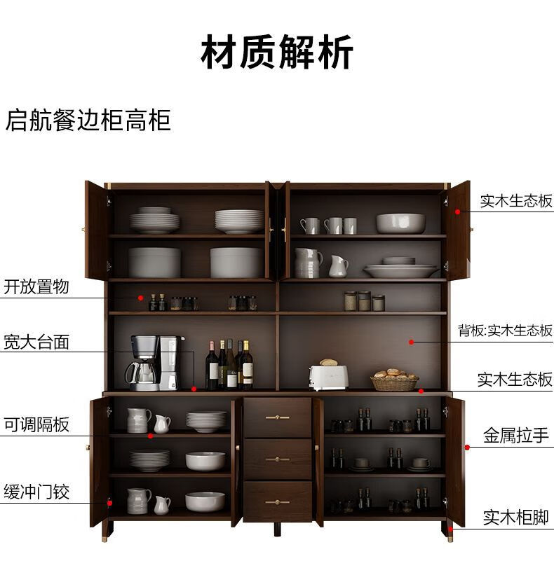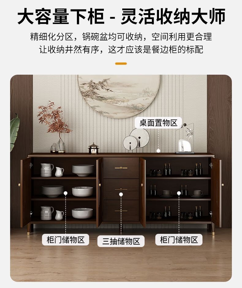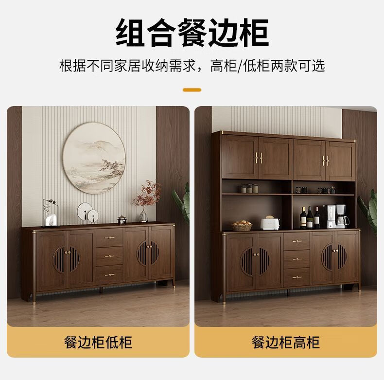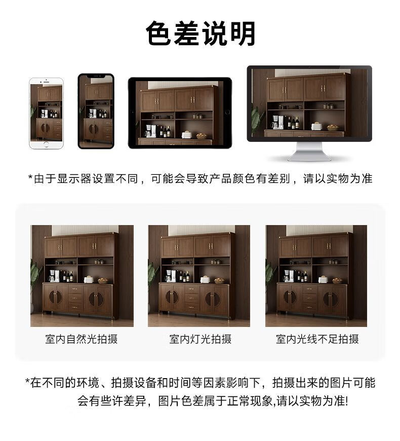 Juwanjia wood solid wood sideboard integrated wall cabinet new Chinese style wine cabinet living room storage cabinet tea cabinet kitchen storage cupboard walnut color multi-function cabinet 105*40*200cm