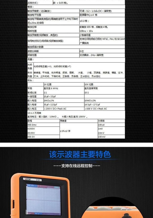 Victory Instrument (VICTOR) Victory Instrument single-channel digital color oscilloscope VC2101 handheld oscilloscope 100MHZ bandwidth