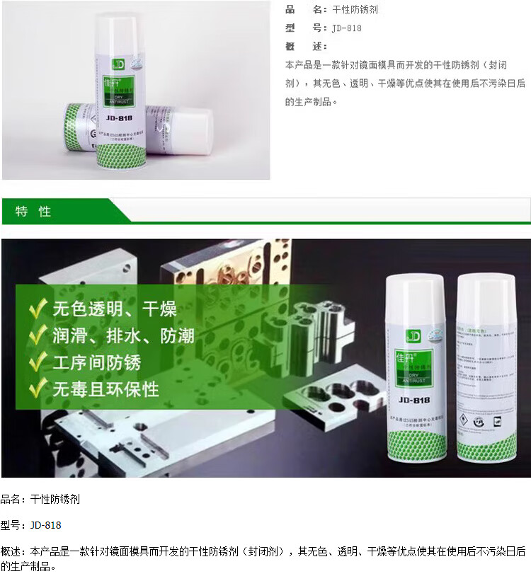 JD-818 dry rust inhibitor, transparent colorless lubricant, moisture-proof, waterproof and anti-rust oil, no-cleaning, environmentally friendly JD-818 dry rust inhibitor