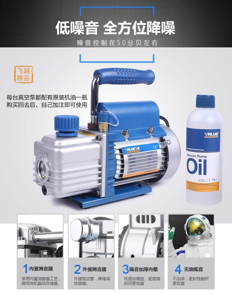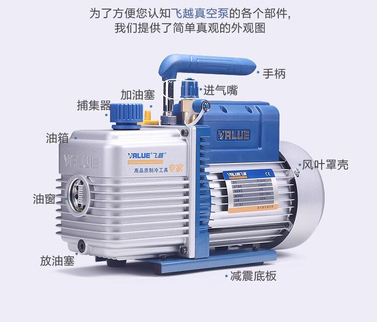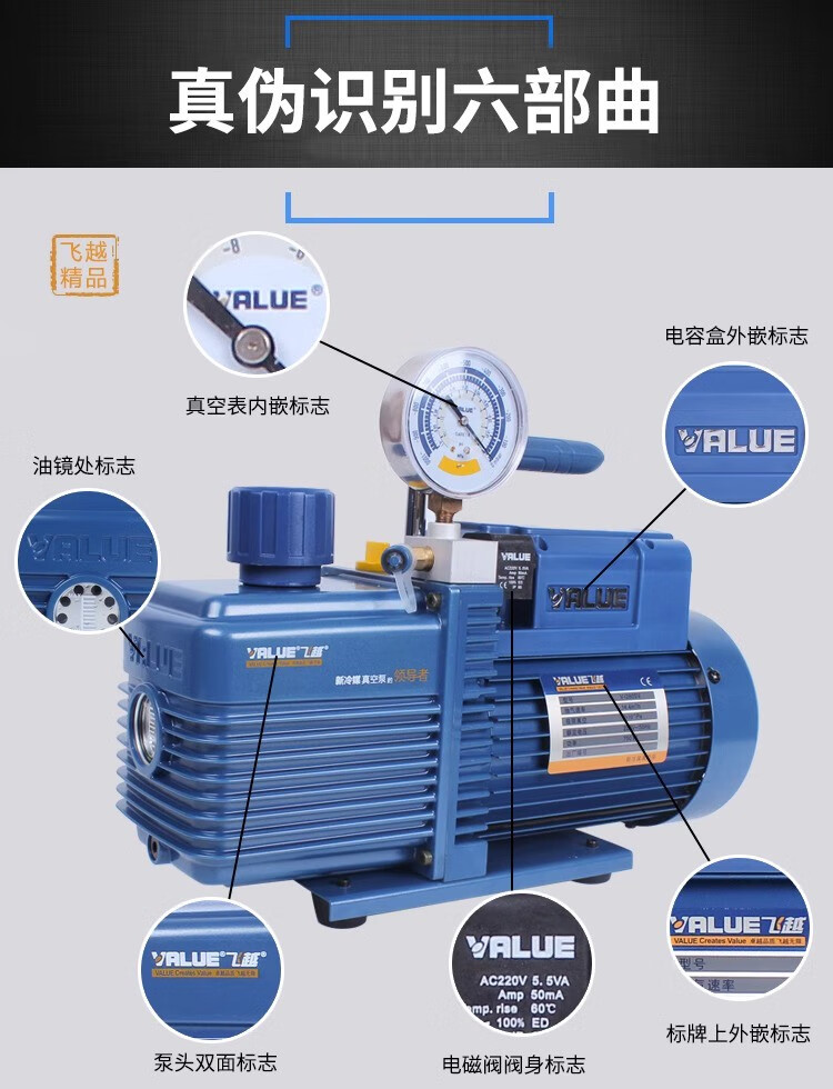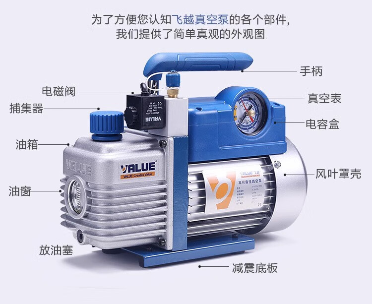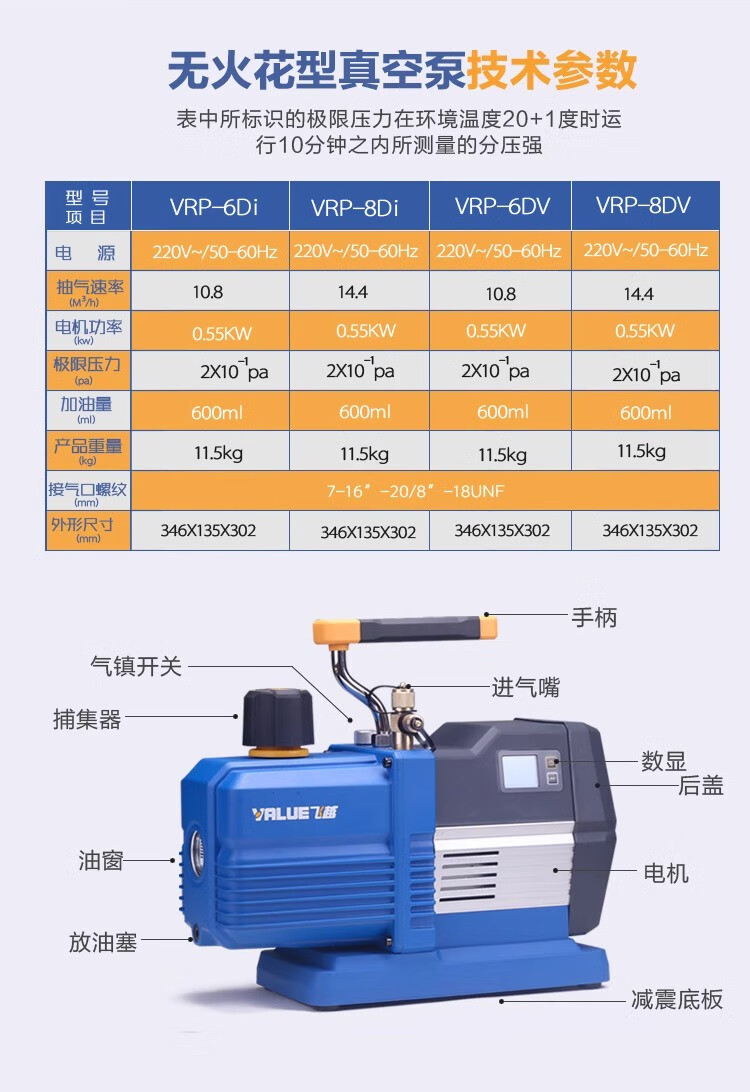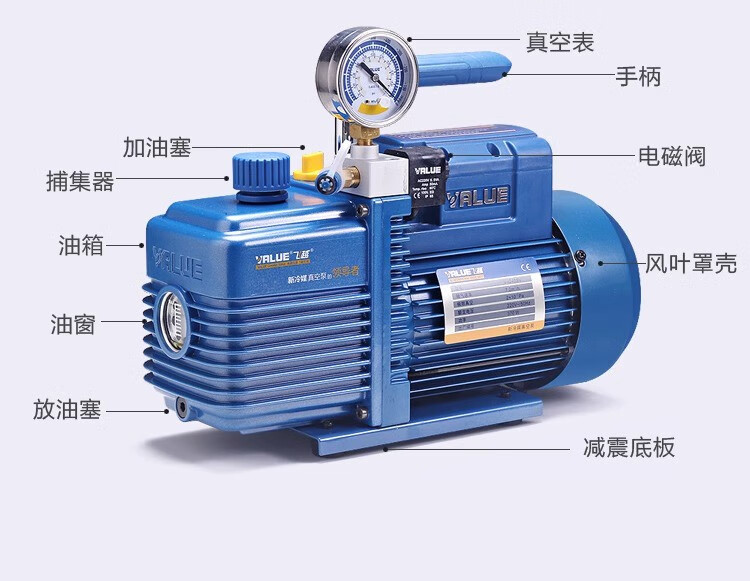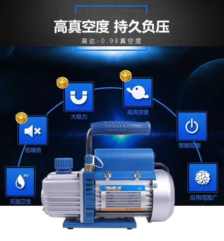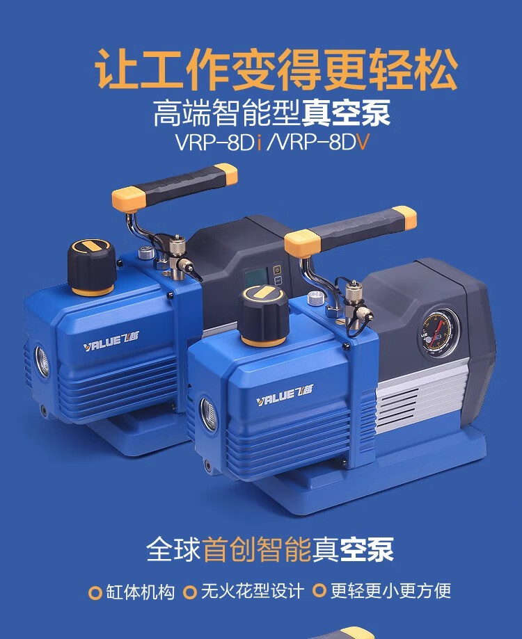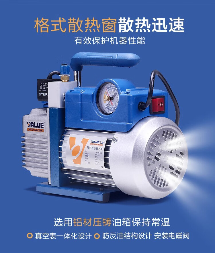 Feiyue vacuum pump 124L liter air conditioner refrigerator air pump plus fluoride meter experimental mold vacuum machine screen press new VRP-8Di4 liter two-stage with digital display meter
