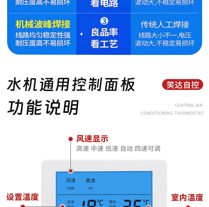 Water machine universal water system three-speed switch fan coil smart thermostat LCD central air conditioning control panel 811 models