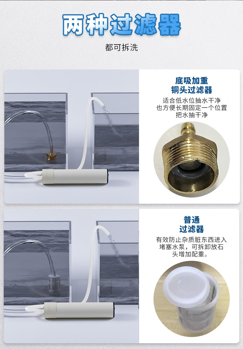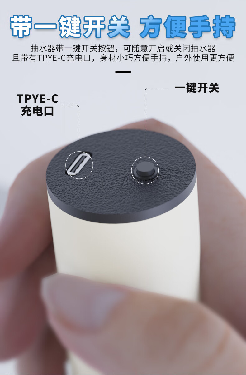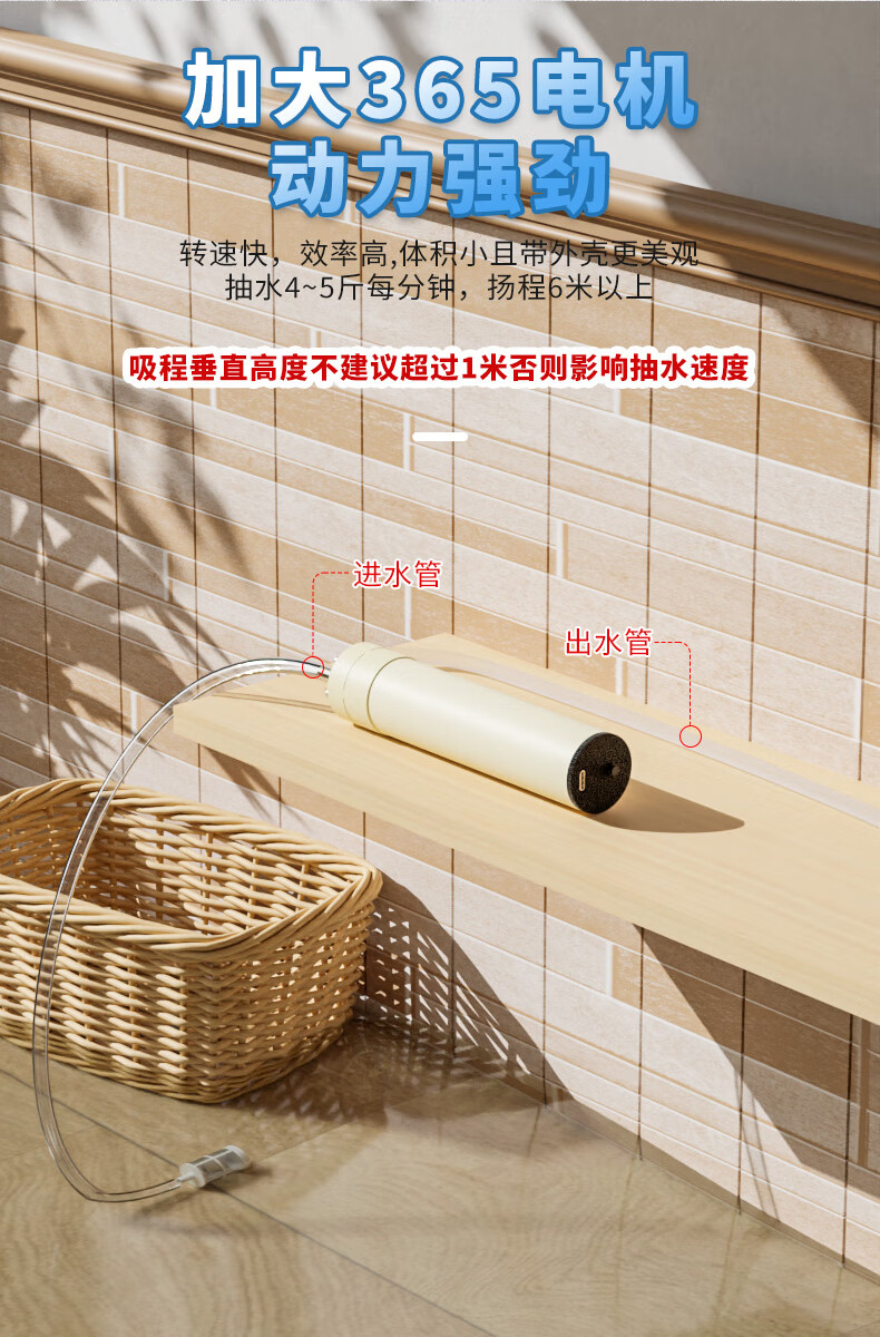 Simple automatic water pump small self-priming water pump DC micro strong power rechargeable Type-c port 3400ma shell water outlet pipe 1 meter + stainless steel mesh filter