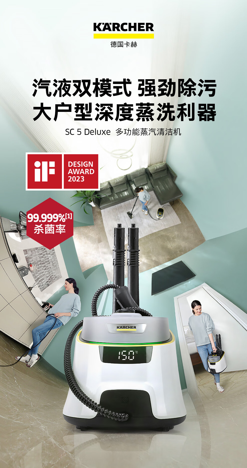 KARCHER German Kach high-temperature steam cleaner mop kitchen household high-pressure cleaning machine multi-function all-in-one machine SC5D SC5D standard version vapor-liquid dual mode model