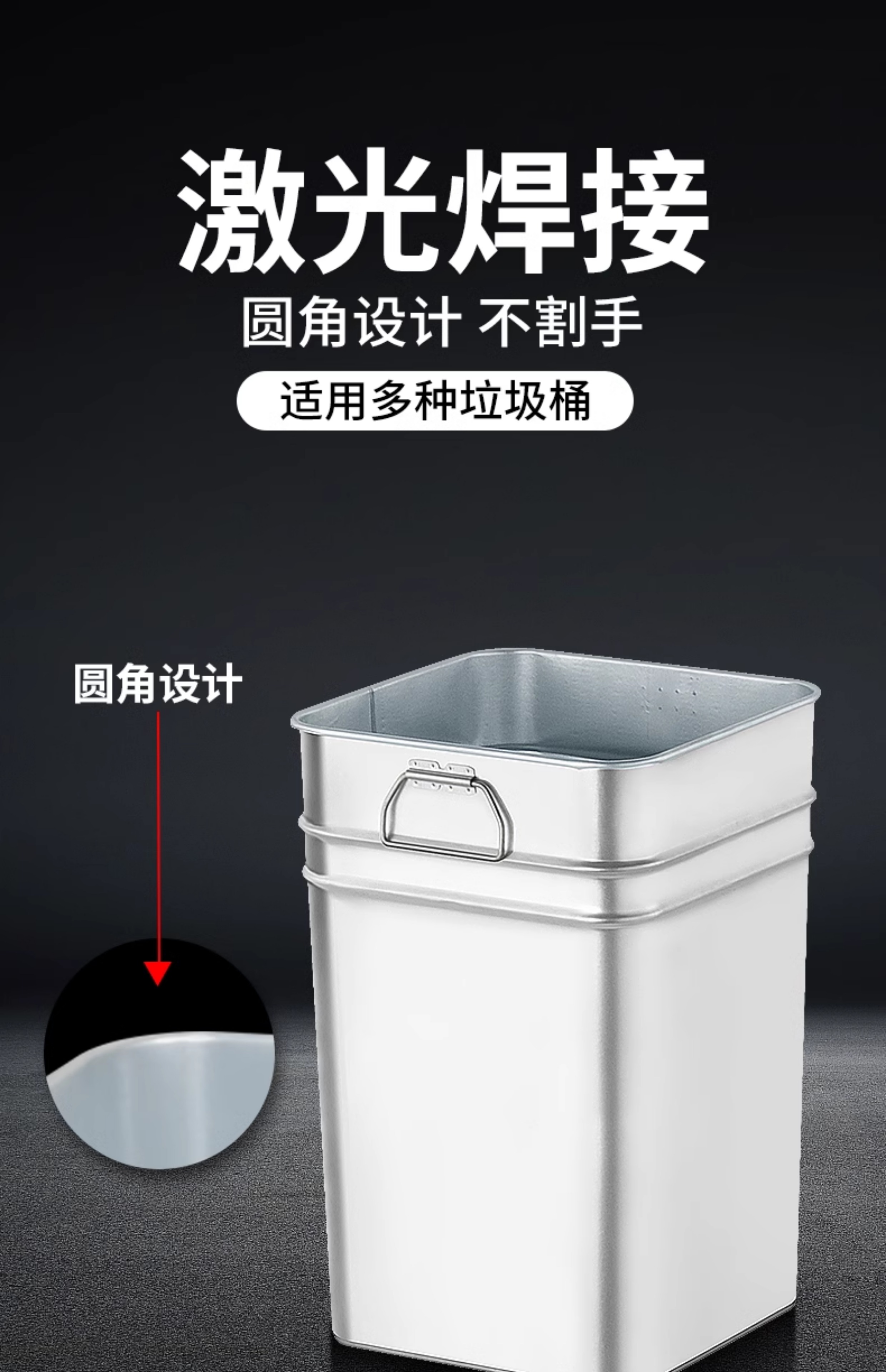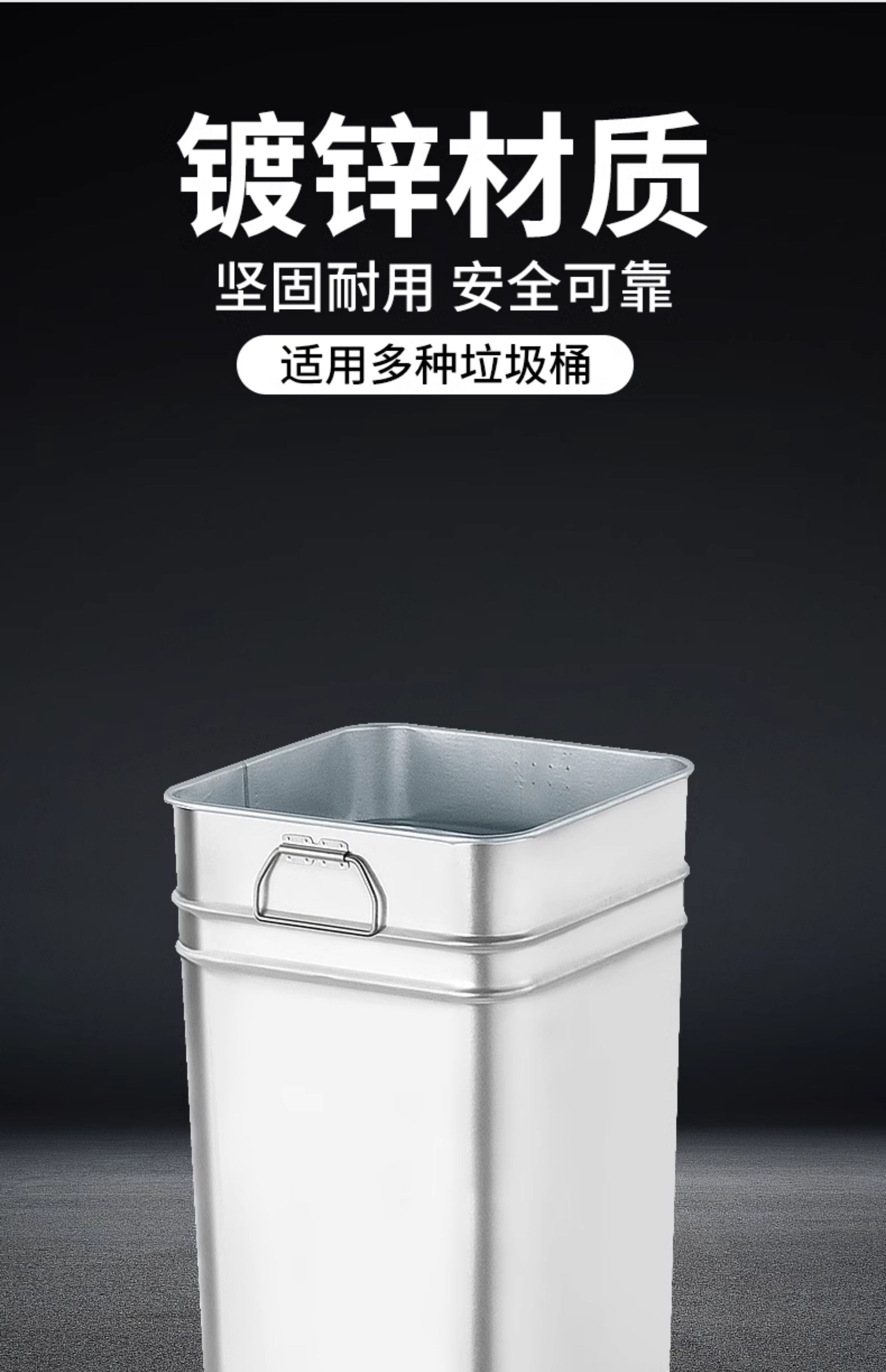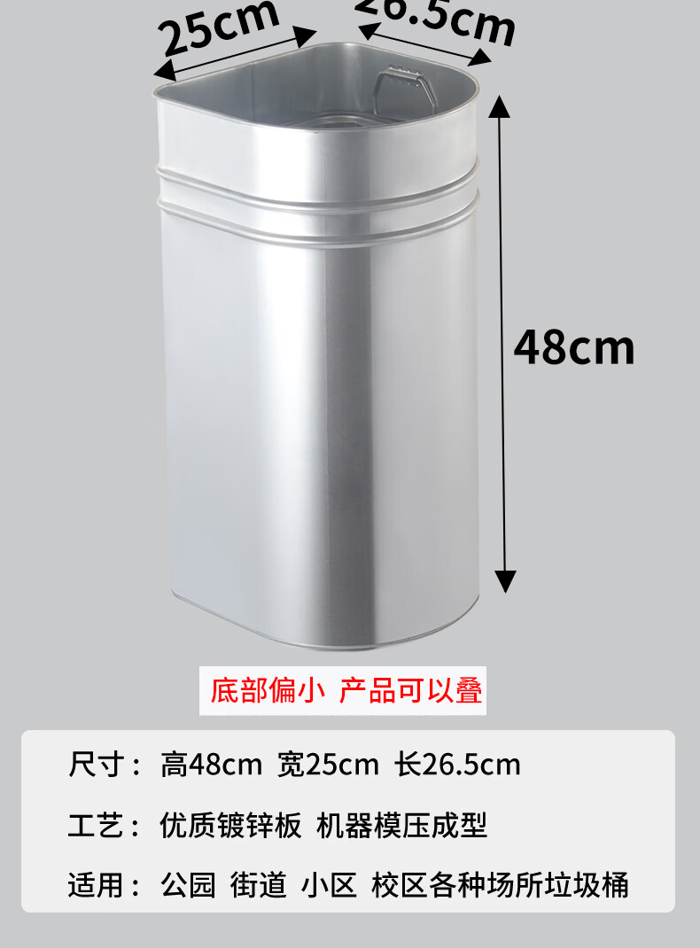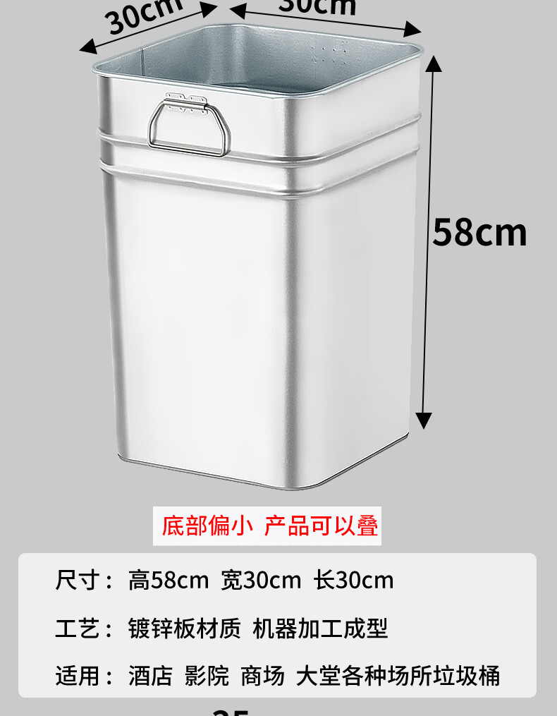 Outdoor stainless steel trash can liner round rectangular outdoor custom iron peel box galvanized inner barrel zinc iron barrel galvanized round liner 22X22X32CM portable binaural 2 pieces randomly sent