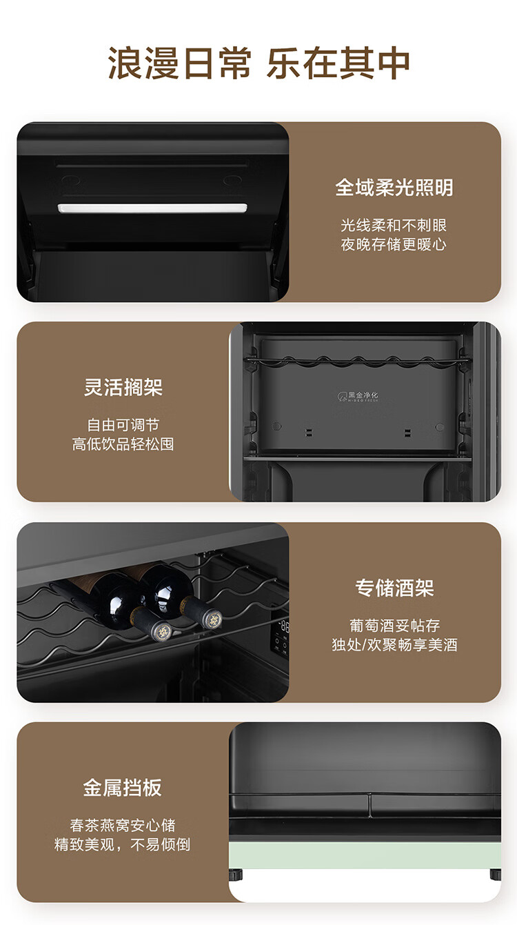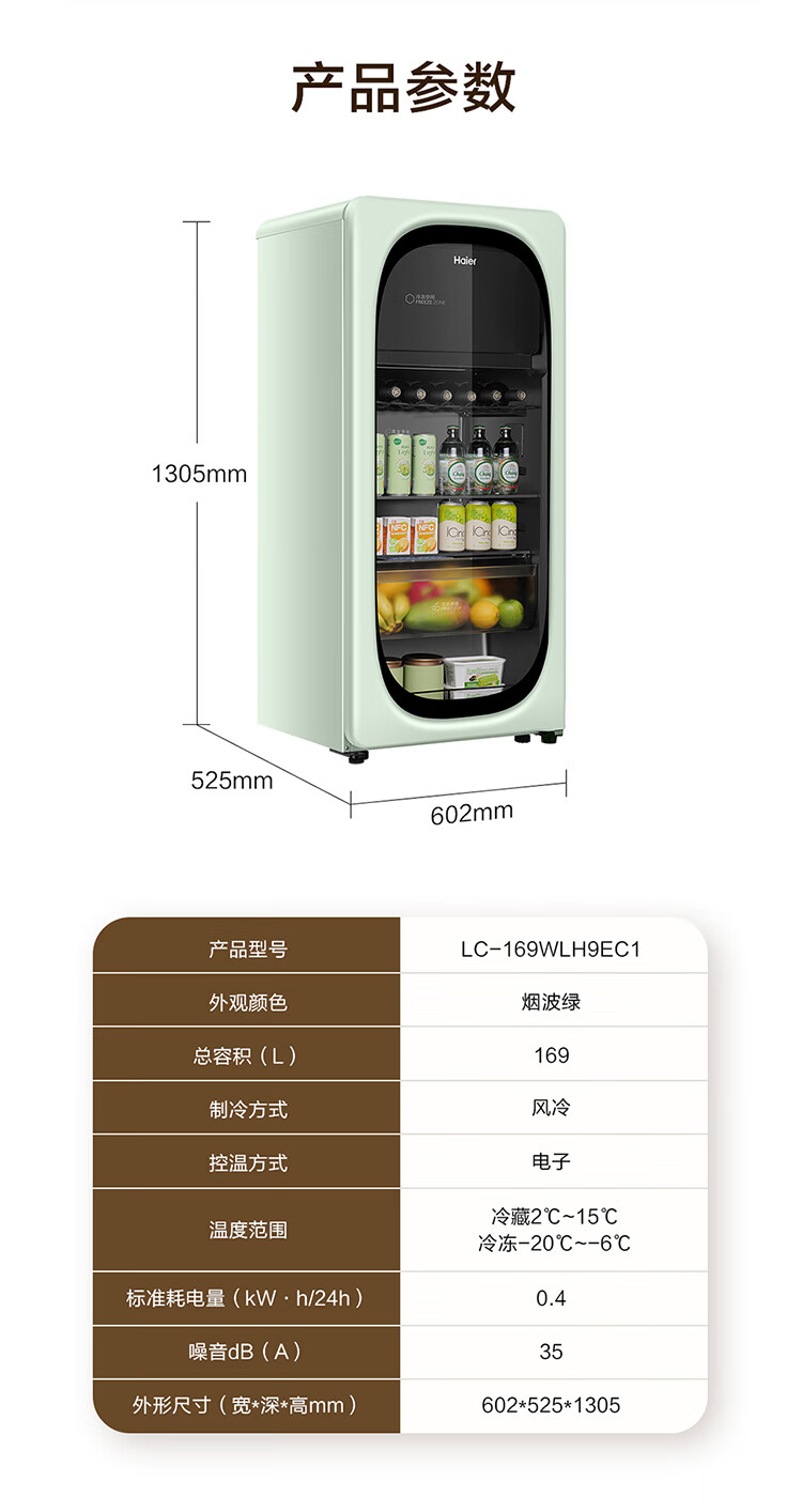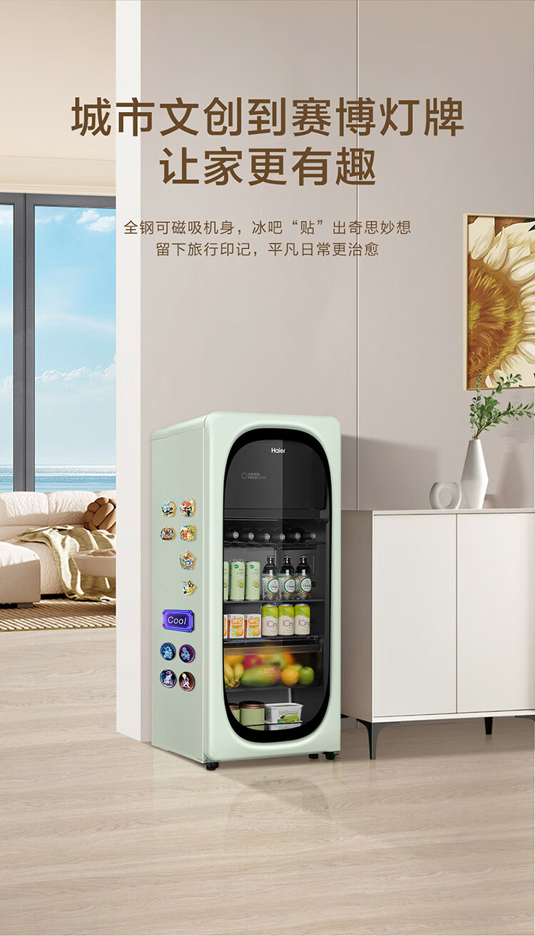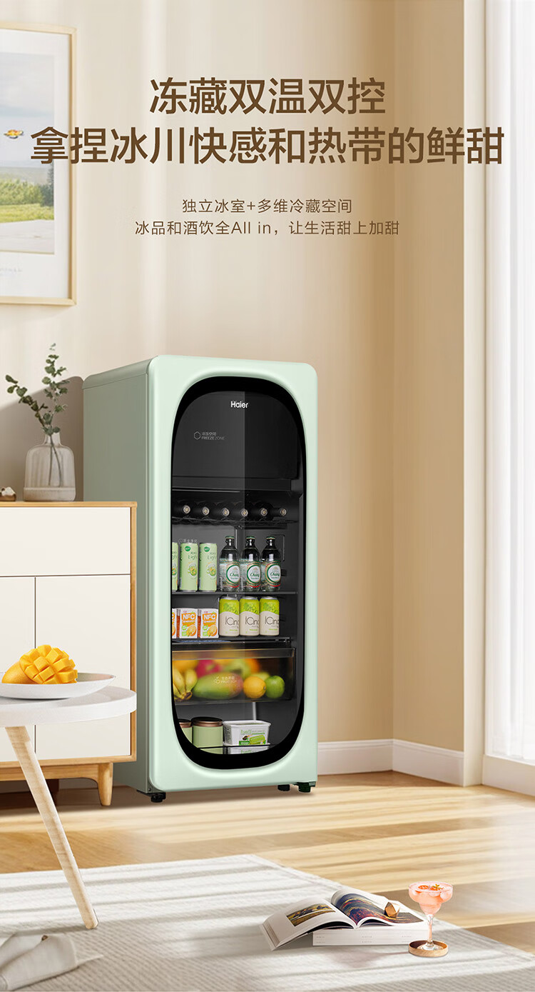 Haier's new product 169L air-cooled frost-free ice bar frozen storage dual-temperature partitioned storage tea beverage fruit moisturizing fresh-keeping cabinet home living room office refrigerated frozen wine cabinet new product Yanbo Green 169L frozen storage dual-temperature dual control