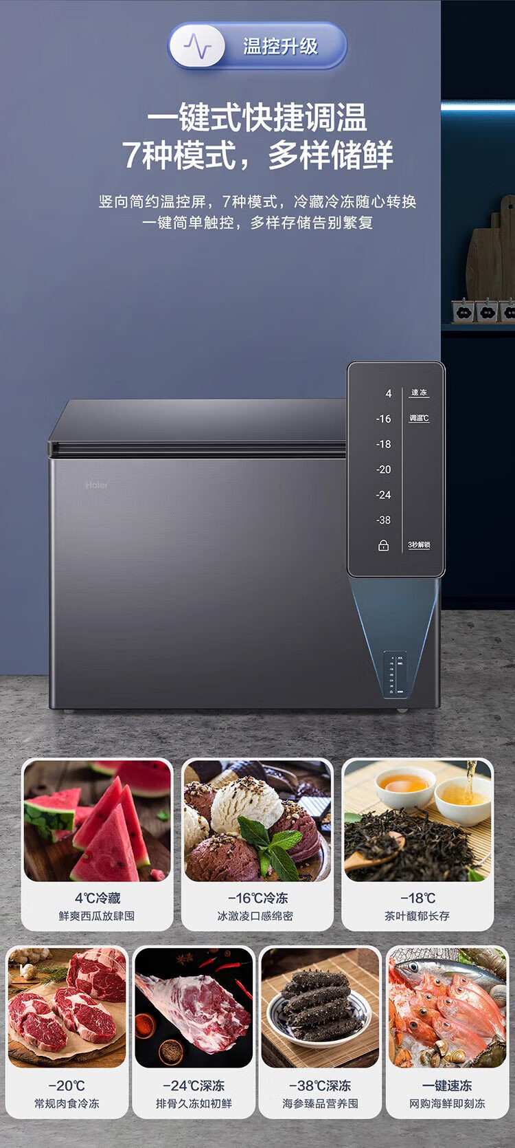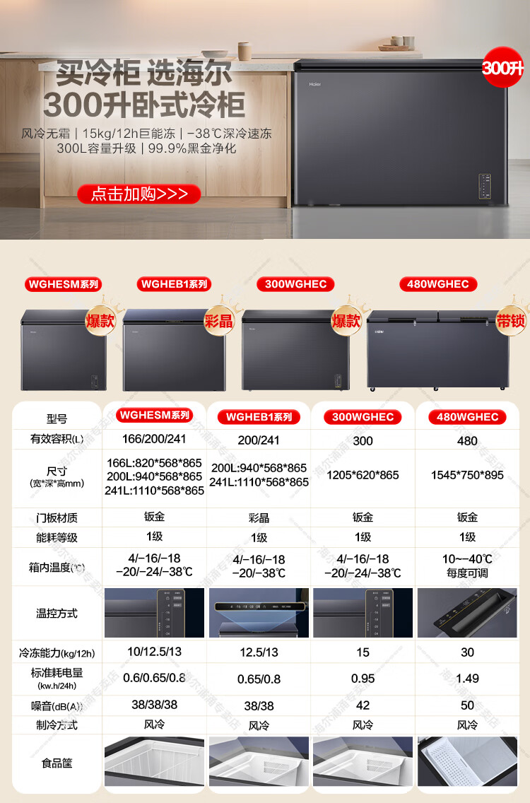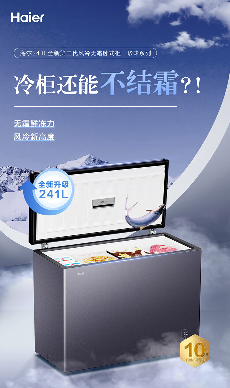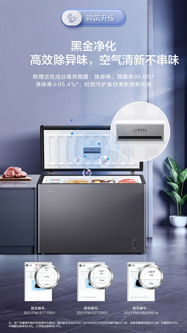 Haier (Haier) new freezer home air-cooled frost-free low-temperature freezer refrigeration-freezer switch deep-freezing quick-freezing sub-zero freezer BC/BD-200WGHESM Xingyun Silver Frost-free 200L