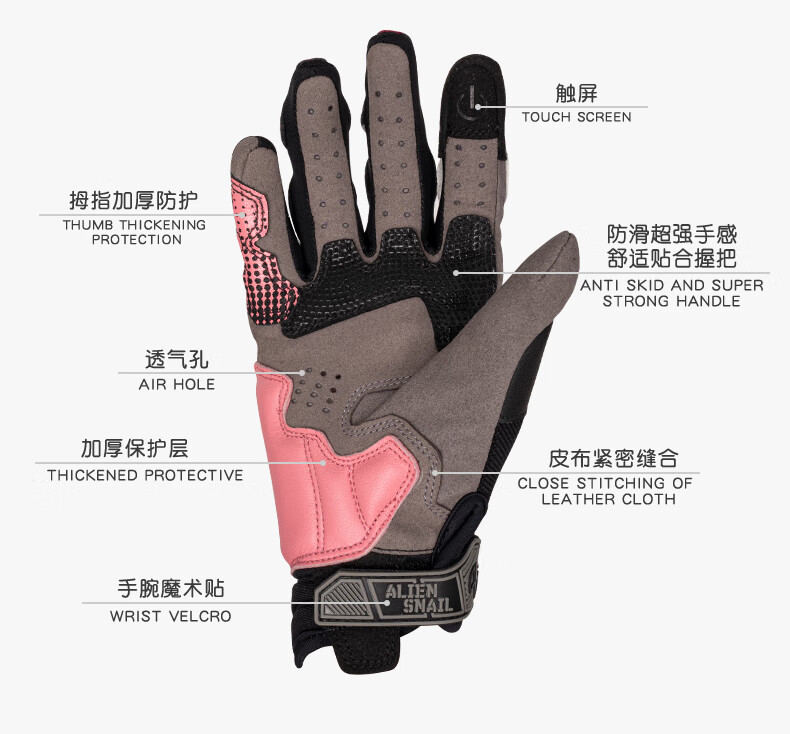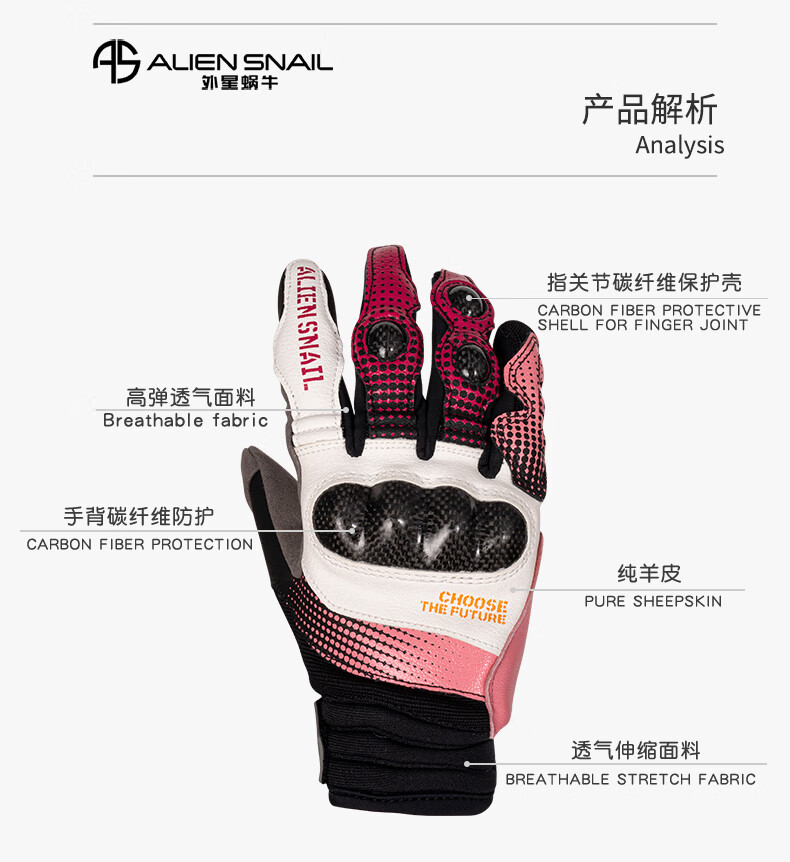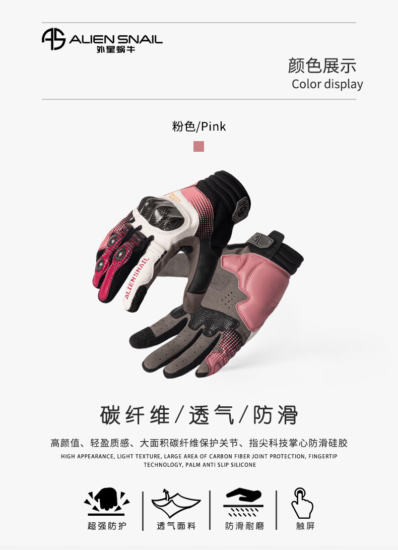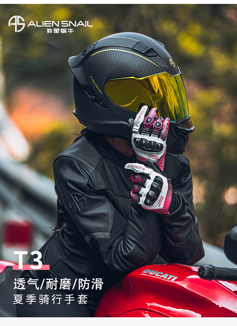 Alien Snail Women's T3 Gloves Carbon Fiber Anti-fall Women's Four Seasons Breathable Motorcycle Racing Motorcycle Riding Equipment T3 Red S
