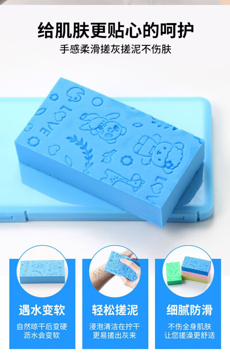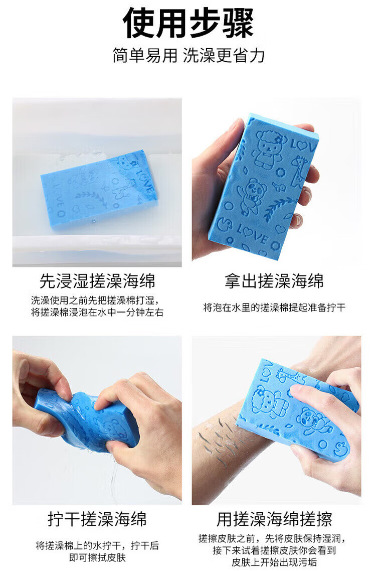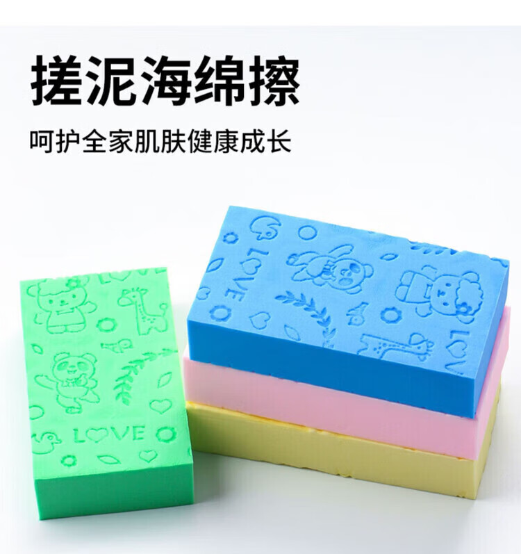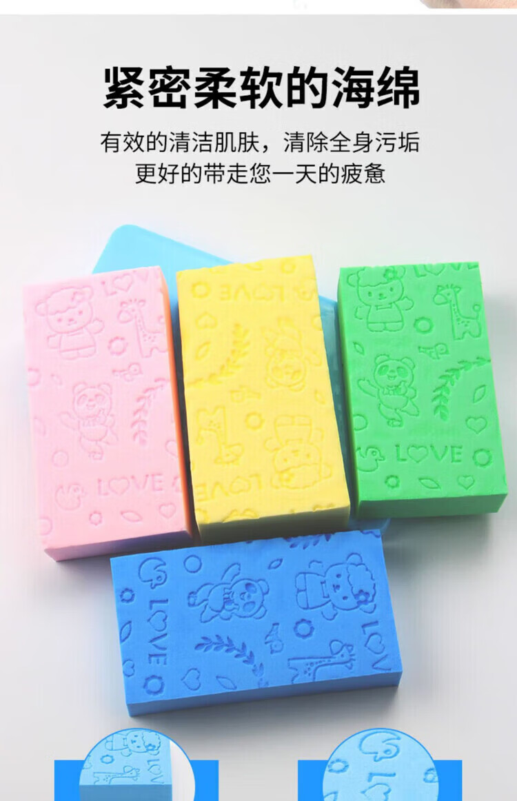 Children's bathing tool, baby mud sponge, bath towel, back rub, rub ash, 4 pack, mixed colors
