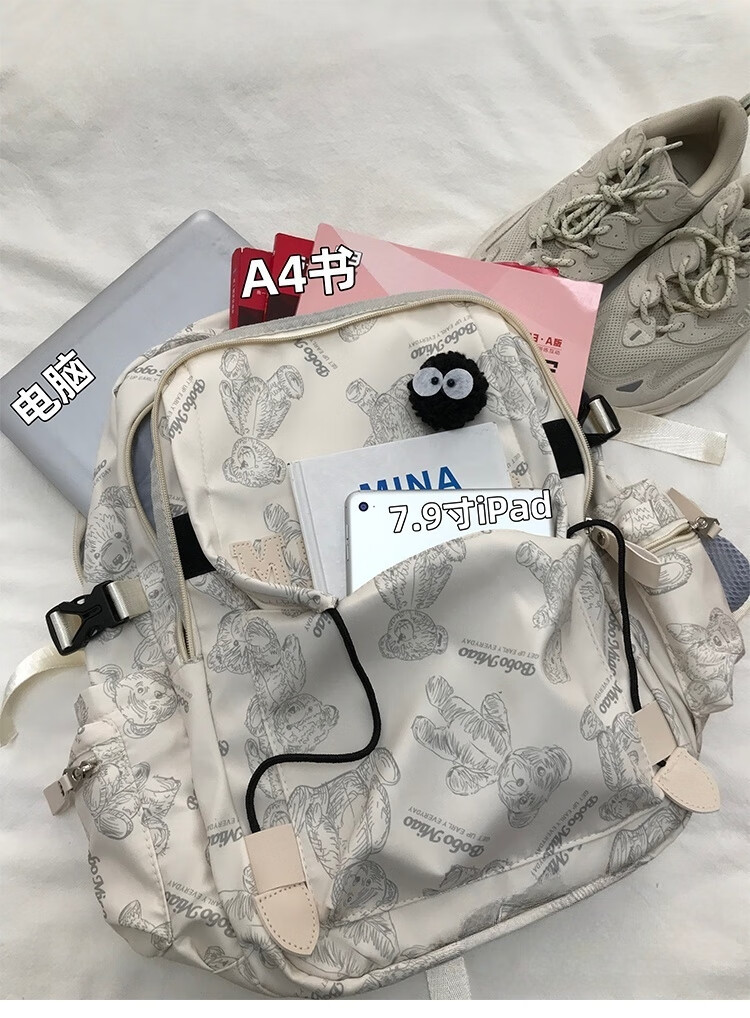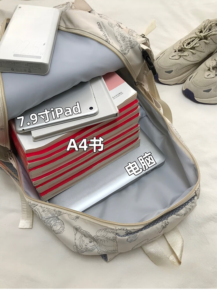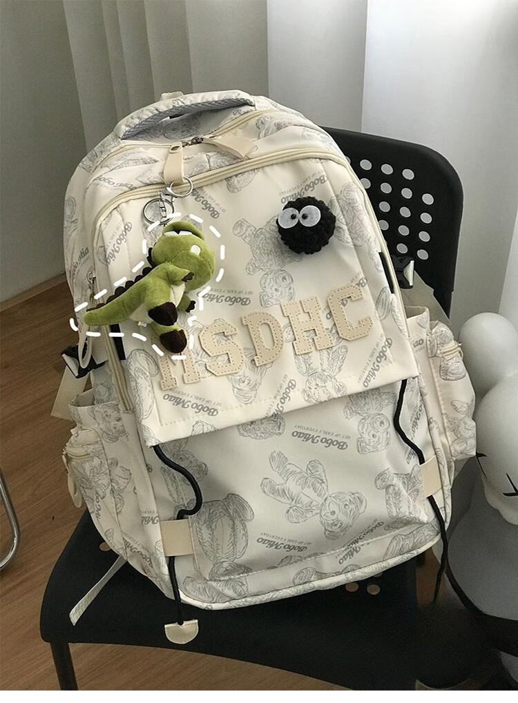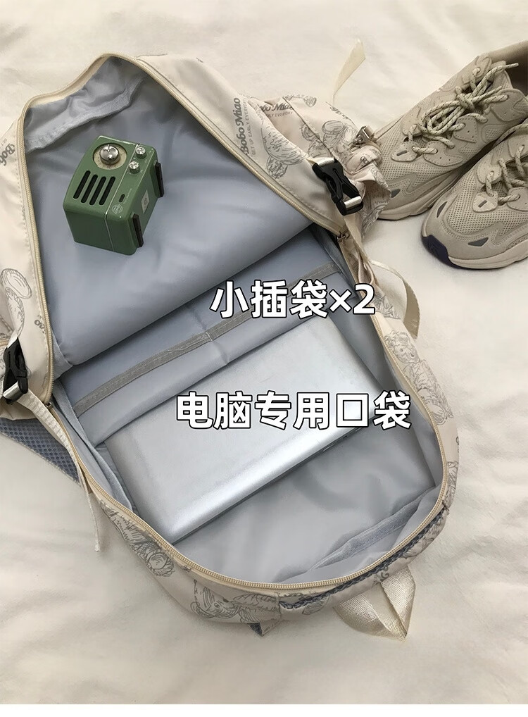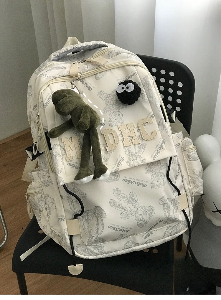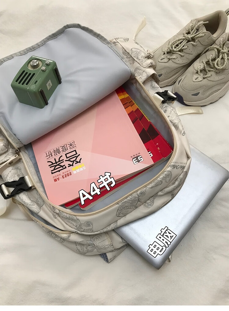Kuang Rui schoolbag junior high school students 2026 new work style large capacity backpack male high school college students high-looking backpack trendy off-white (with black briquettes pendant)