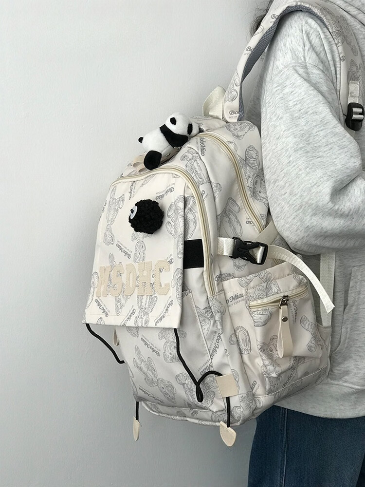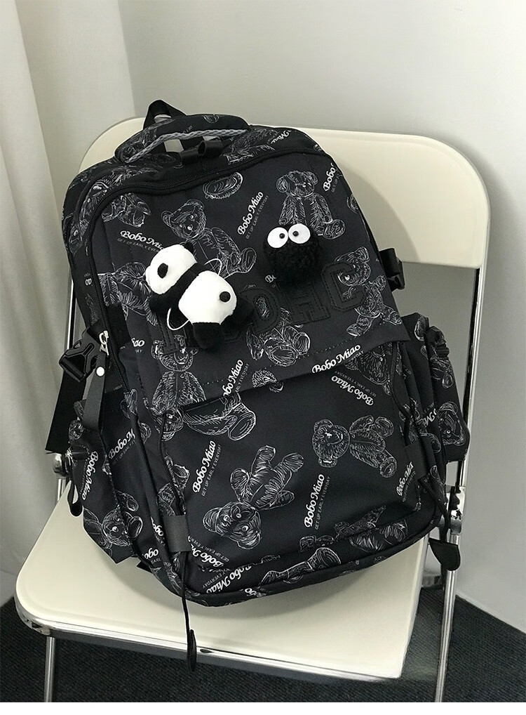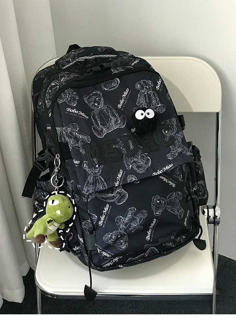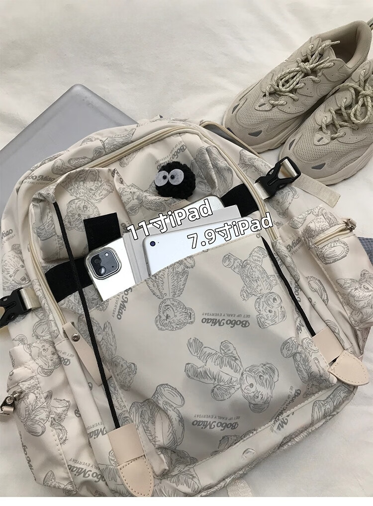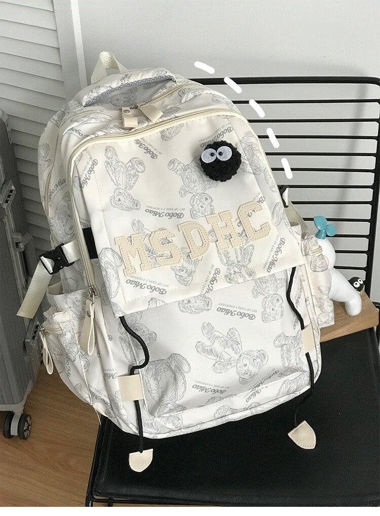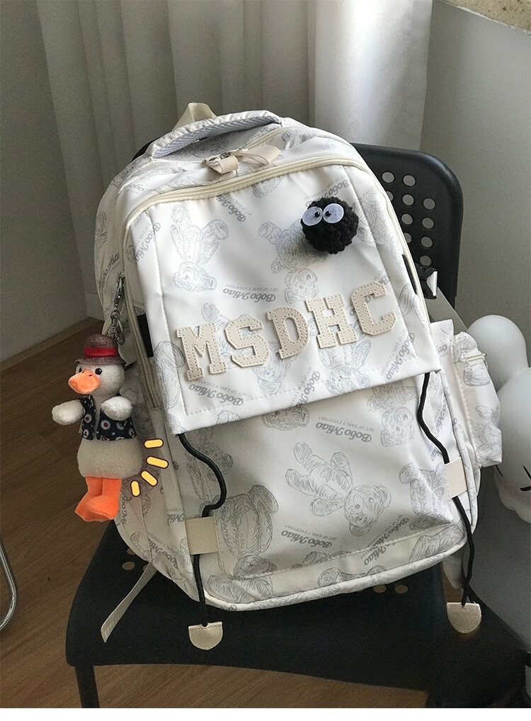 Kuang Rui schoolbag junior high school students 2026 new work style large capacity backpack male high school college students high-looking backpack trendy off-white (with black briquettes pendant)