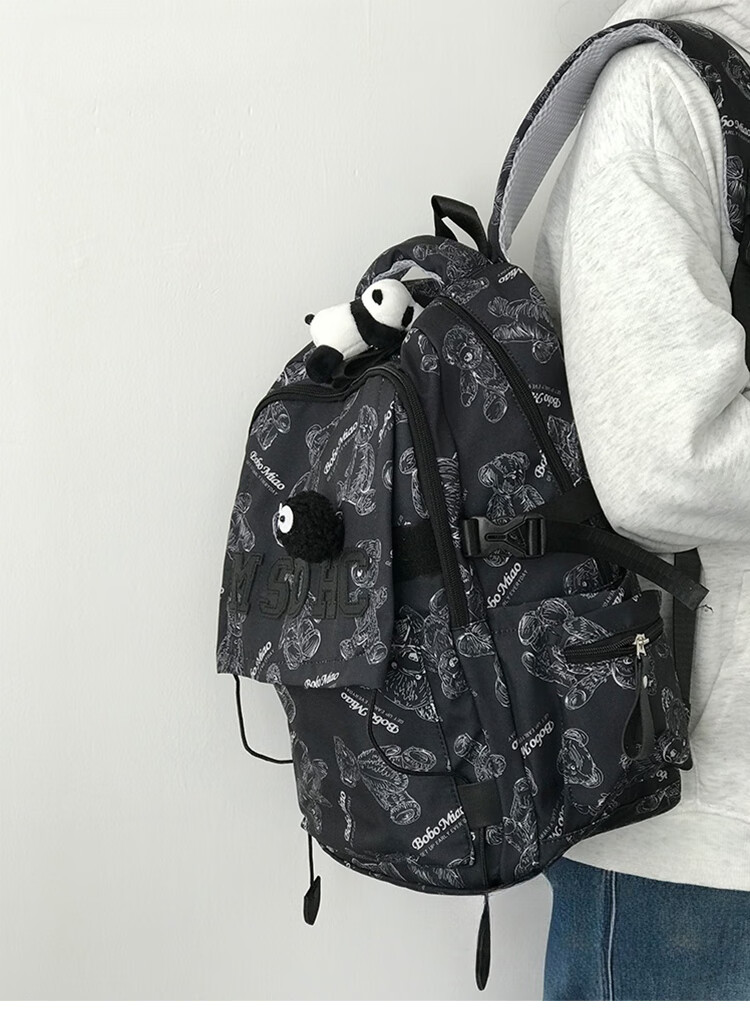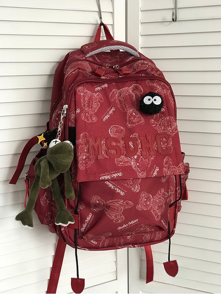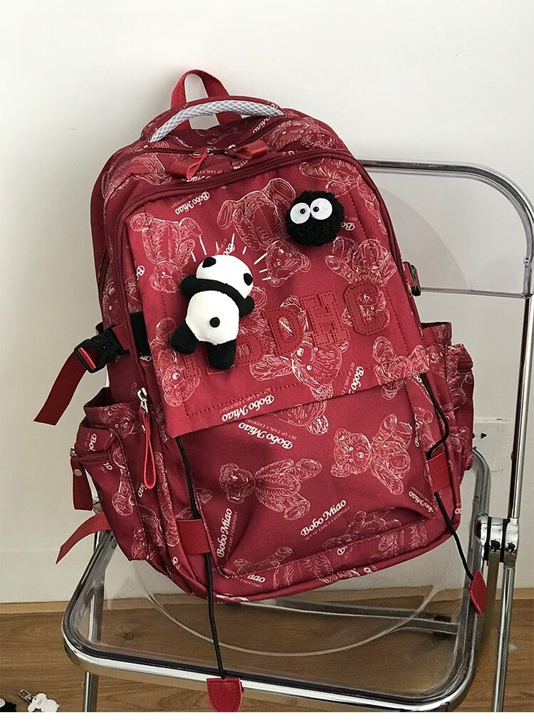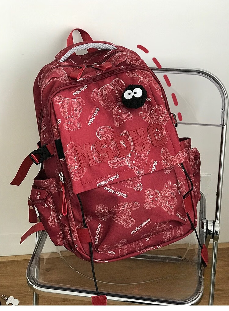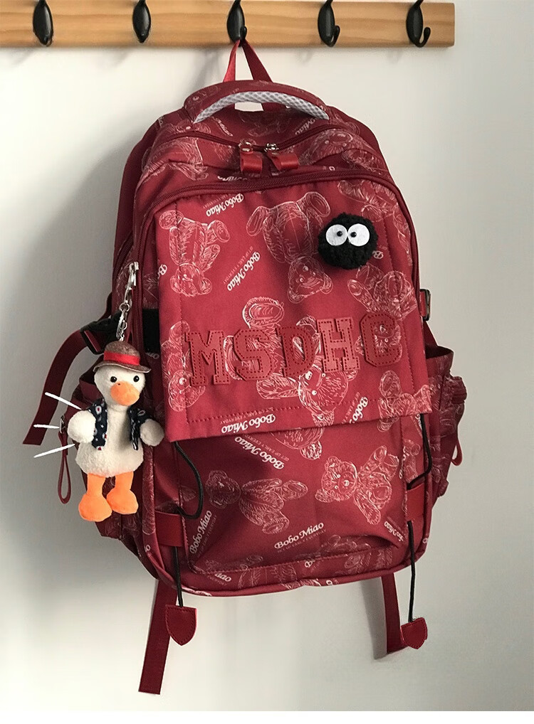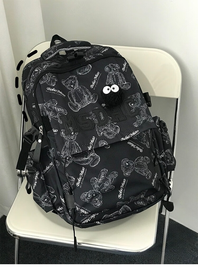 Kuang Rui schoolbag junior high school students 2026 new work style large capacity backpack male high school college students high-looking backpack trendy off-white (with black briquettes pendant)