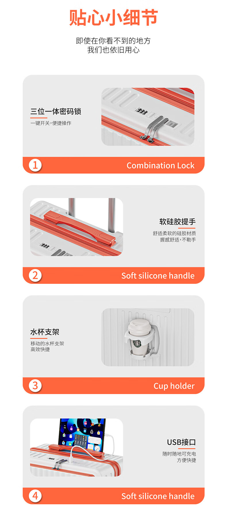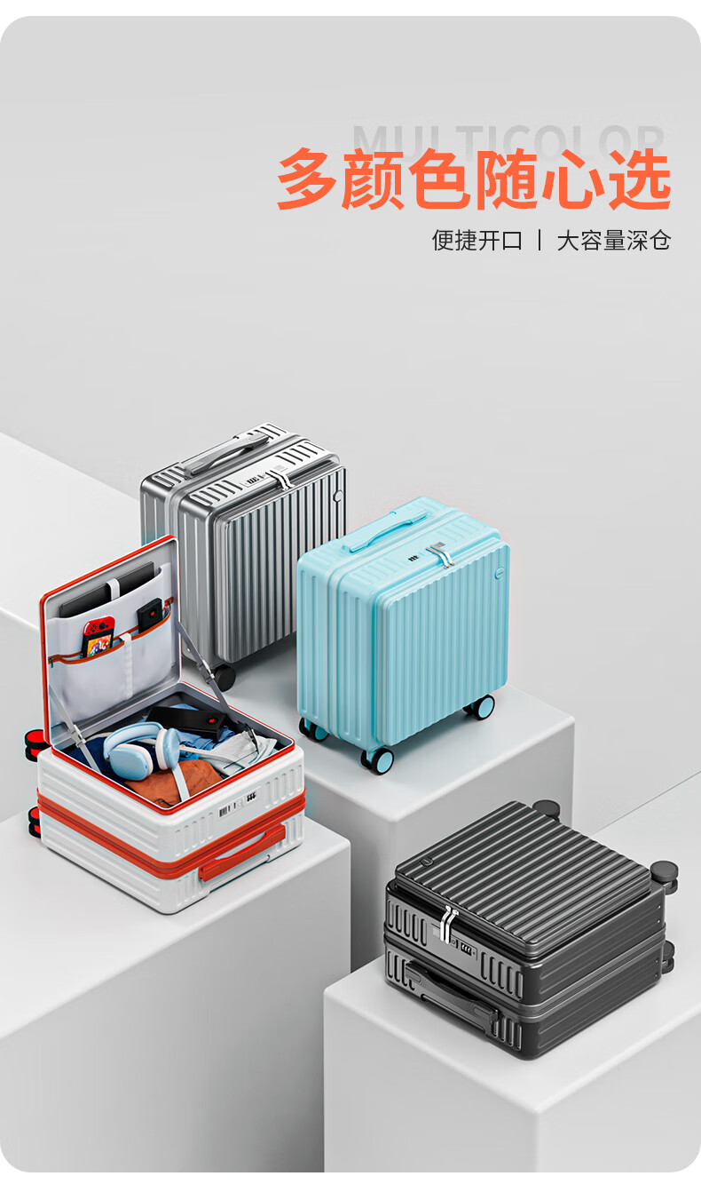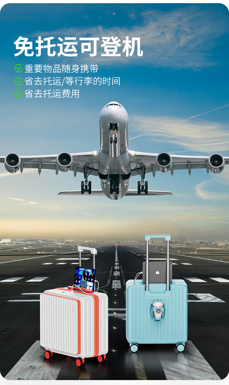 Double Star small suitcase 18-inch small 20-inch boarding case for men and women high-looking suitcase trolley case password case leather suitcase quiet night black cup holder + rechargeable + mobile phone holder top configuration 18 inches black and white gray tomorrow's most popular choice