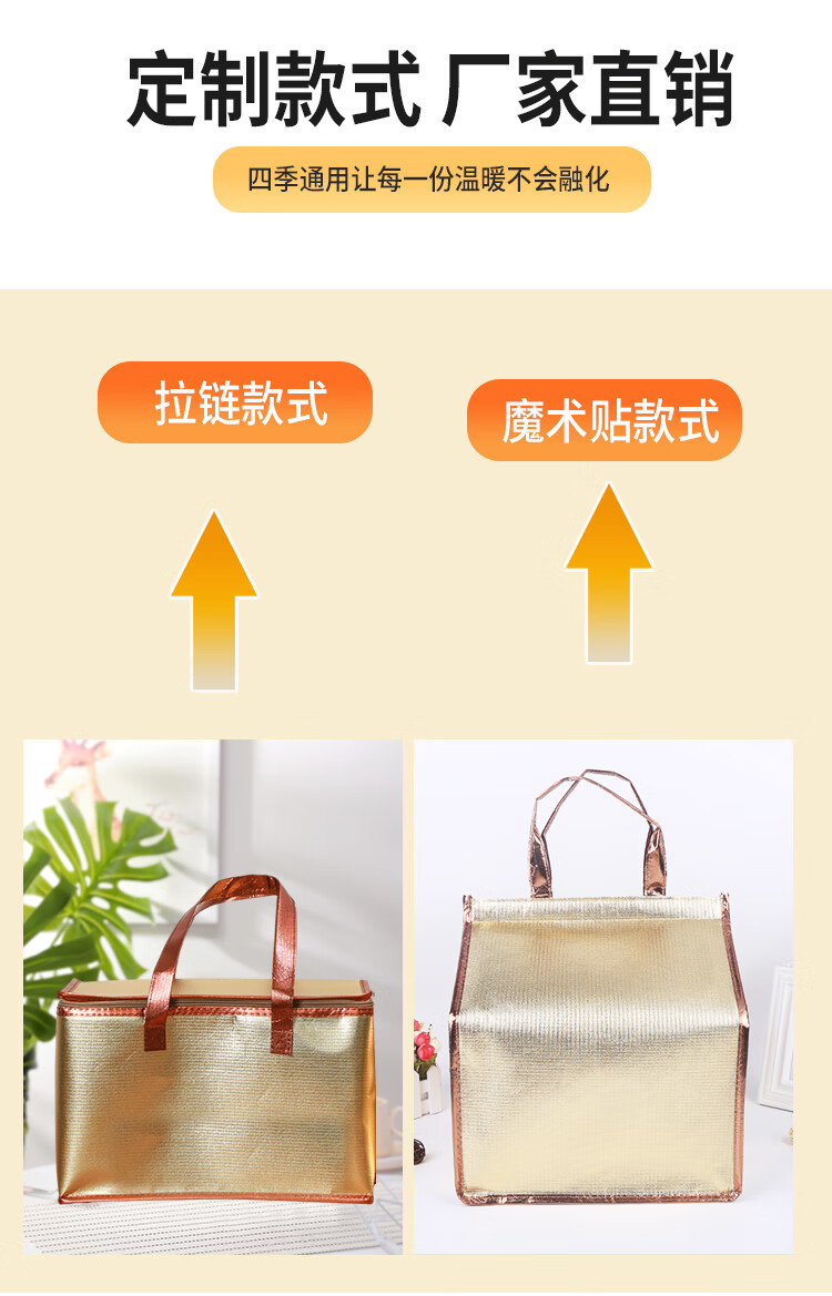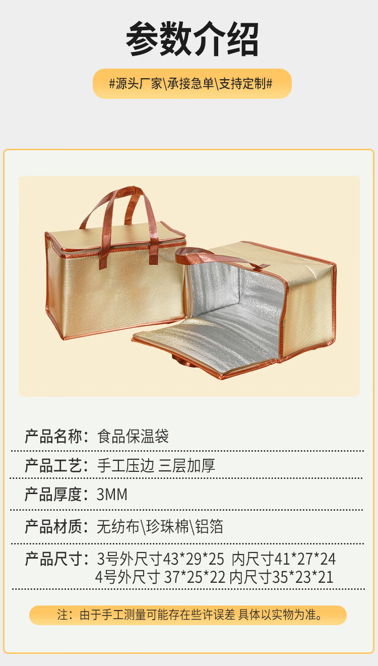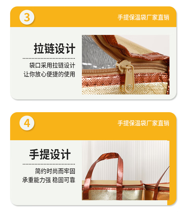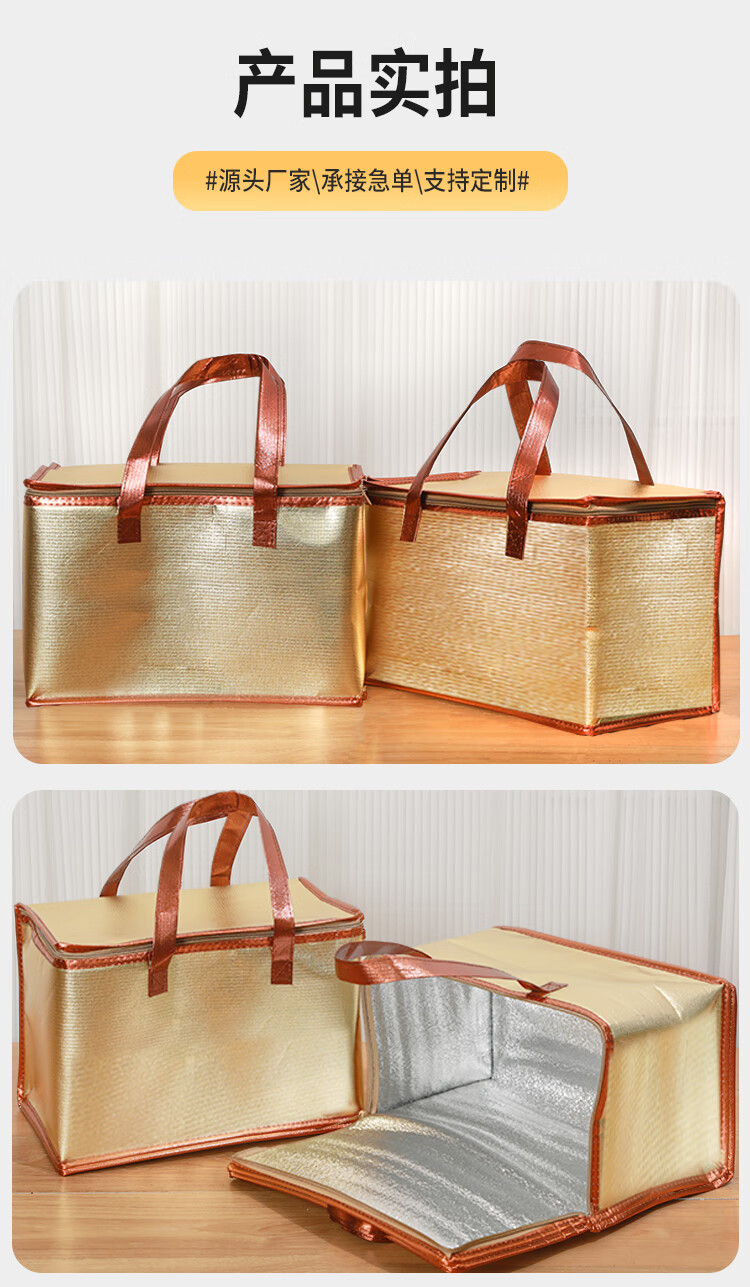 Golden square rectangular zipper No. 3 No. 4 seafood foam box insulation bag beef and mutton sea cucumber gift bag customization zipper style gold No. 4 length 37 width 25 height 22