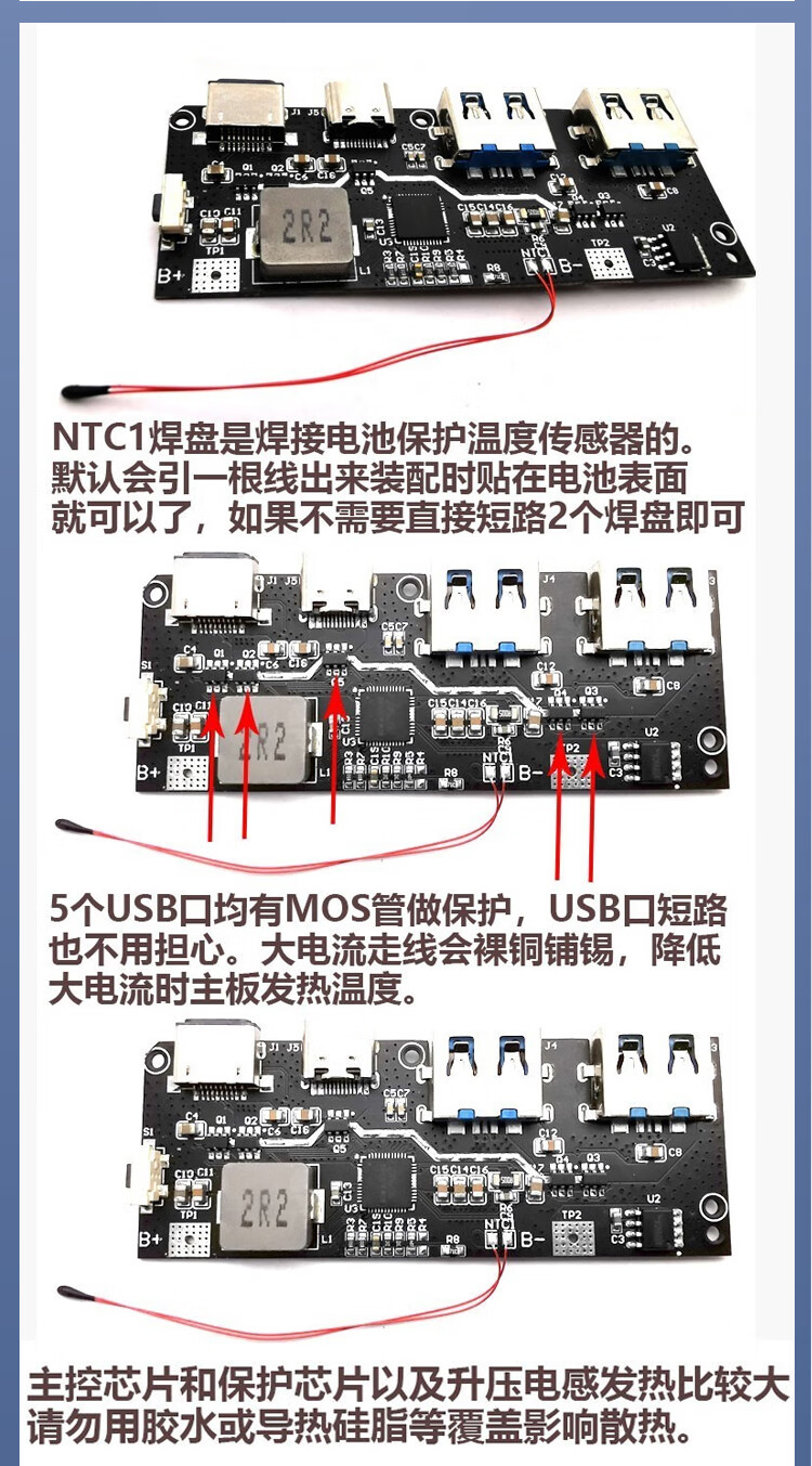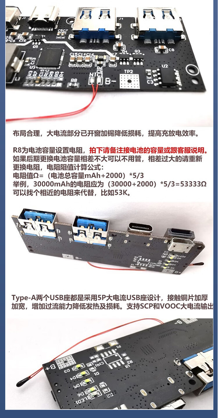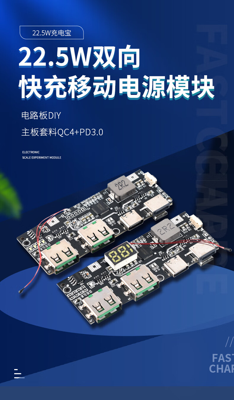 22.5W power bank 5-port two-way fast charging mobile power module circuit board DIY motherboard nesting material QC4+PD3.0 SW6208 two-way fast charging module 22.5W digital tube LED display no specifications
