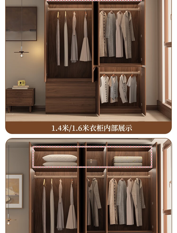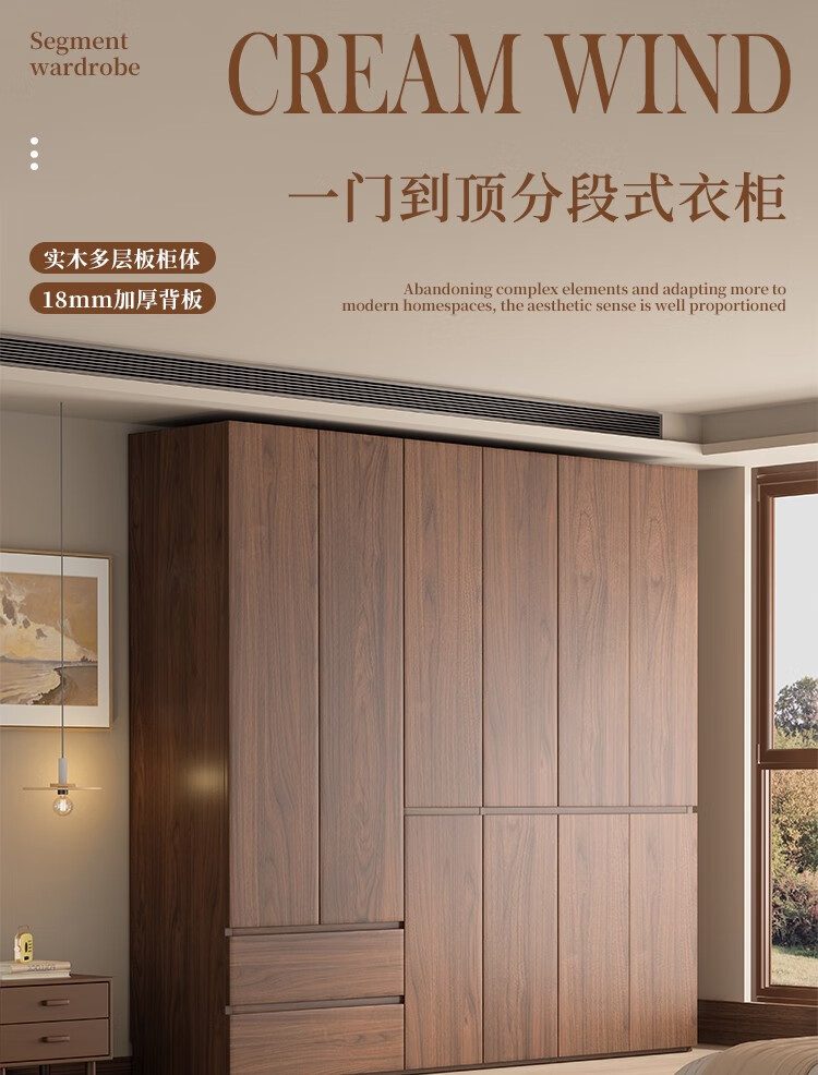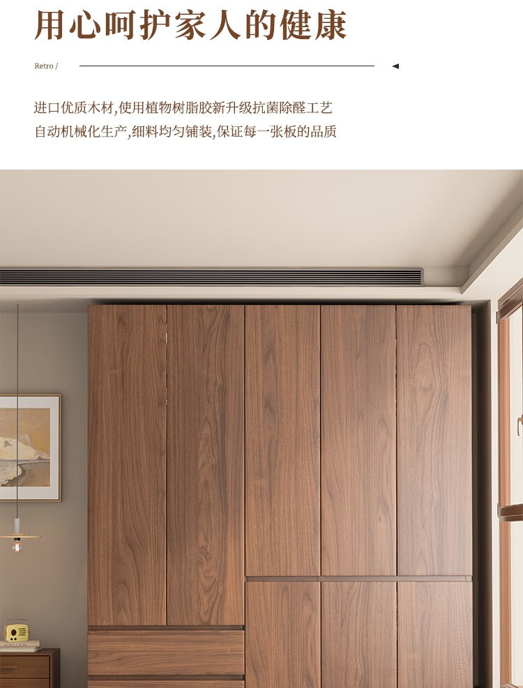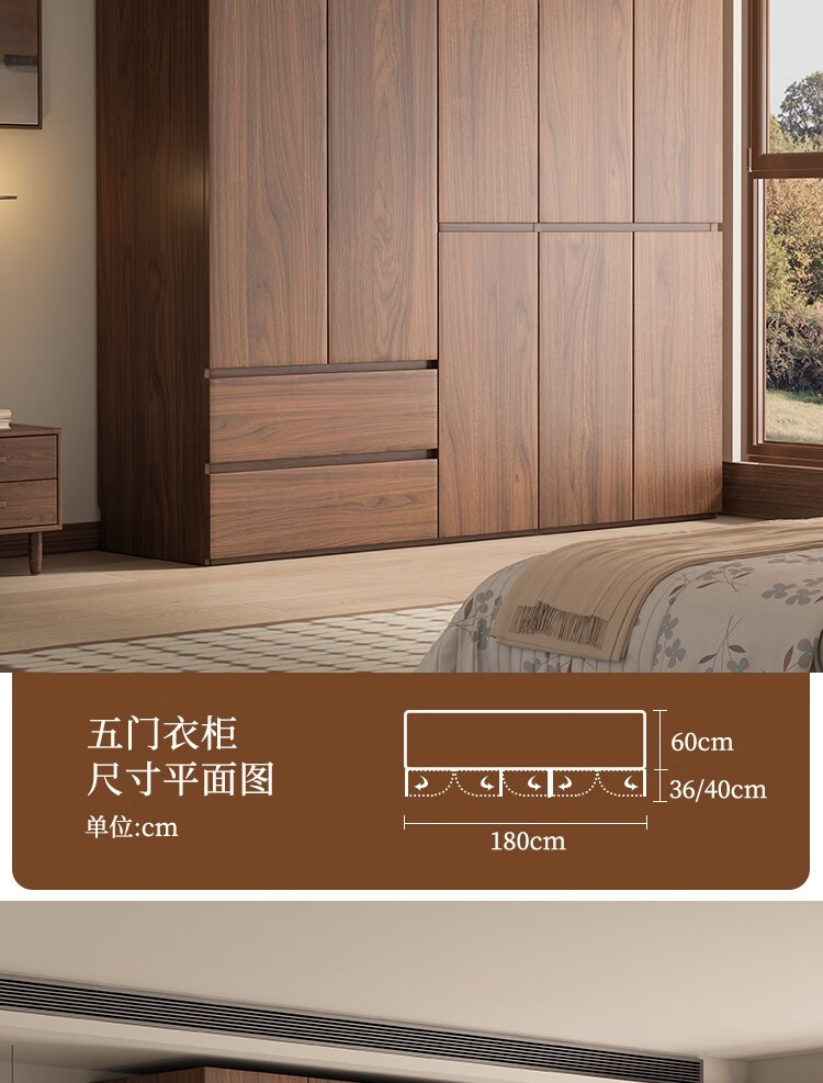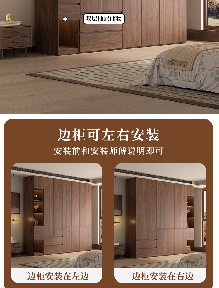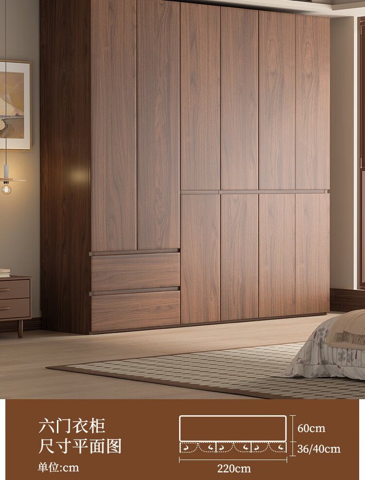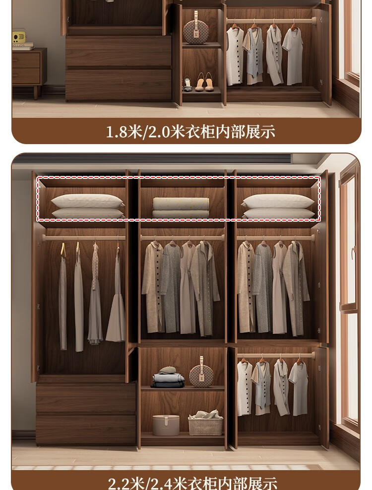 Shuangye solid wood wardrobe manufacturer direct sales walnut color modern simple bedroom home Nordic multi-layer board segment 2025 new 5-door solid wood multi-layer board wardrobe long 1.8*2.0 meters