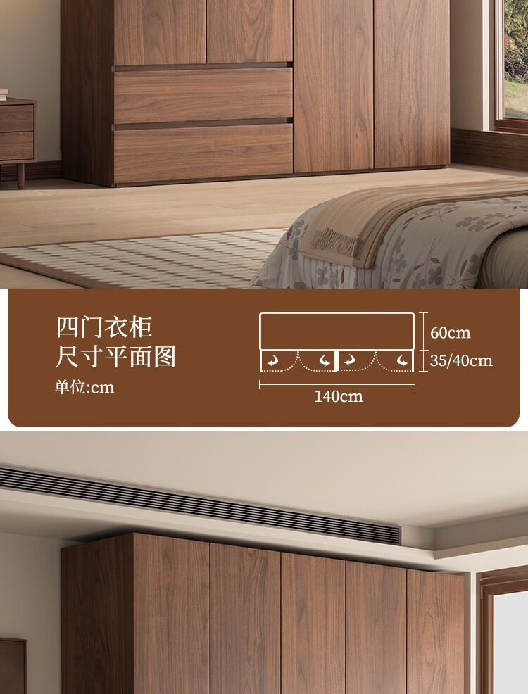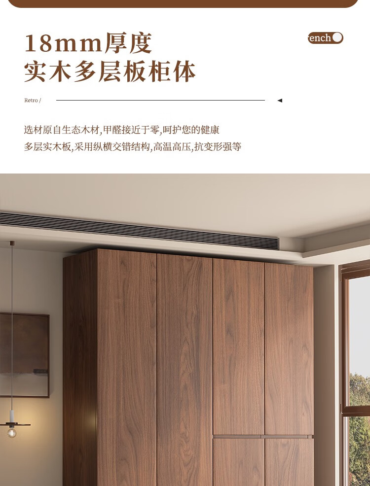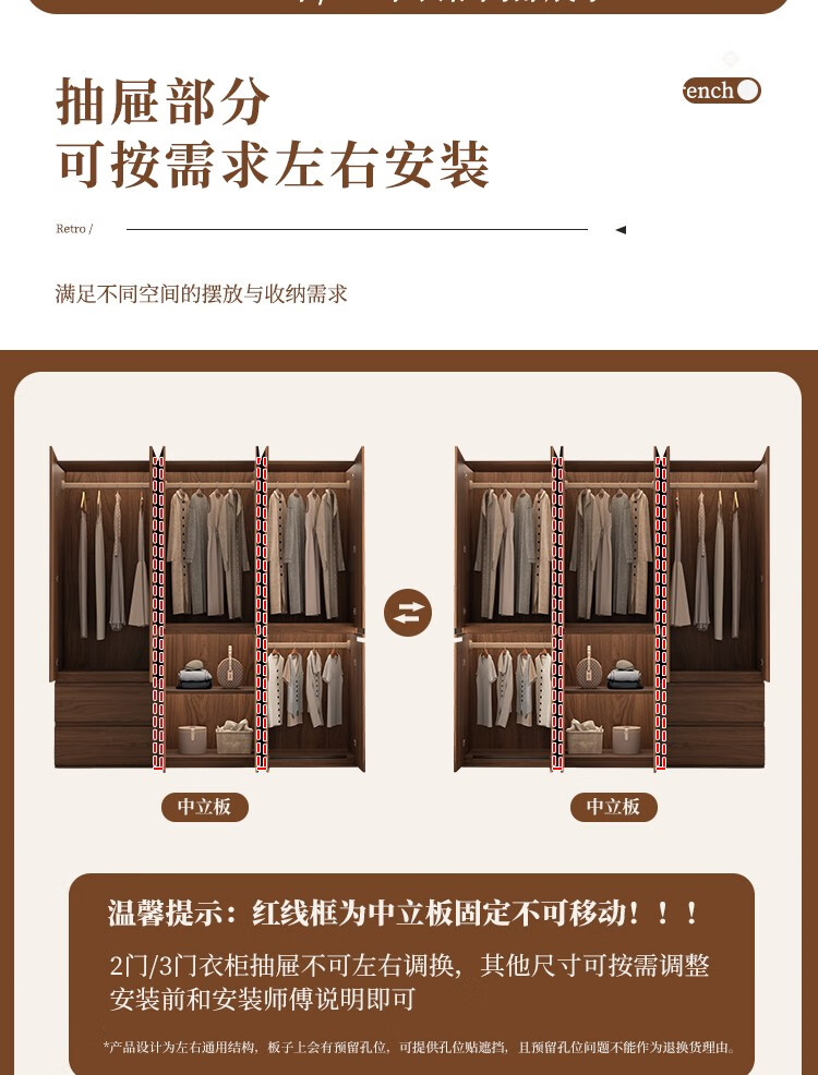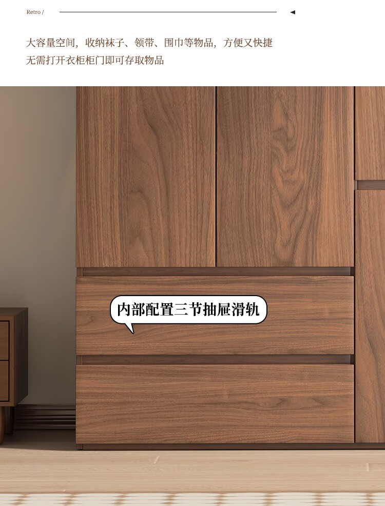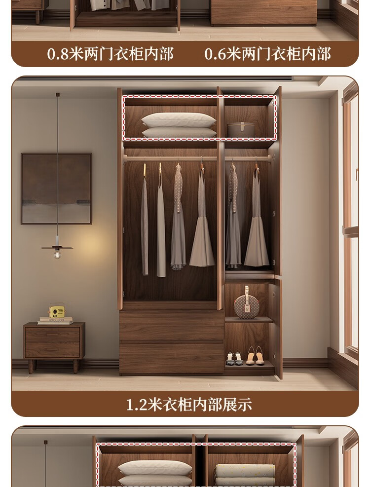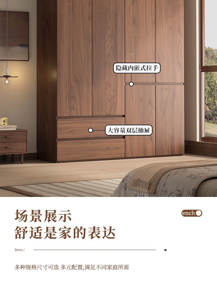 Shuangye solid wood wardrobe manufacturer direct sales walnut color modern simple bedroom home Nordic multi-layer board segment 2025 new 5-door solid wood multi-layer board wardrobe long 1.8*2.0 meters