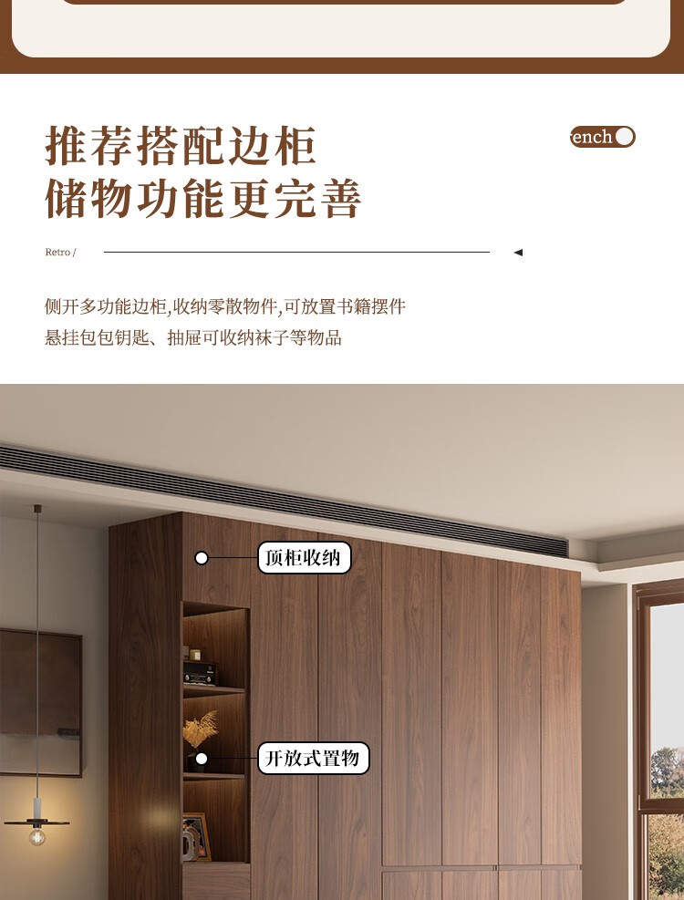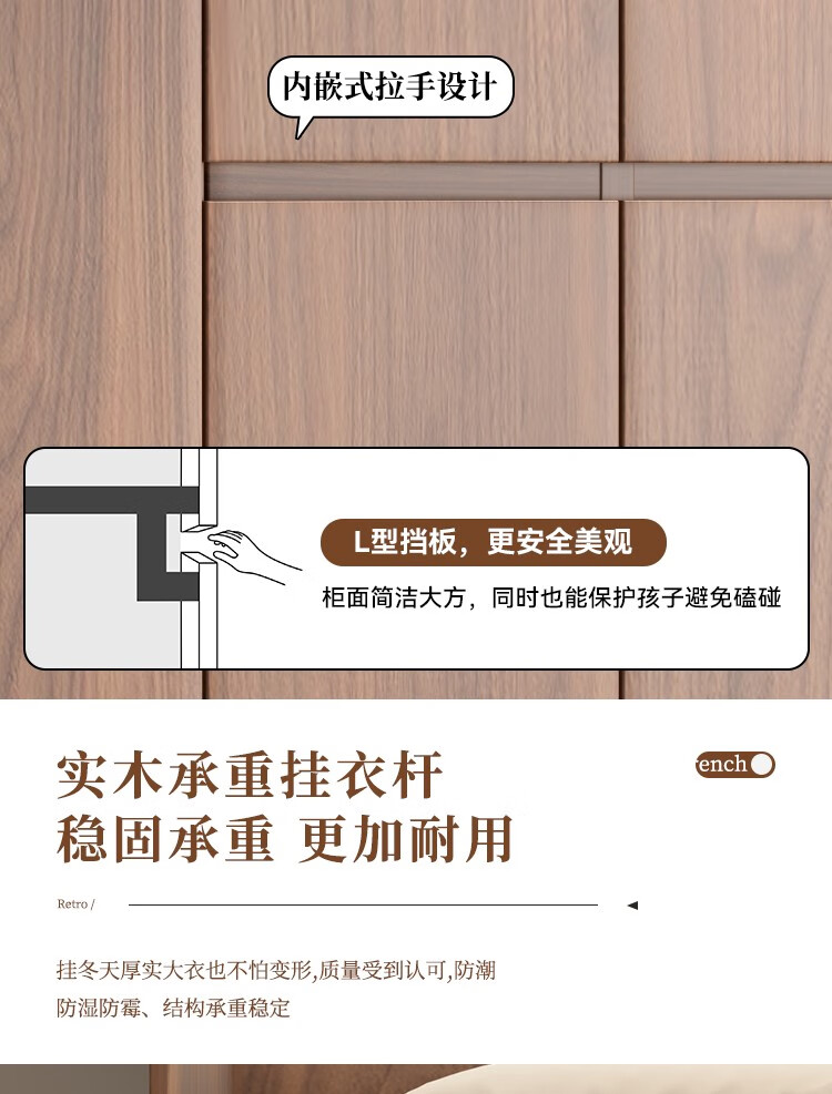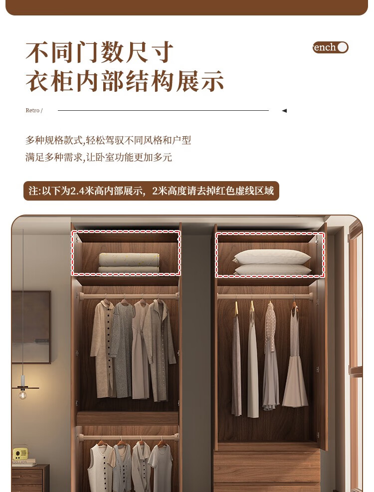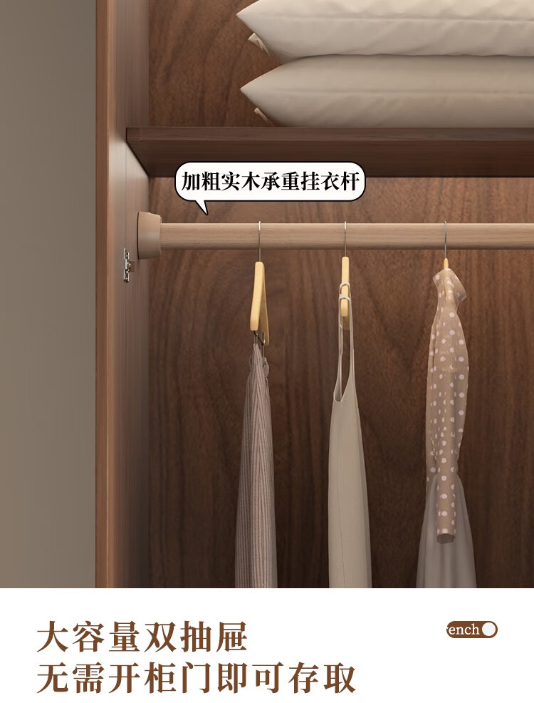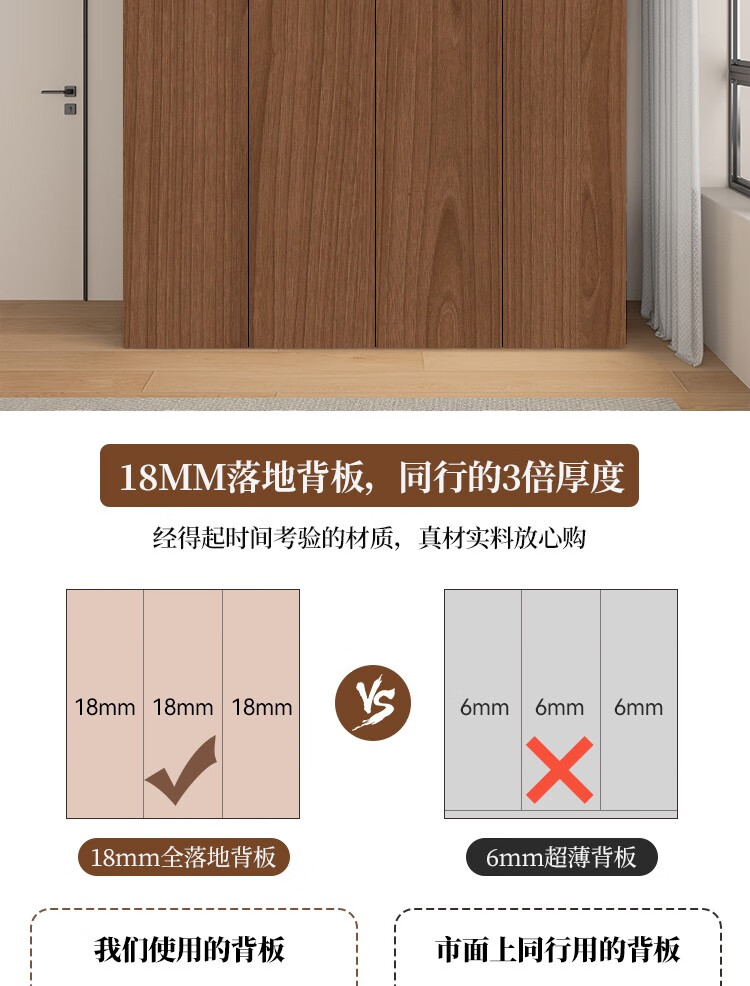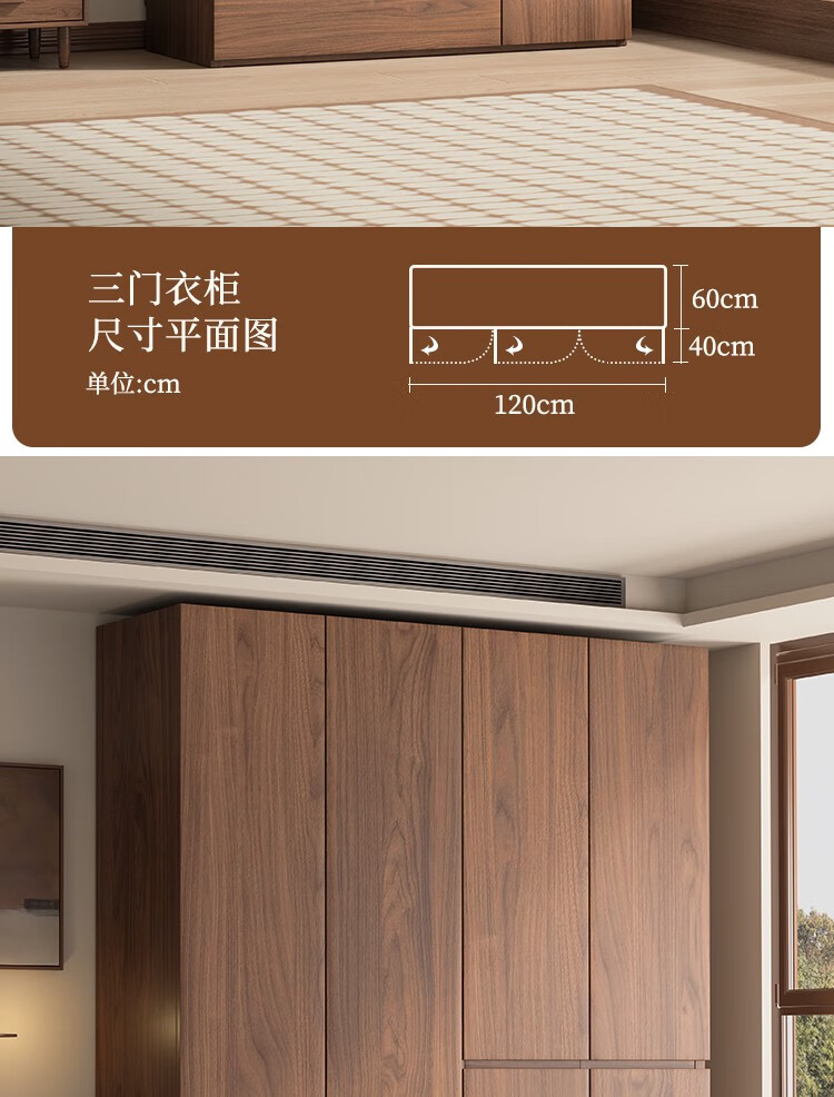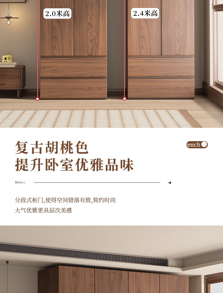 Shuangye solid wood wardrobe manufacturer direct sales walnut color modern simple bedroom home Nordic multi-layer board segment 2025 new 5-door solid wood multi-layer board wardrobe long 1.8*2.0 meters