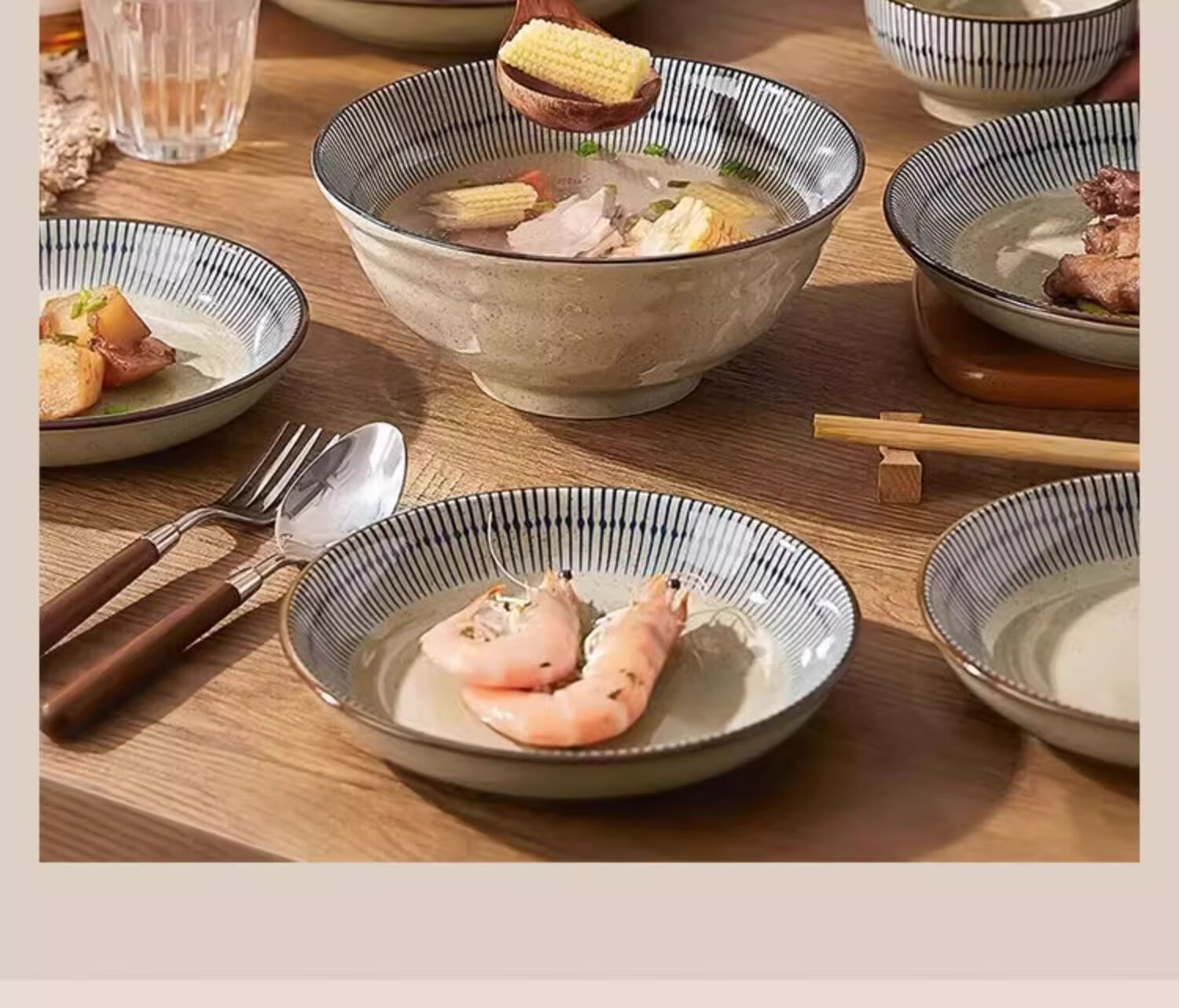 Persson underglaze color ceramic tableware set for home use 2026 new dishes, plates and bowls Japanese style housewarming dishes and chopsticks gift box/JD Logistics 6-person meal 33-piece set