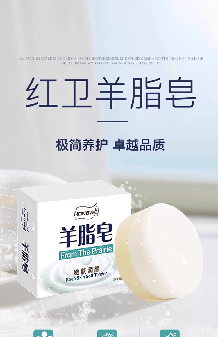 Hongwei mutton fat soap for face and hand washing, old brand domestic bath and shower cleaning and moisturizing soap 120g*3 pieces