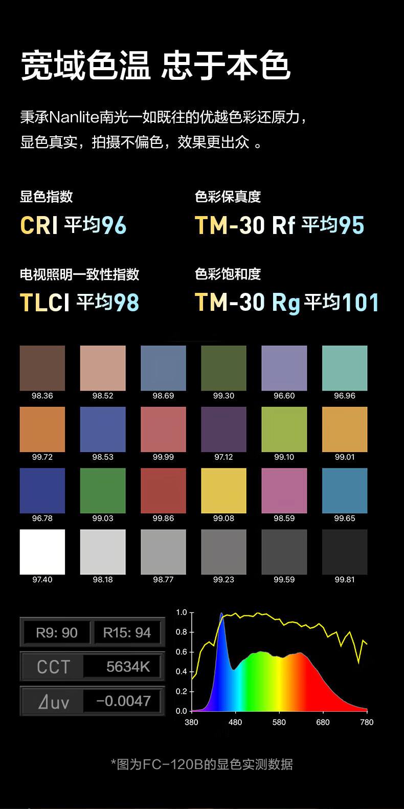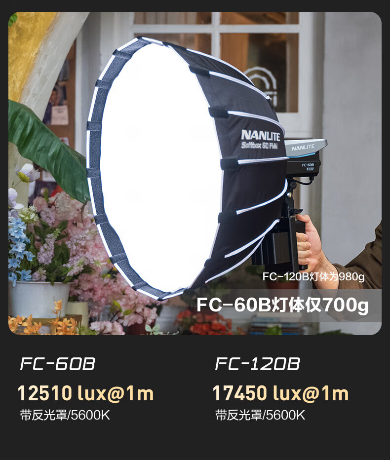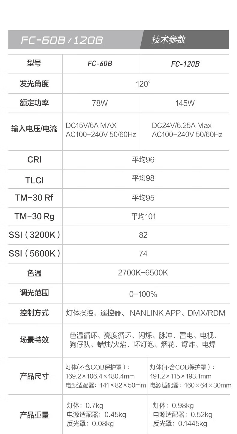 Nanguang FC-60B/120B Dual Color Temperature Photography Light Mobile Portable Outdoor Shooting LED Fill Light FC-120B Dual Color Temperature (2700-6500K)