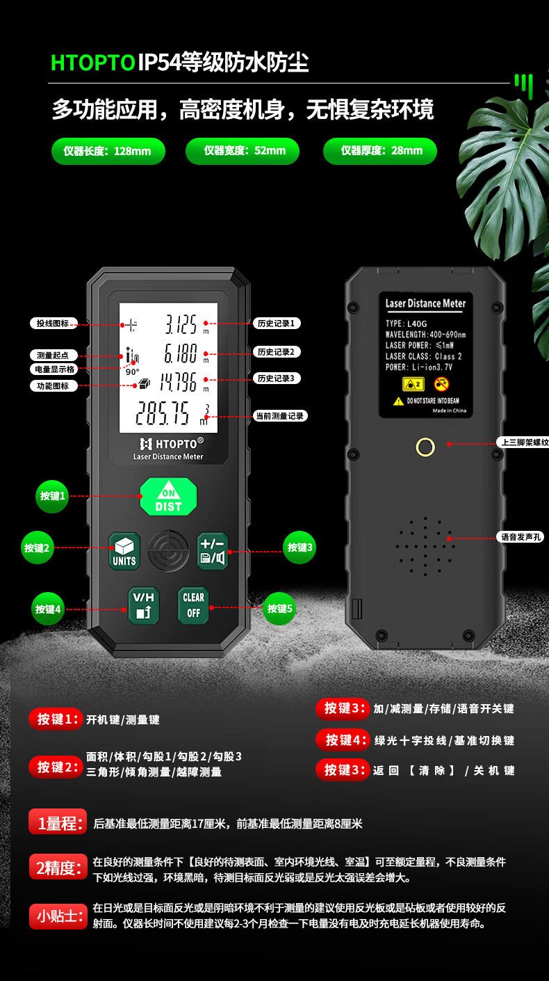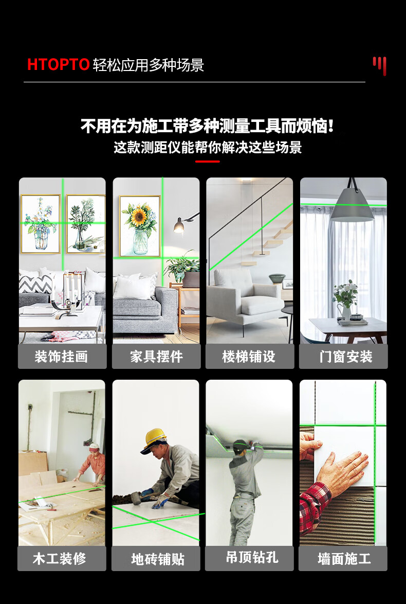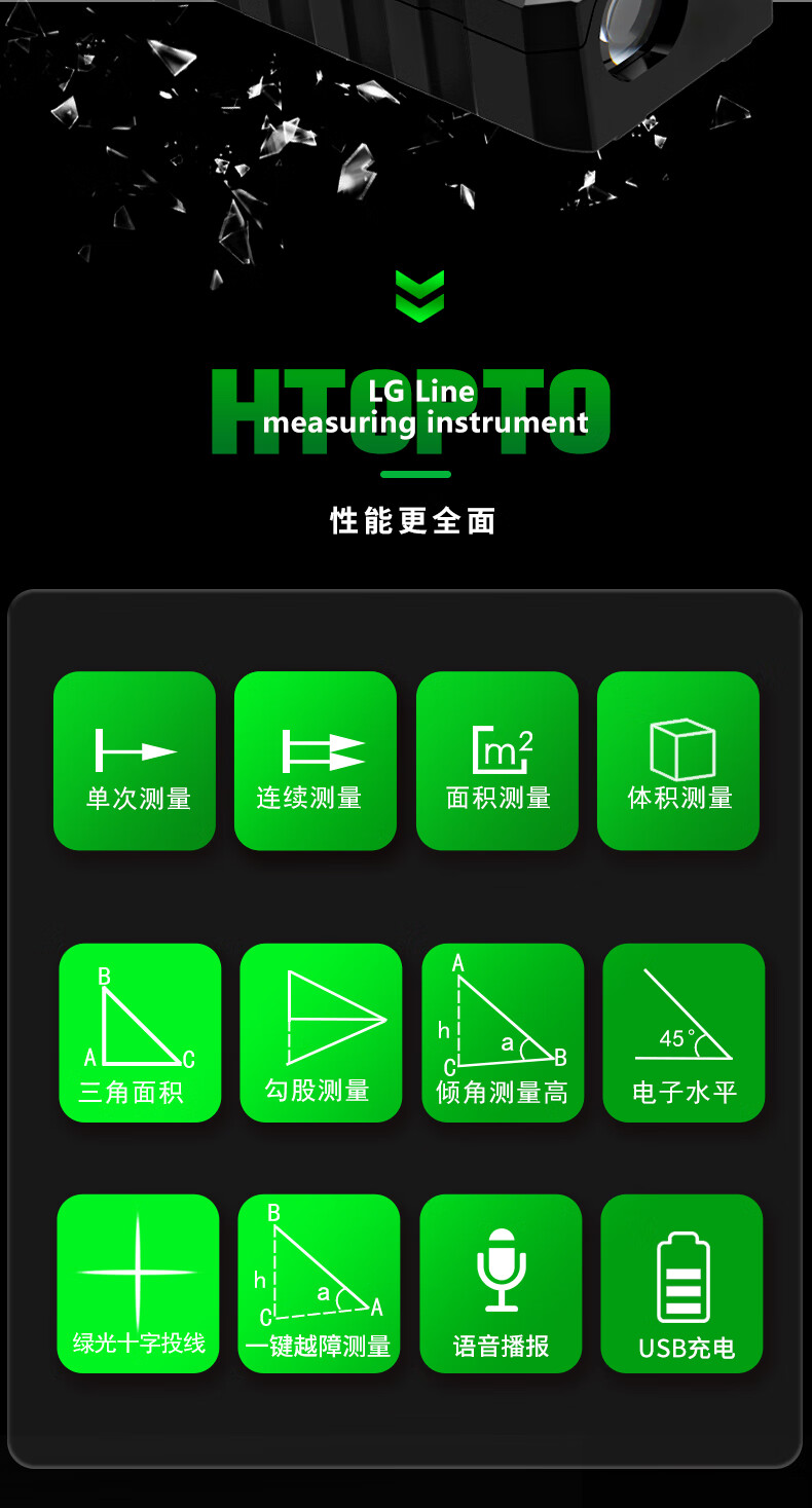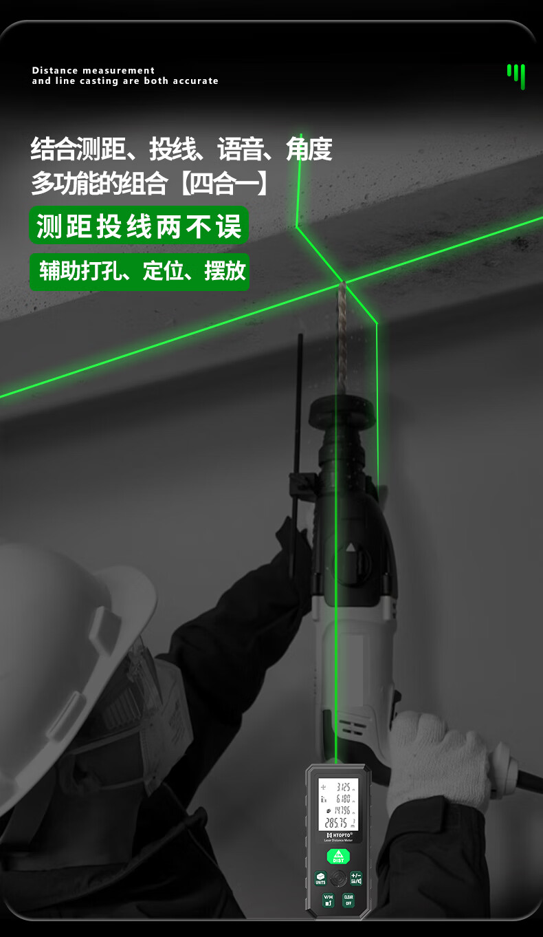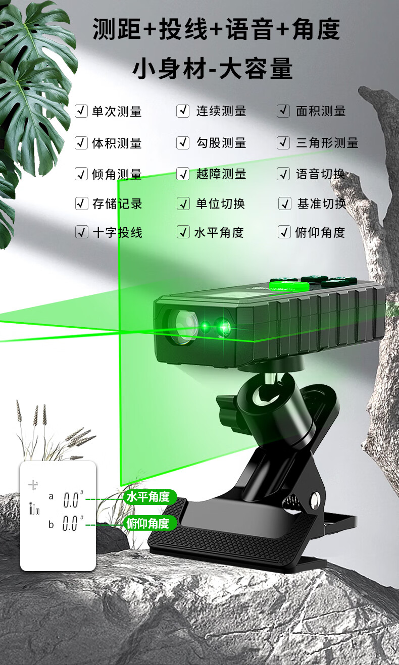 Haotu three-in-one laser rangefinder outdoor green light high-precision electronic ruler infrared measuring instrument cross line level indoor and outdoor universal 100 meters green light ranging + green light cross upgraded version